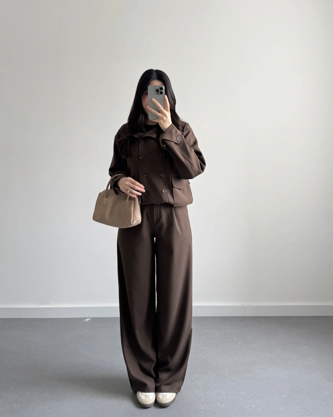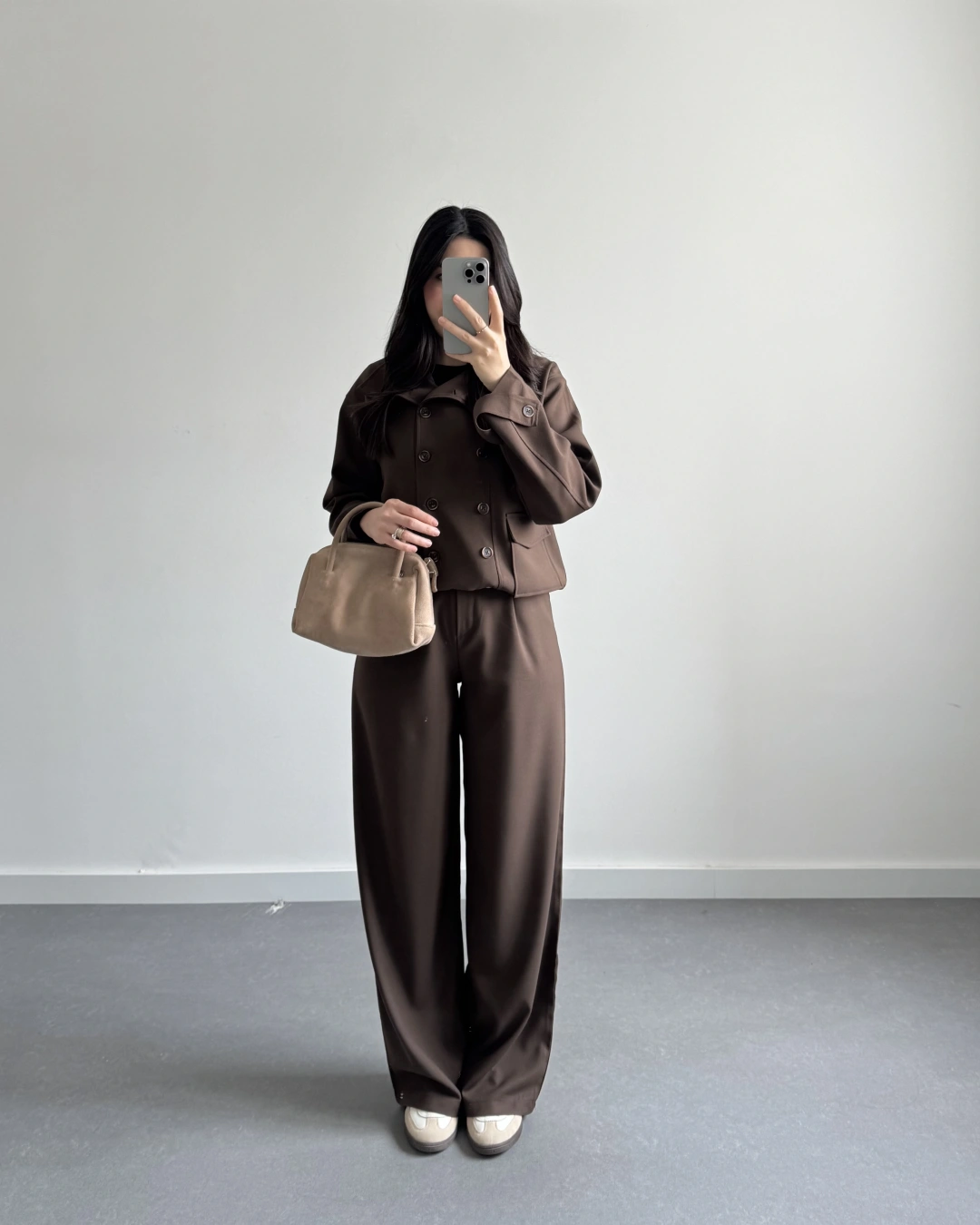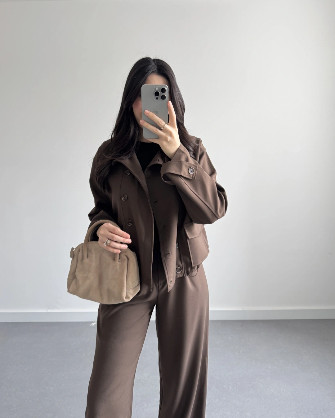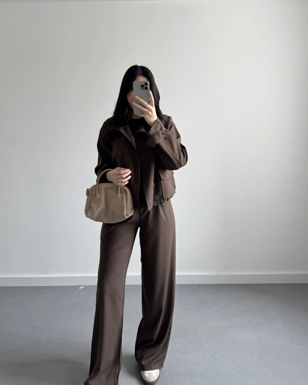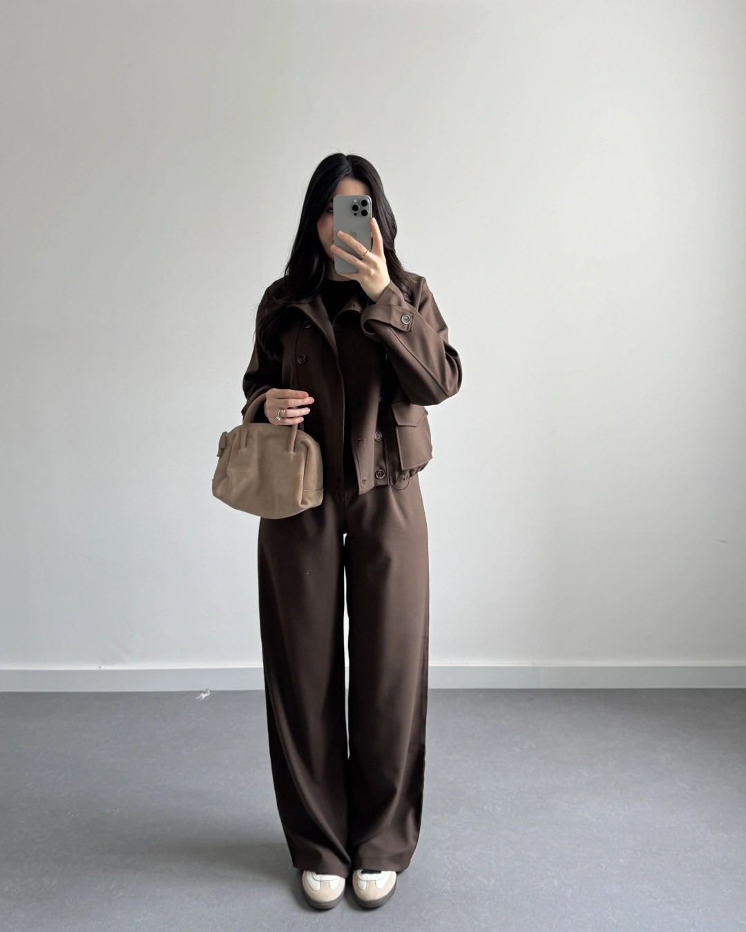 KAHVE PARAŞÜT KUMAŞ DETAYLI MODAL TAKIM