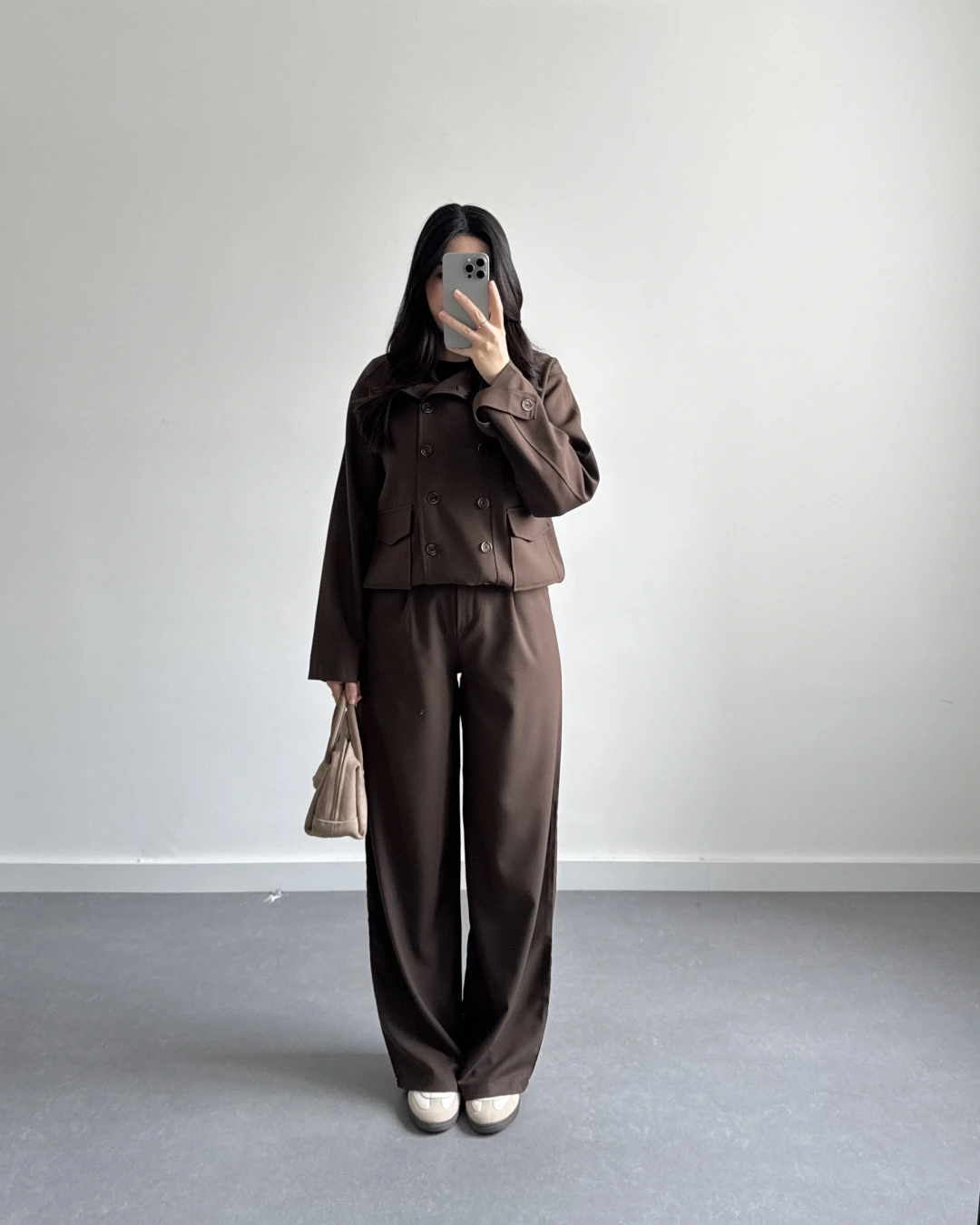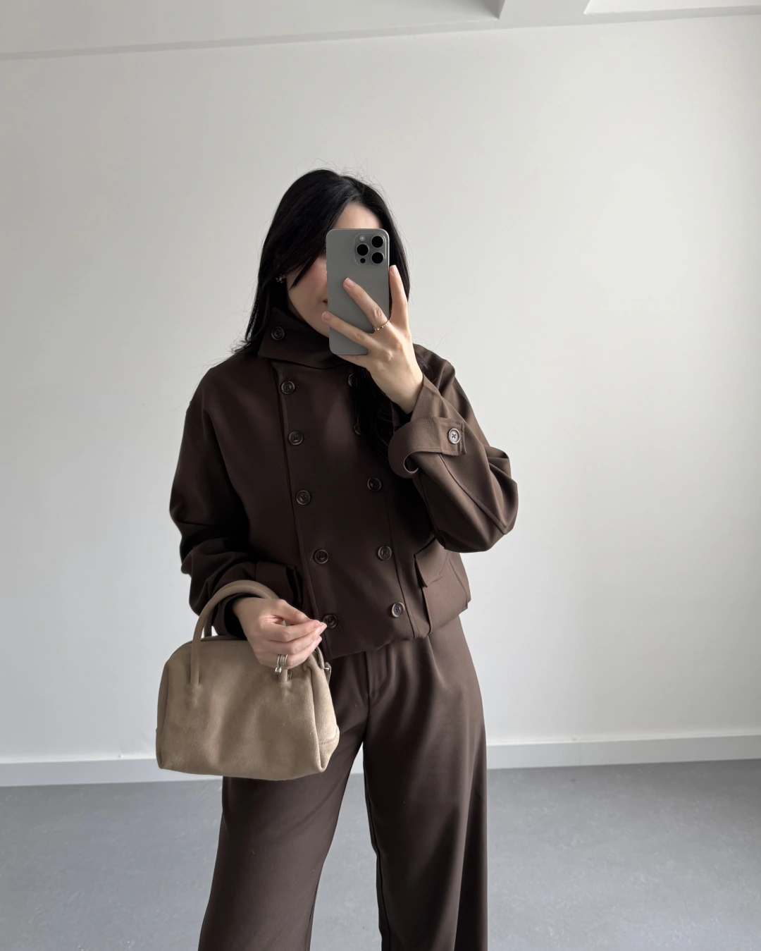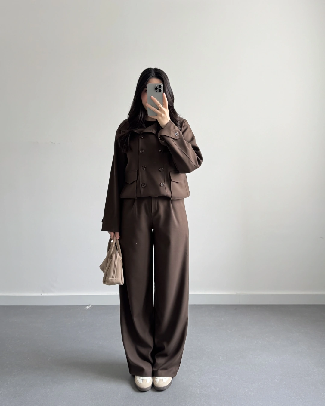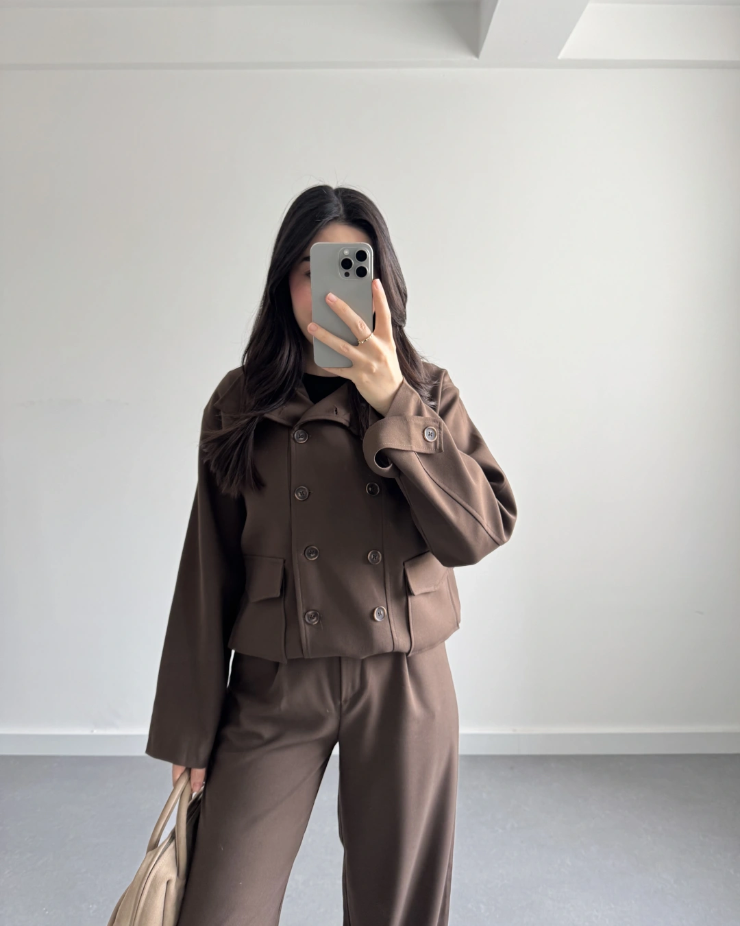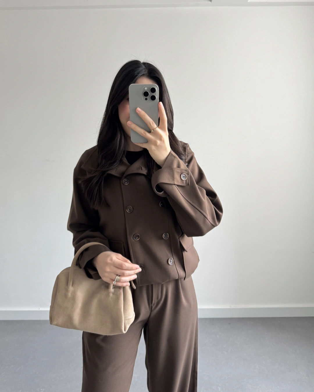KAHVE PARAŞÜT KUMAŞ DETAYLI MODAL TAKIM
