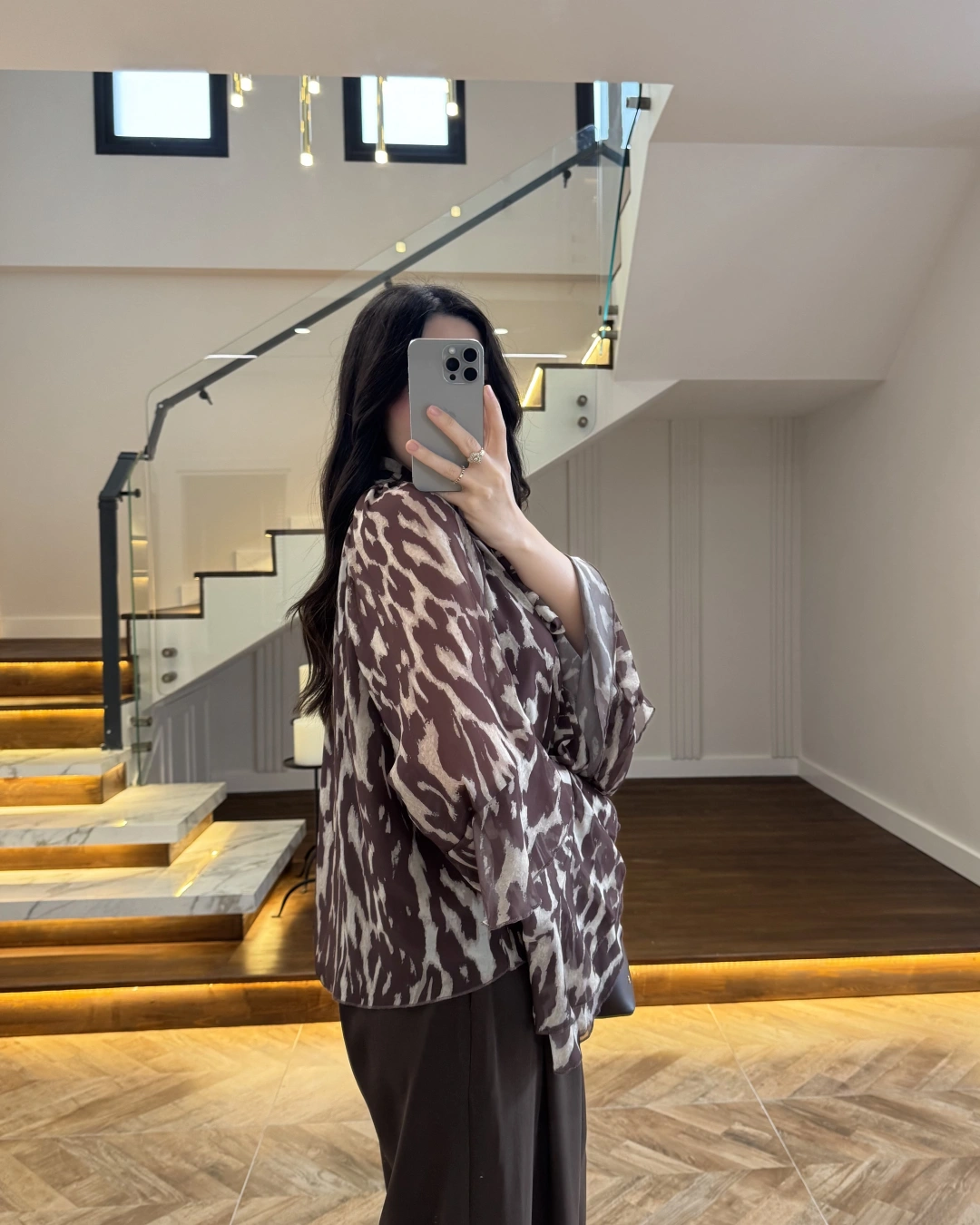 KAHVE TENSEL YARIM KOL GÖMLEK PANTOLON TAKIM -267309