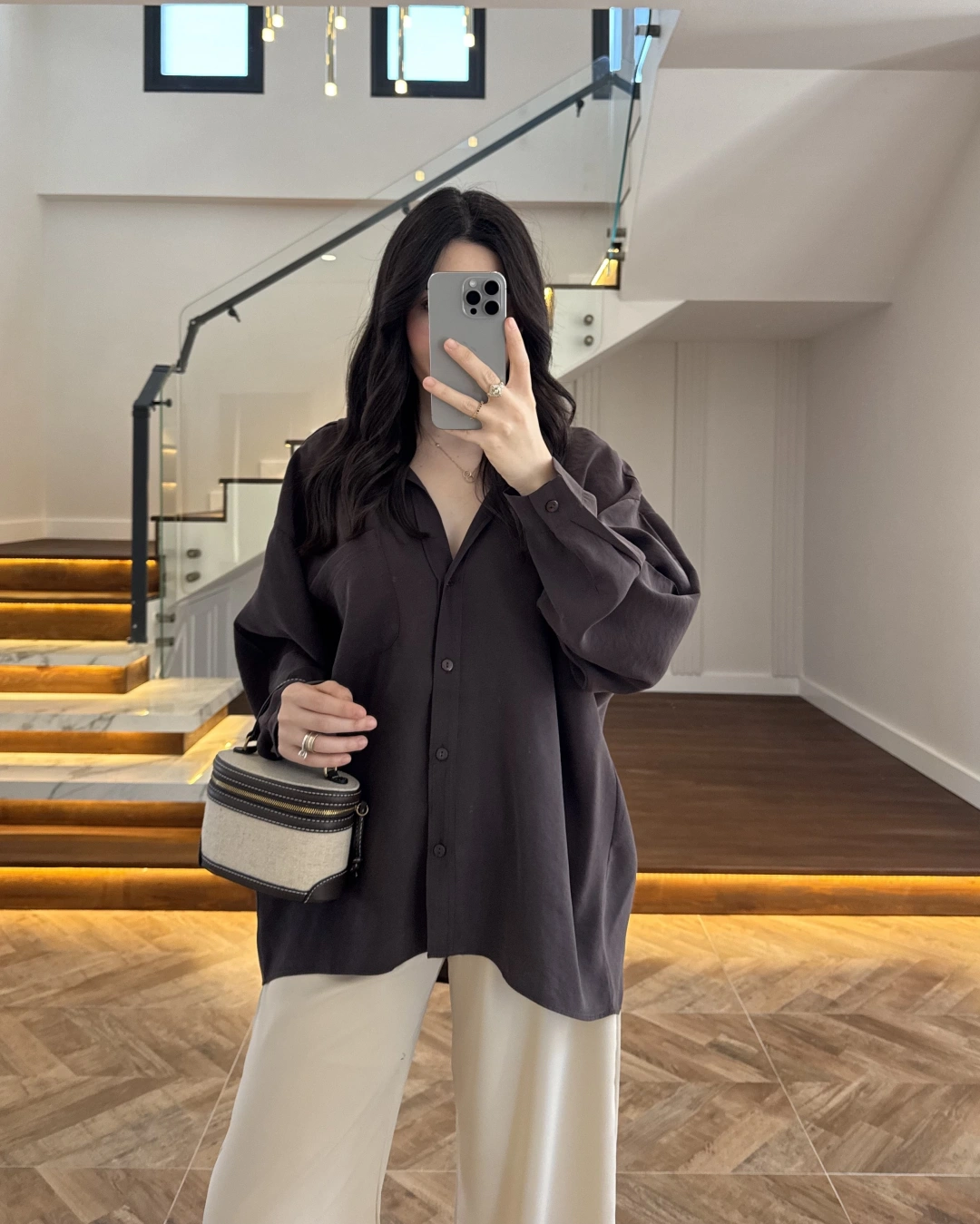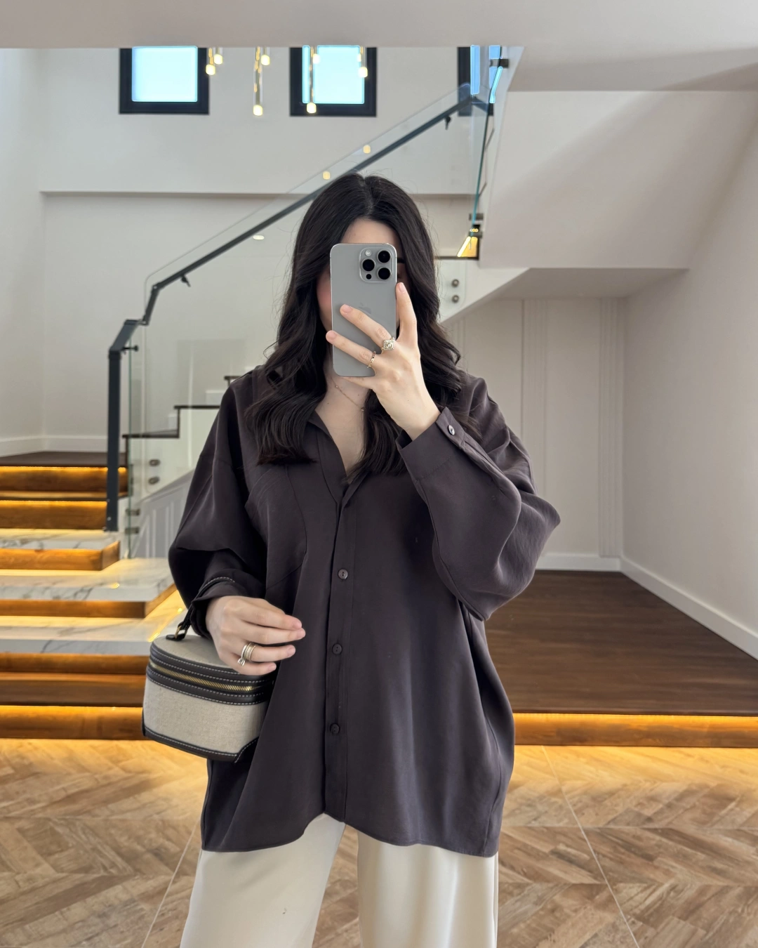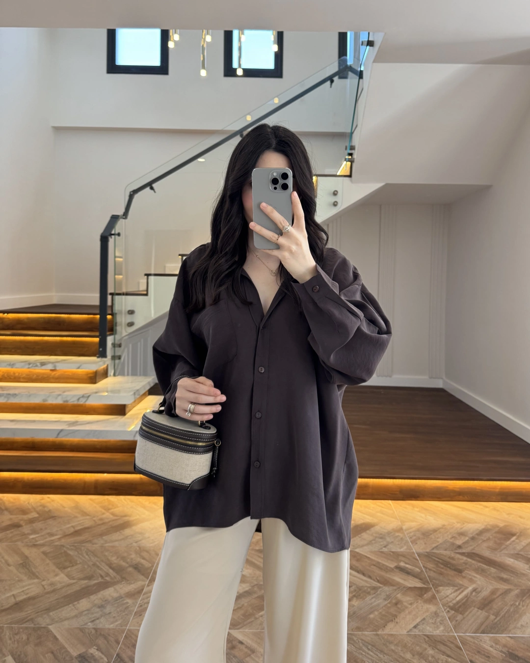 KAHVE DÜŞÜK OMUZLU MODAL GÖMLEK -5050