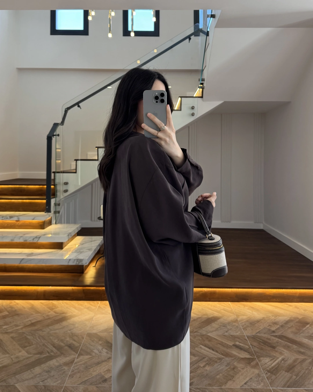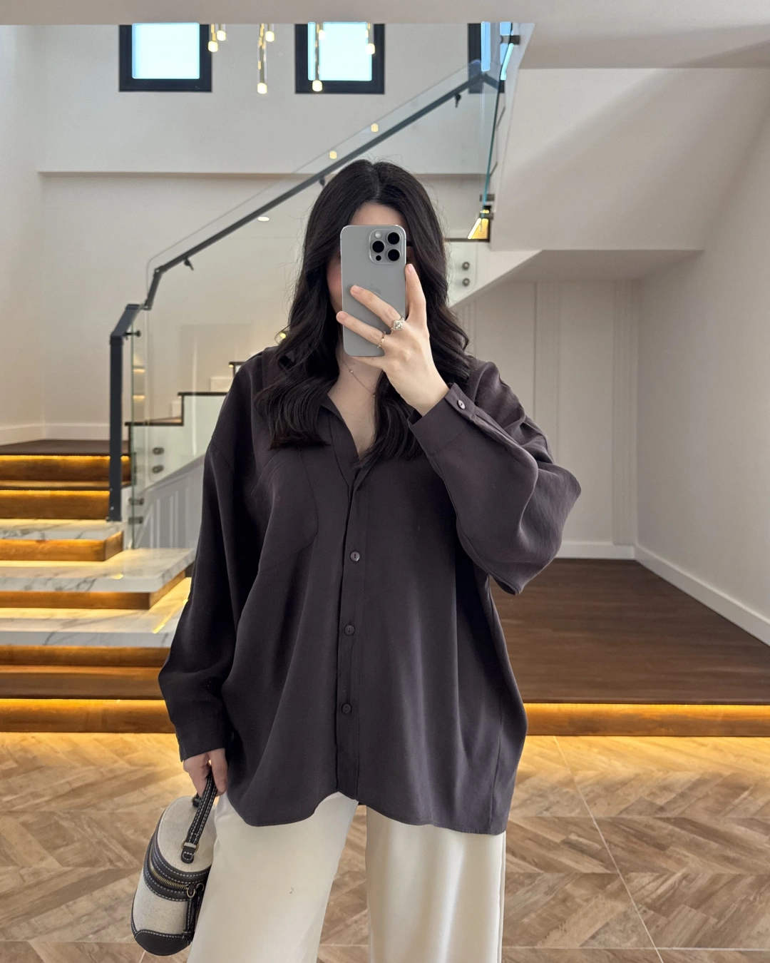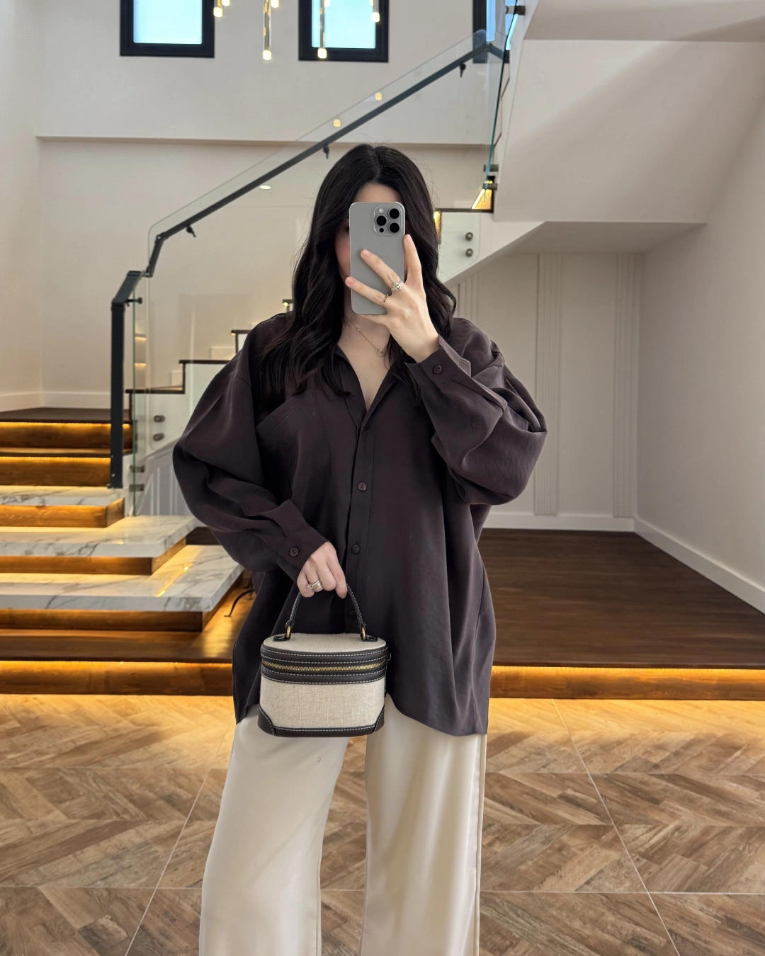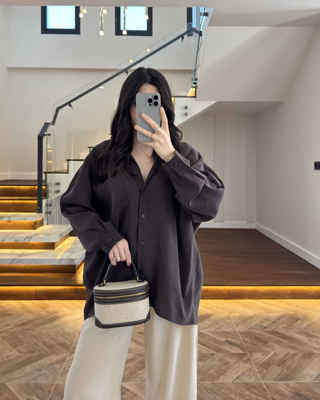 KAHVE DÜŞÜK OMUZLU MODAL GÖMLEK -5050