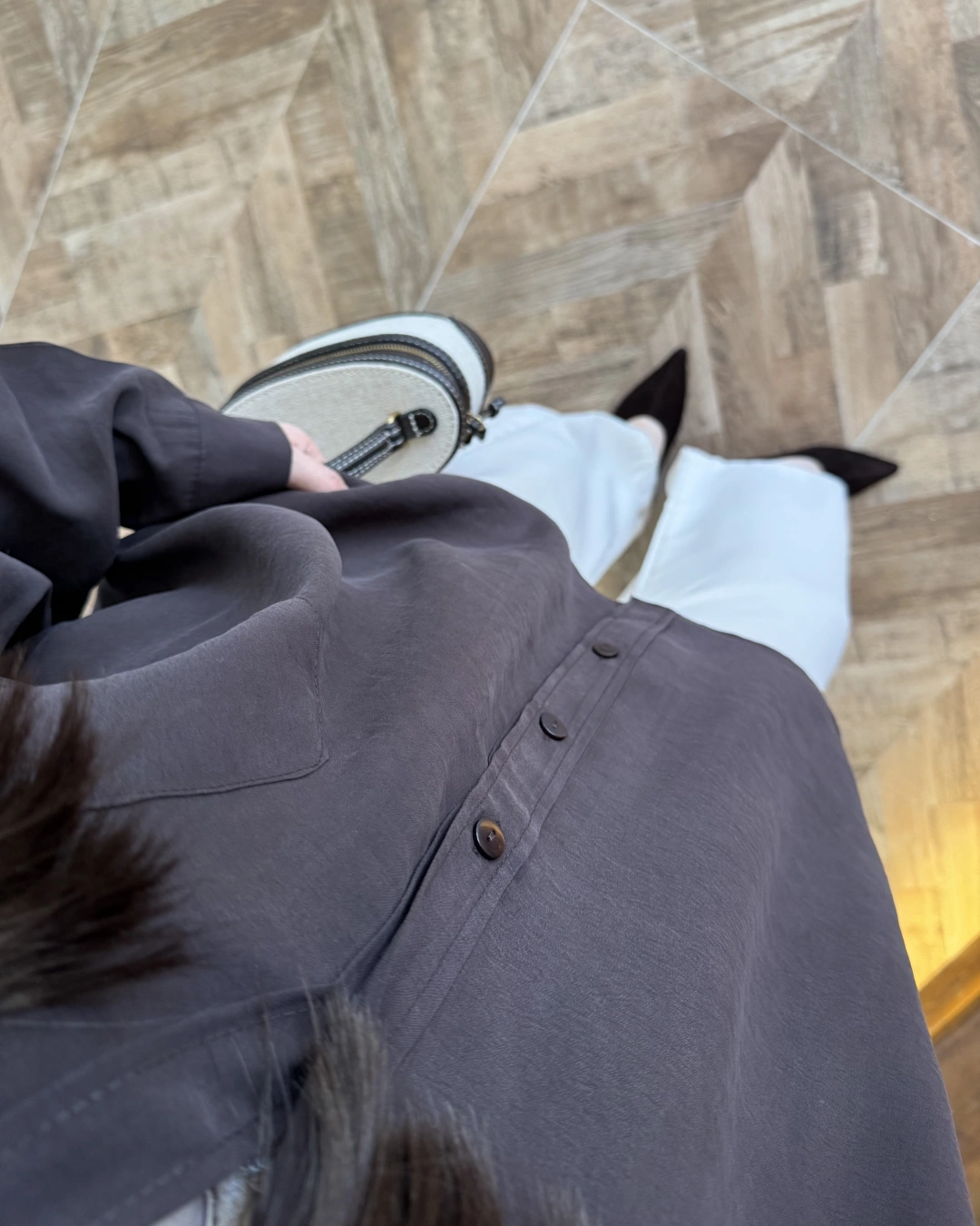 KAHVE PİLE DETAY V YAK GÖMLEK-2222