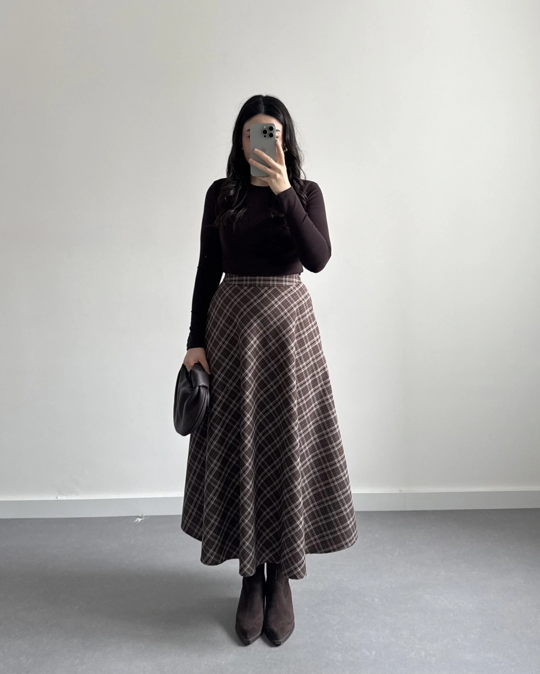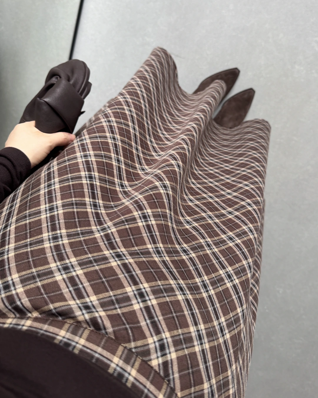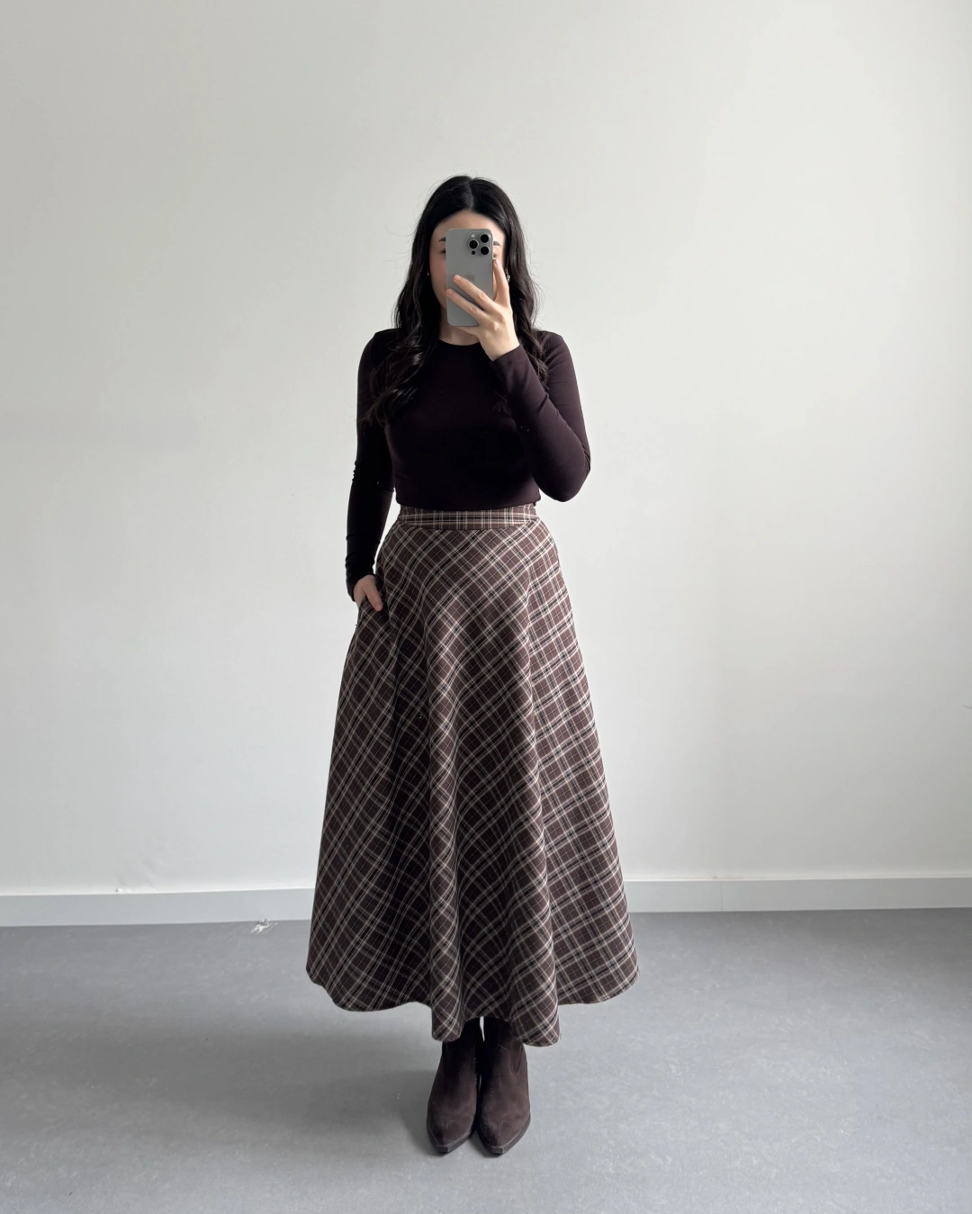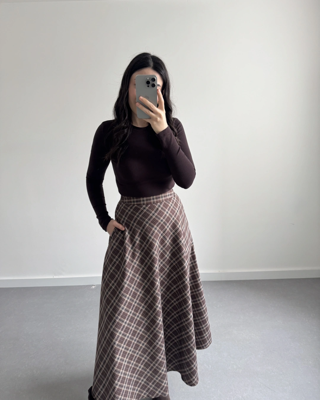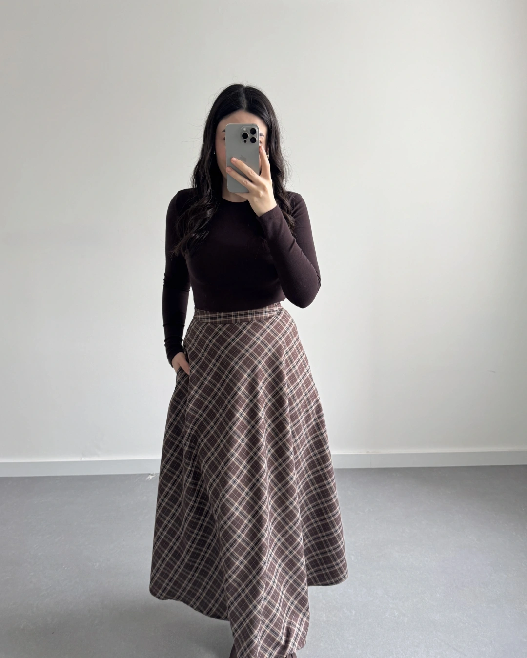 GRİ- KAHVE EKOSE CEPLİ ETEK