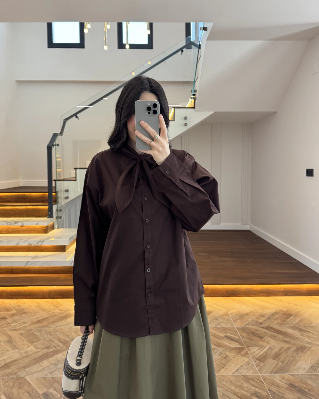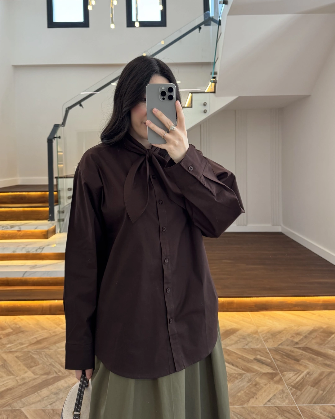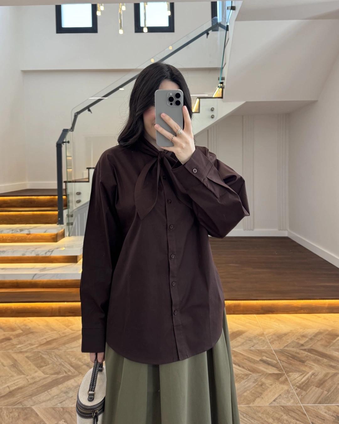 KAHVE FULAR YAKALI GÖMLEK -5407