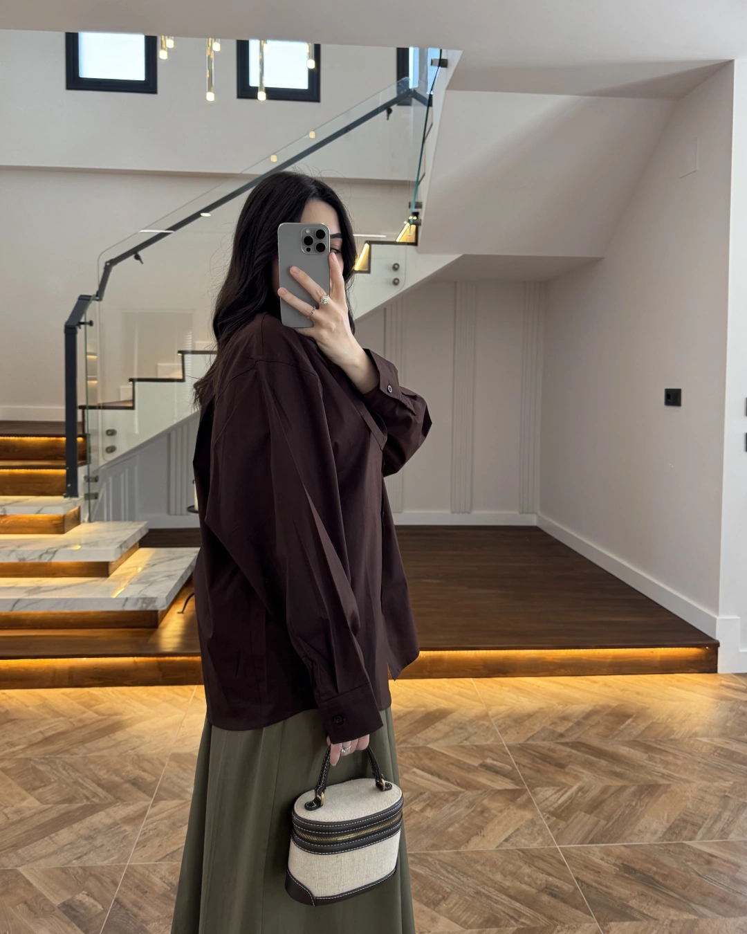 KAHVE PİLE DETAY V YAK GÖMLEK-2222