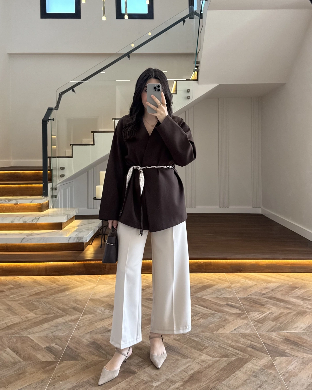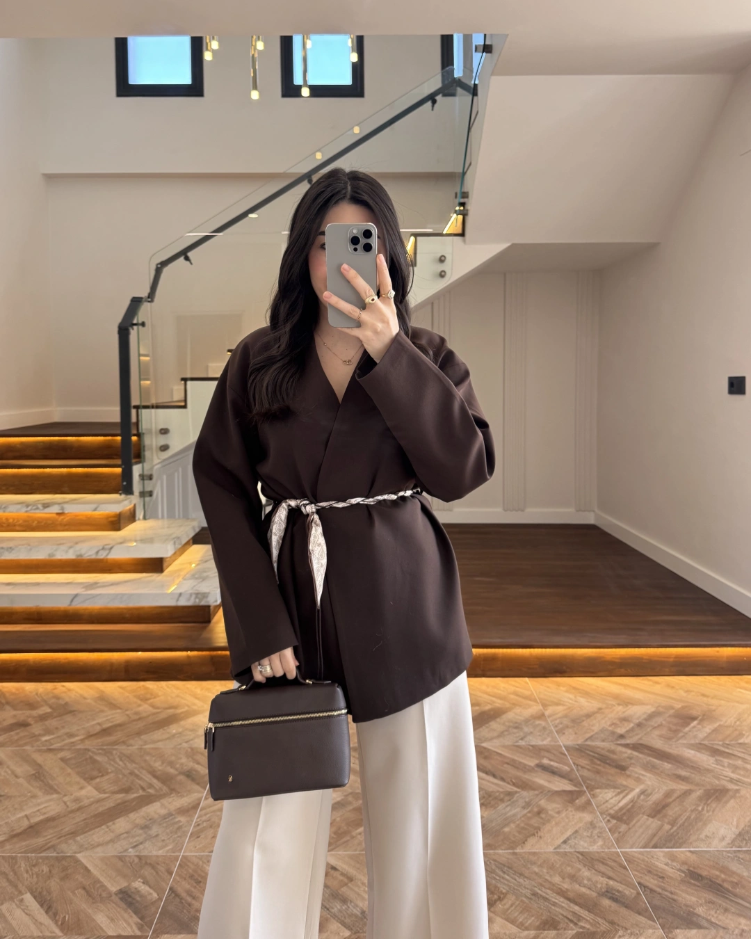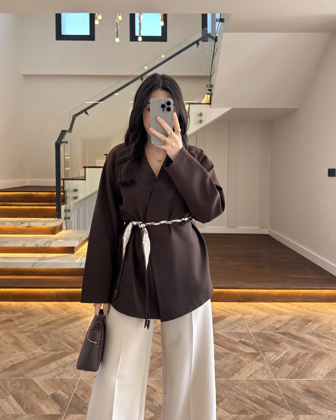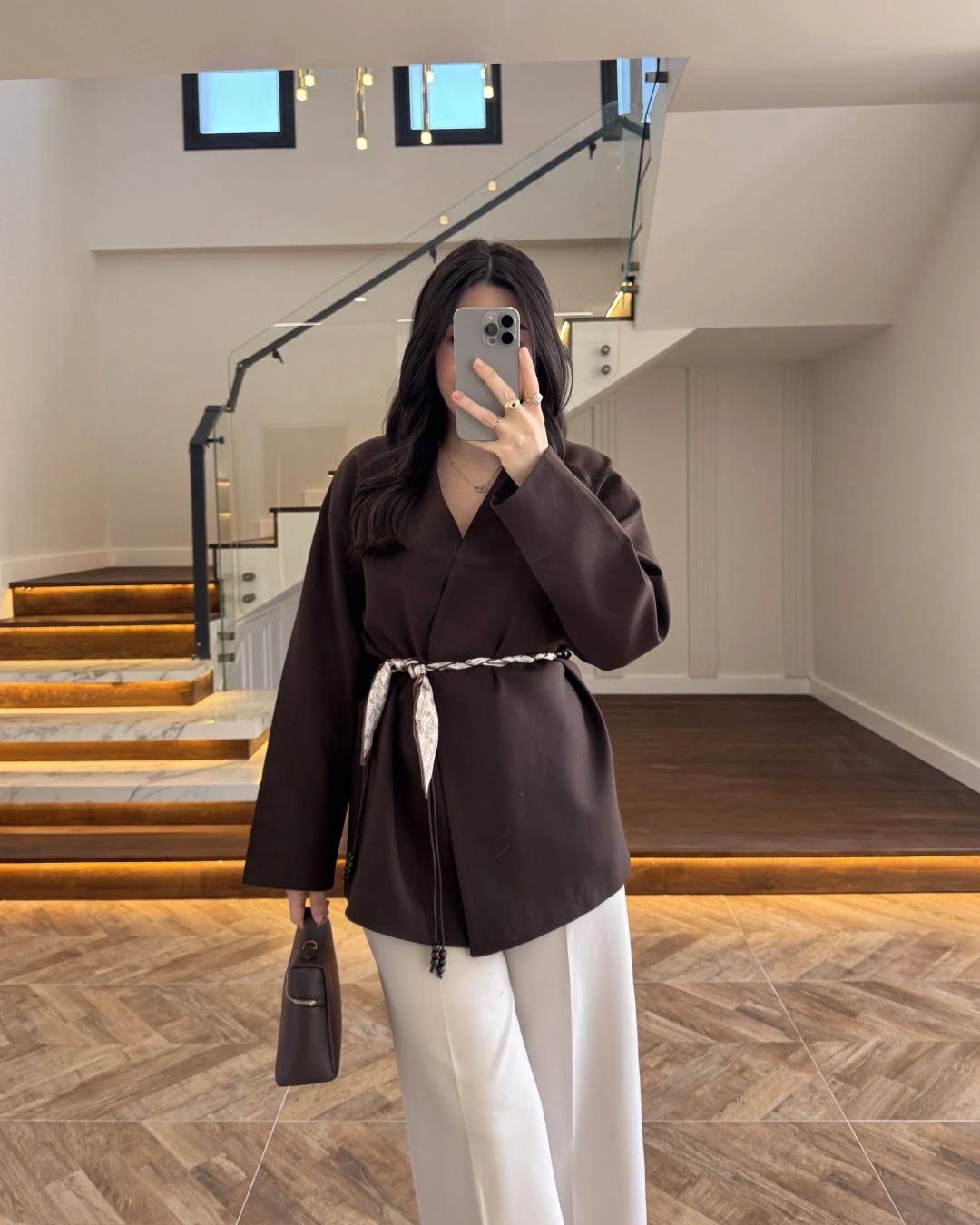 KAHVE KEMERLİ CEKET -7673