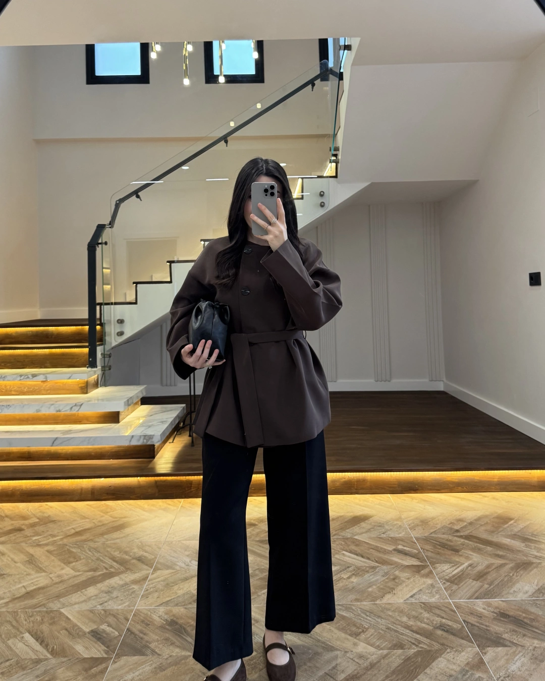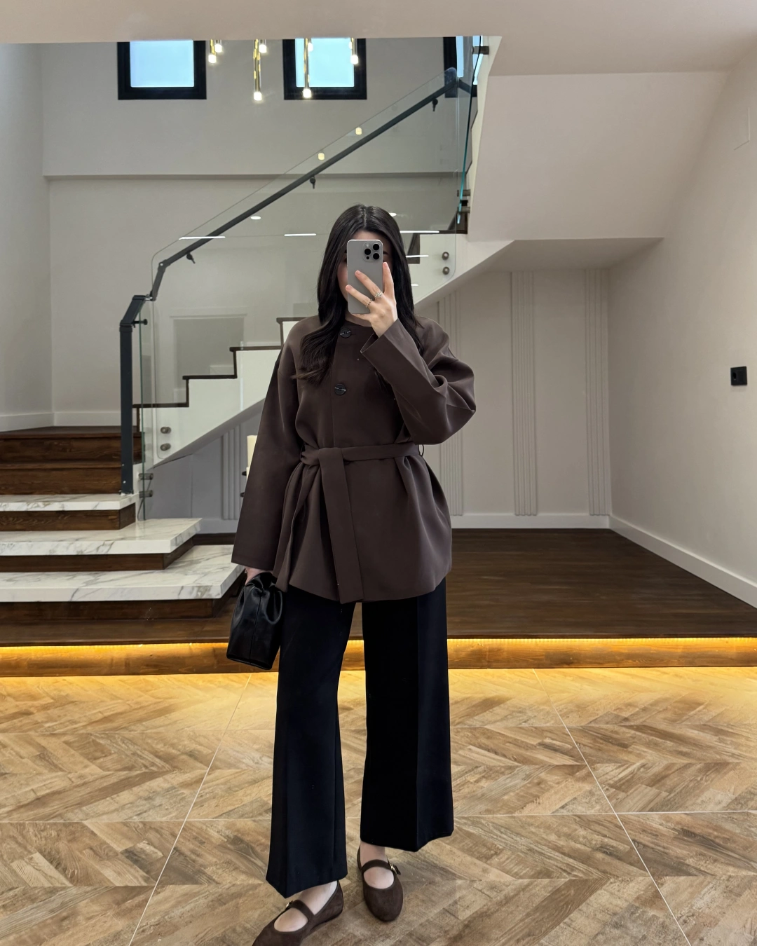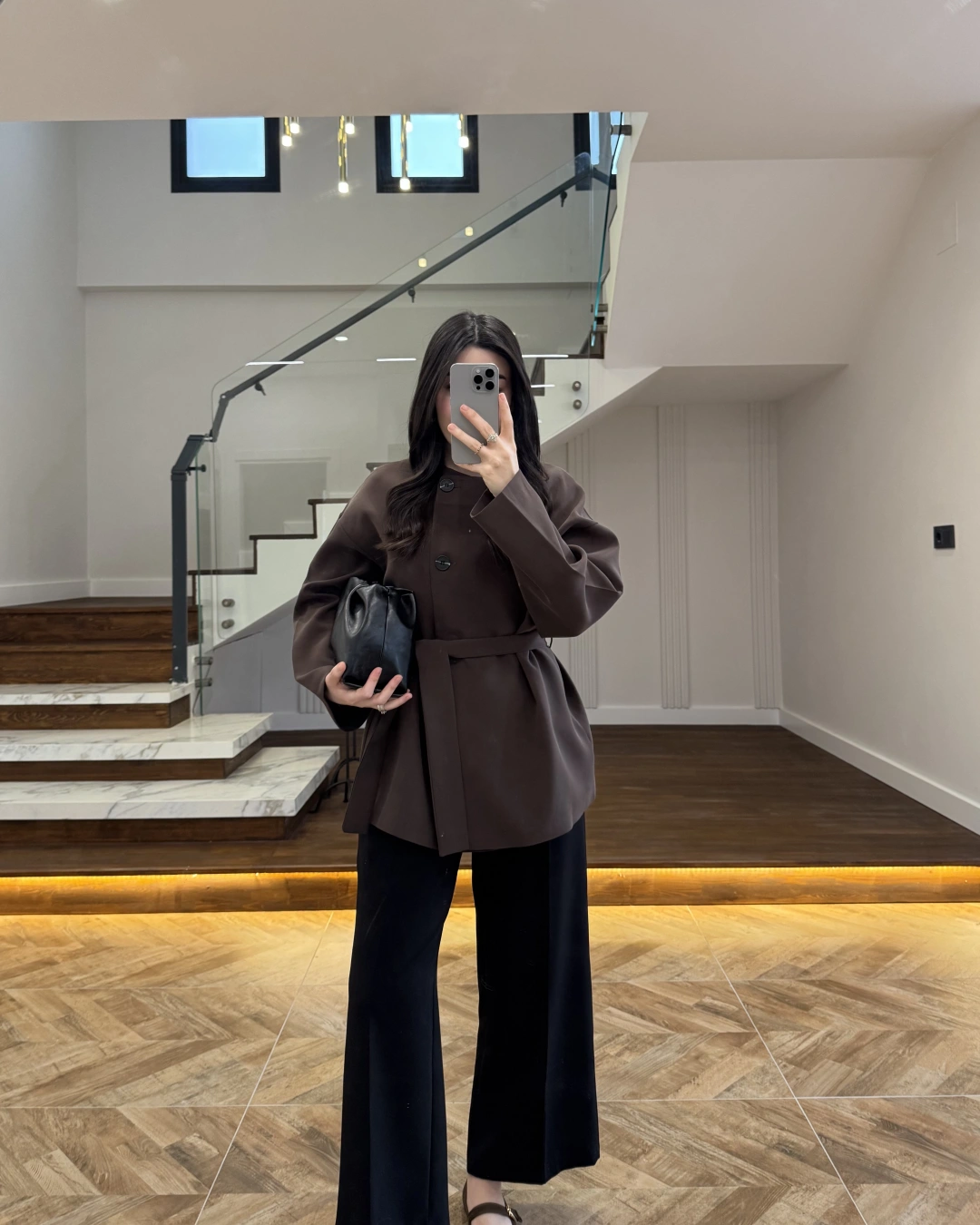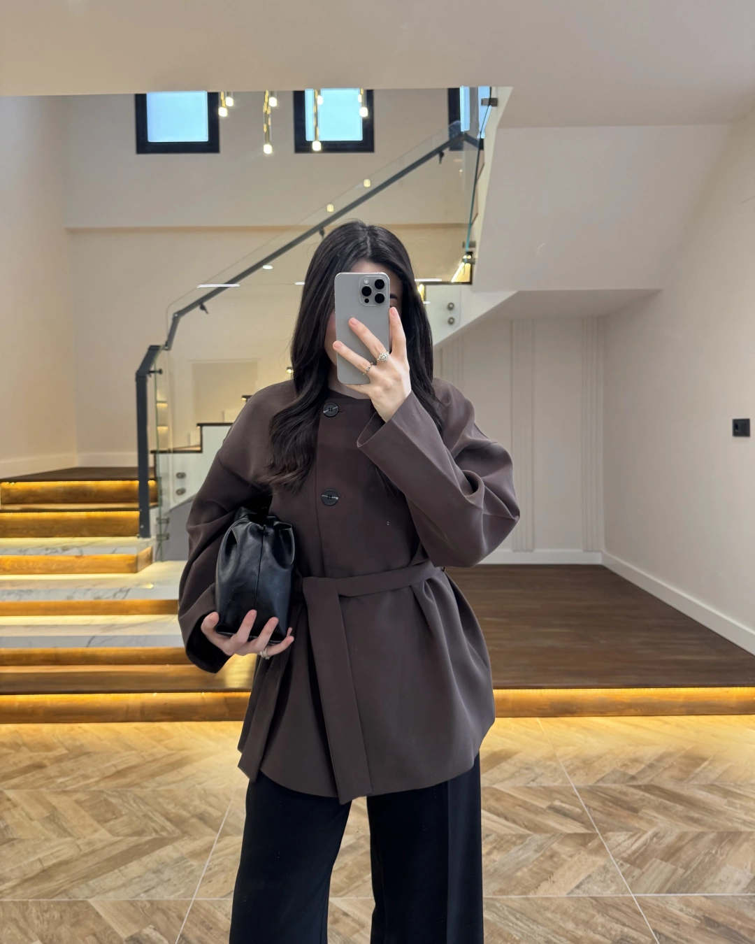 KAHVE KUŞAK DETAYLI CEKET-7672