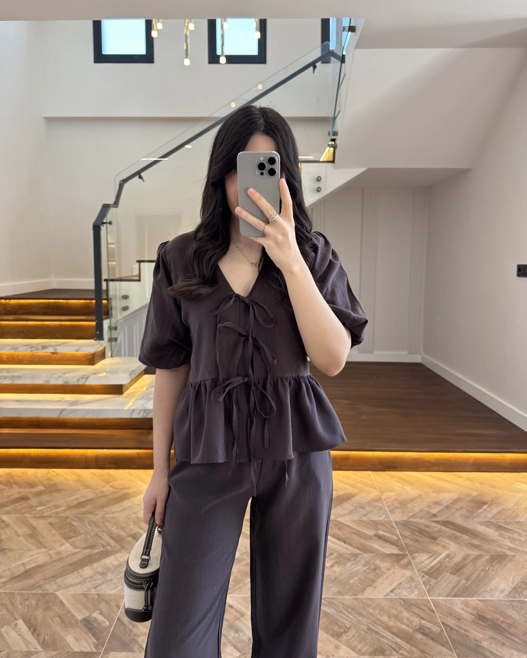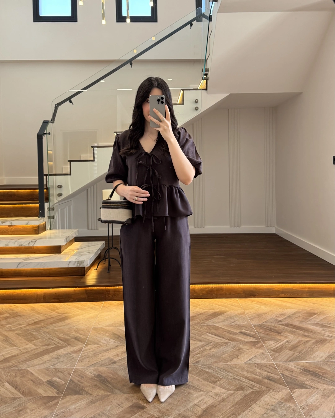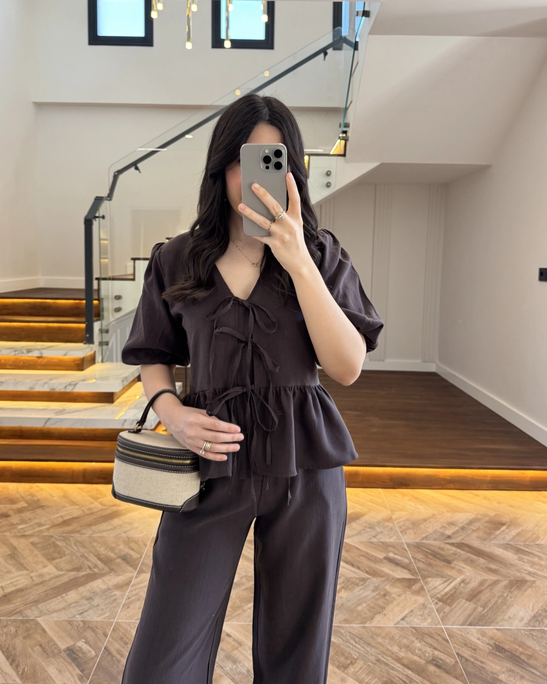 KAHVE PİLE DETAY V YAK GÖMLEK-2222