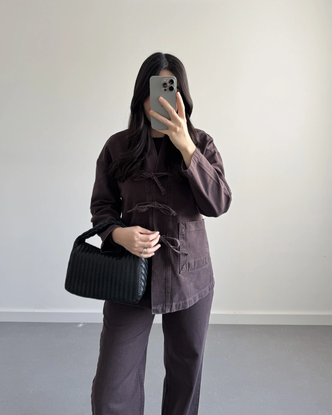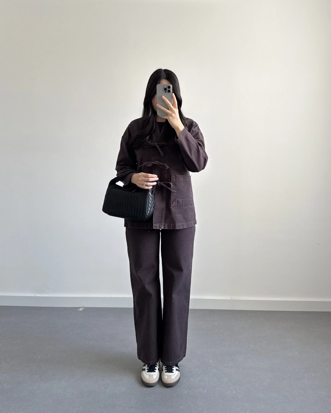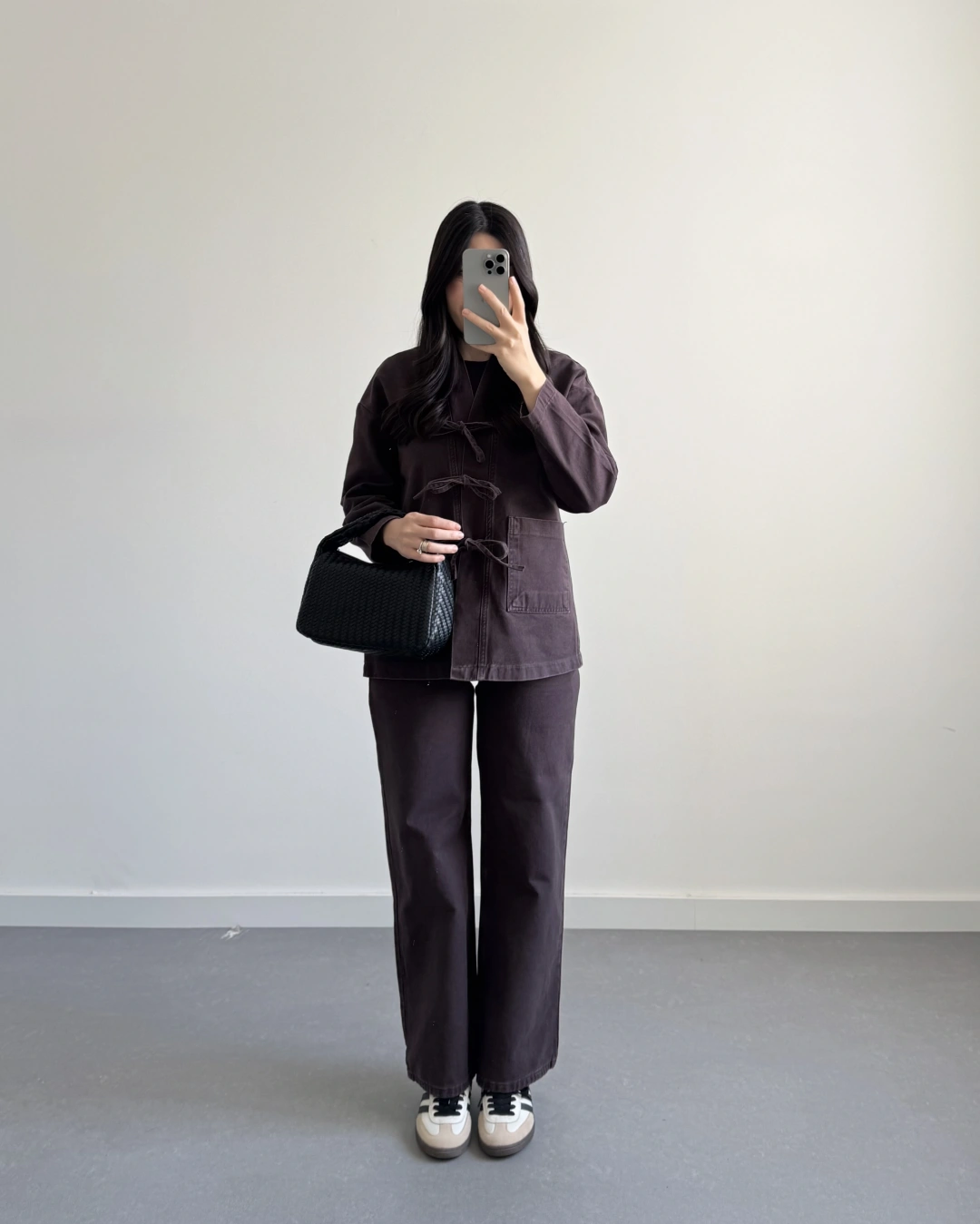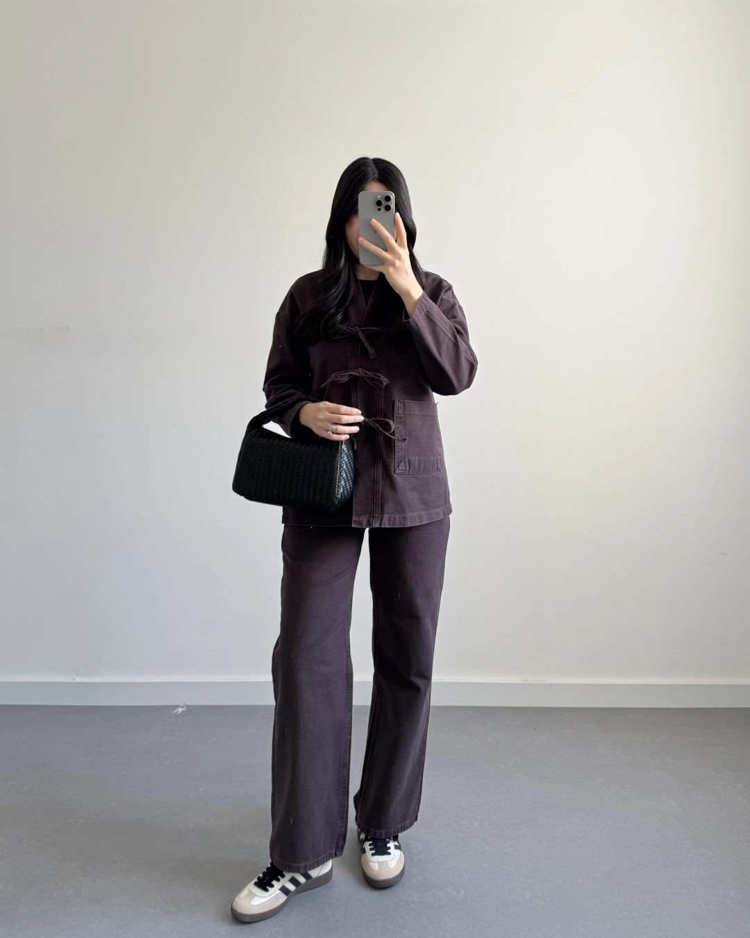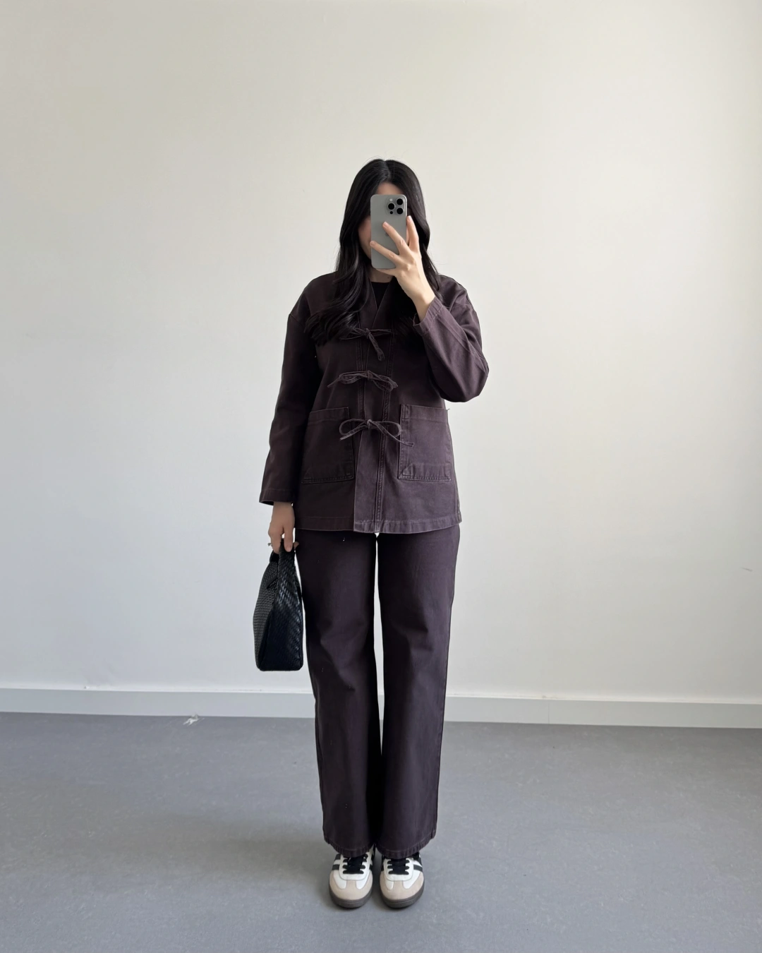 KAHVE PARAŞÜT KUMAŞ DETAYLI MODAL TAKIM