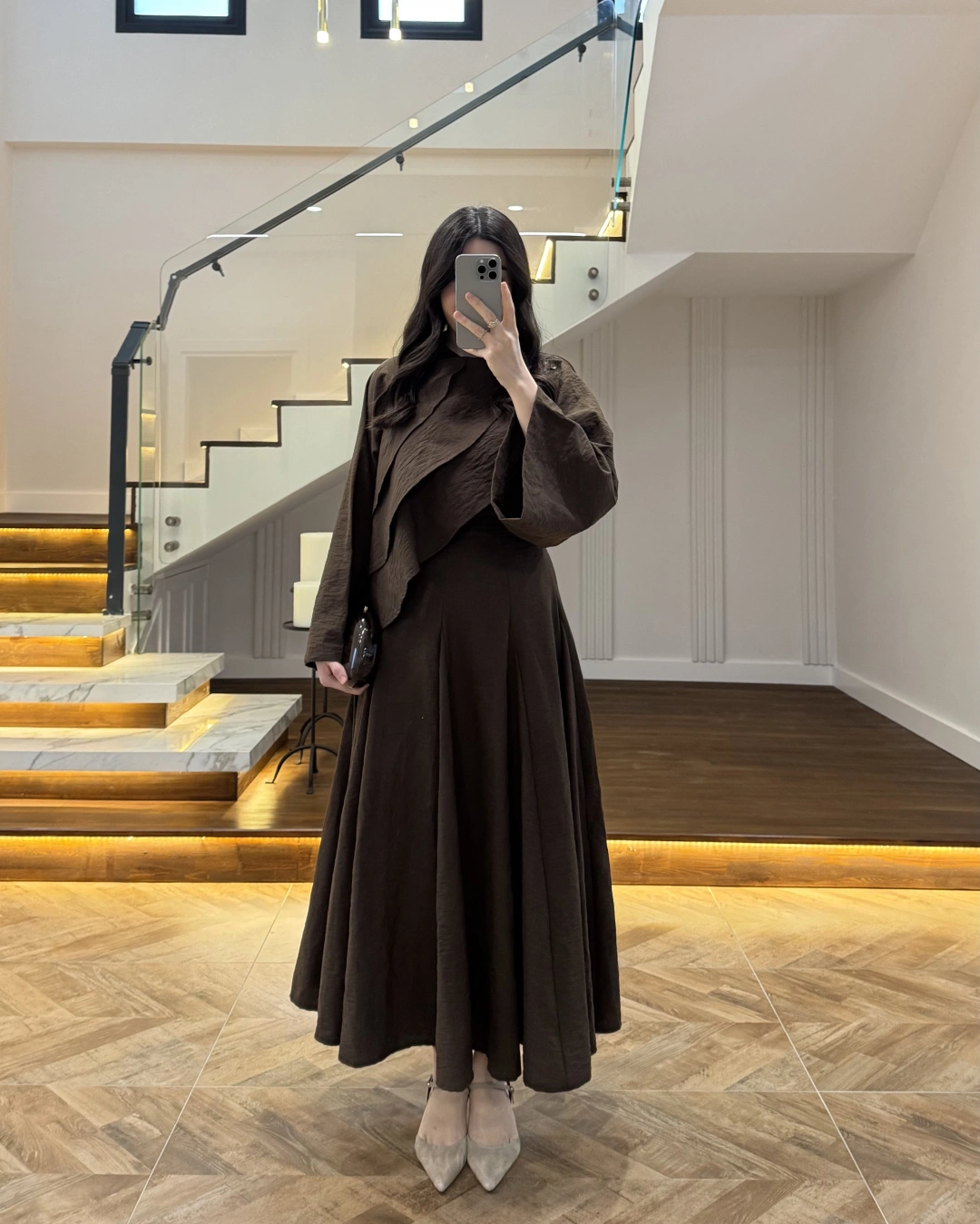KAHVE KAT KAT PELERİN BLUZ -5044