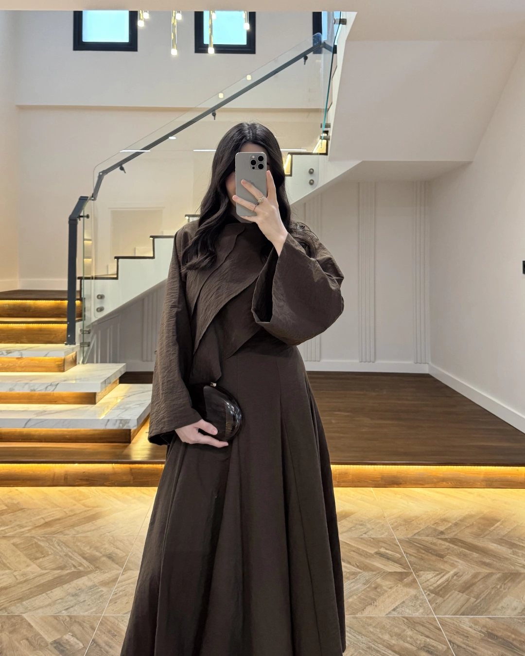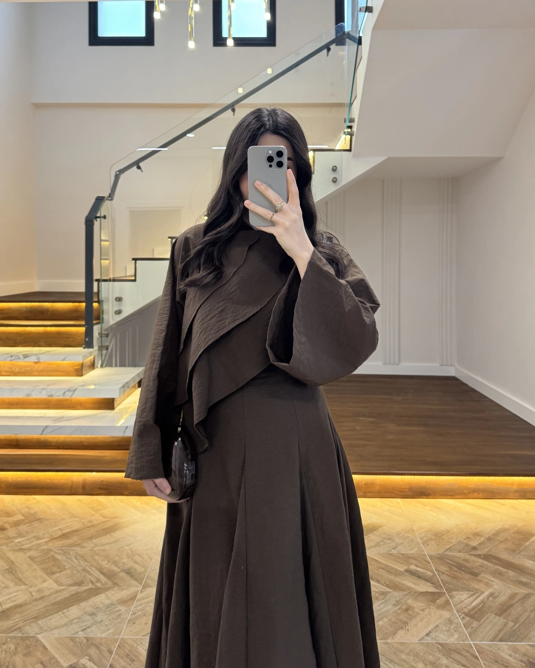 KAHVE PİLE DETAY V YAK GÖMLEK-2222