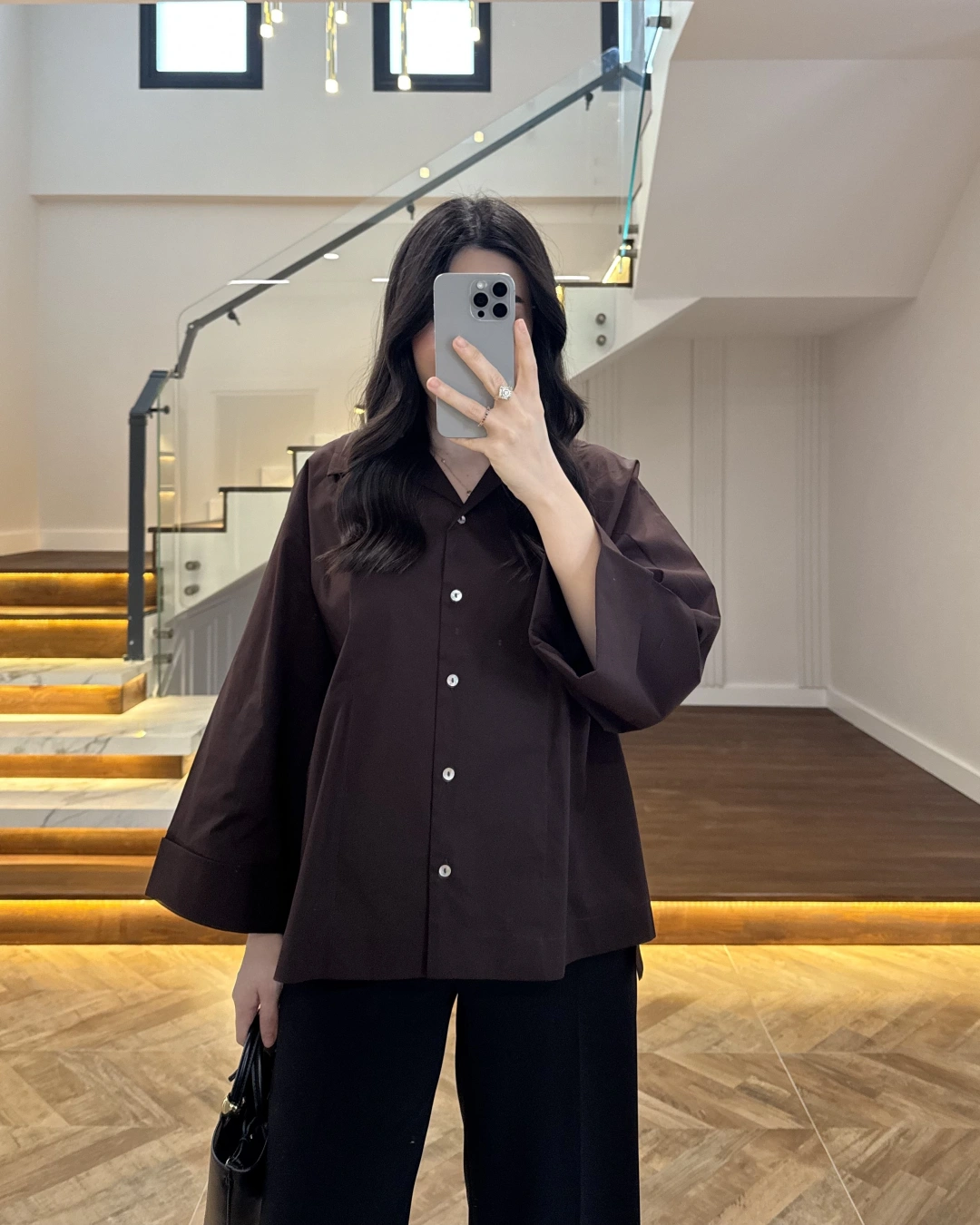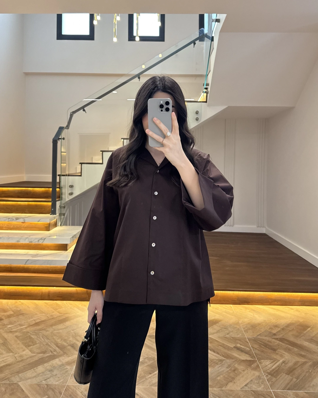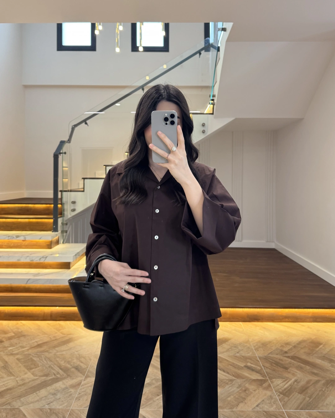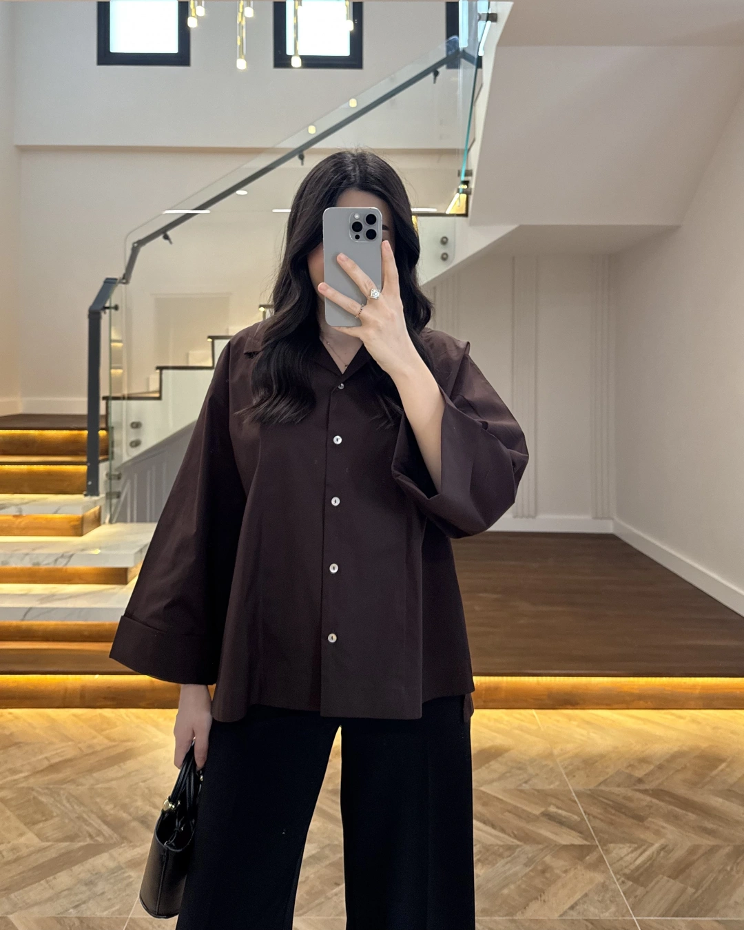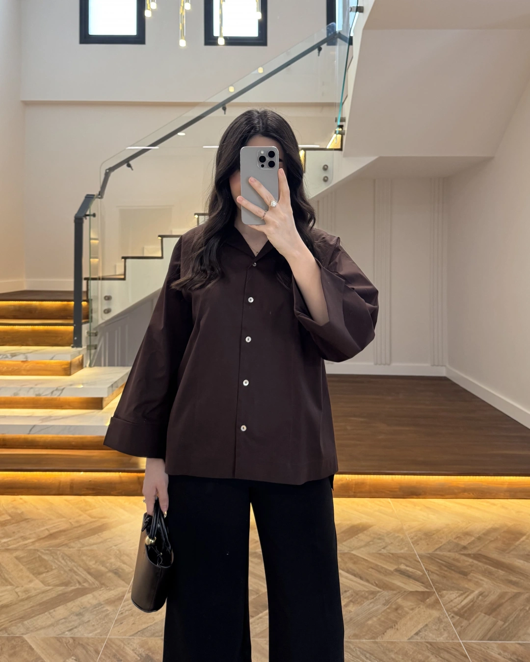 KAHVE OVERSİZE DUBLE KOL GÖMLEK-5411