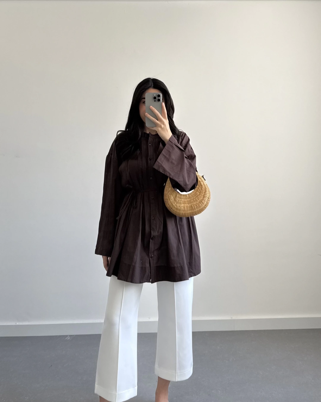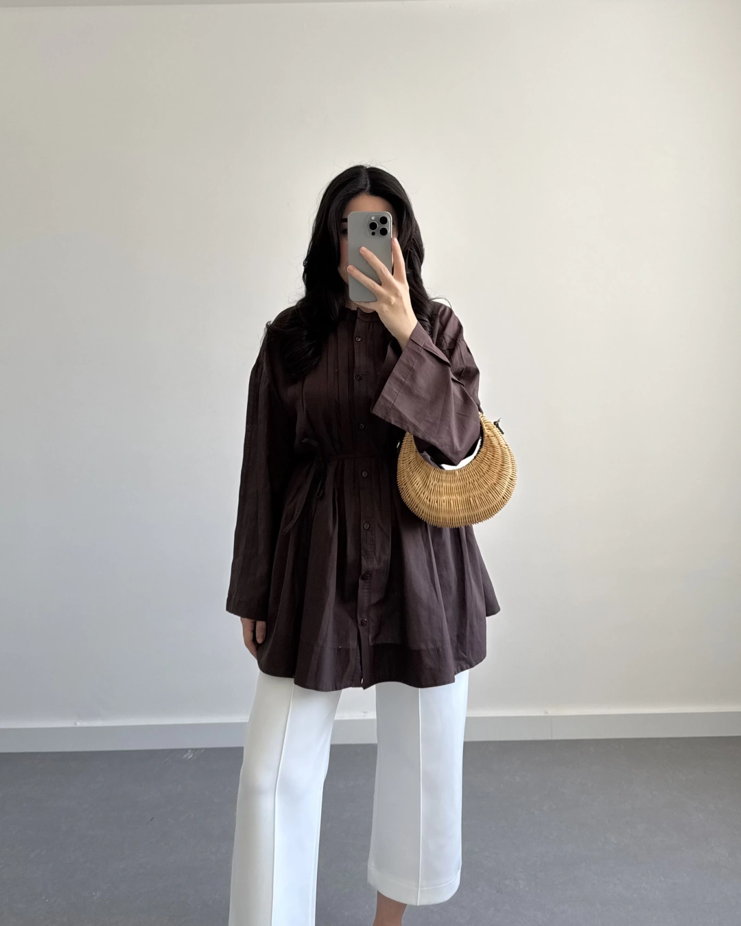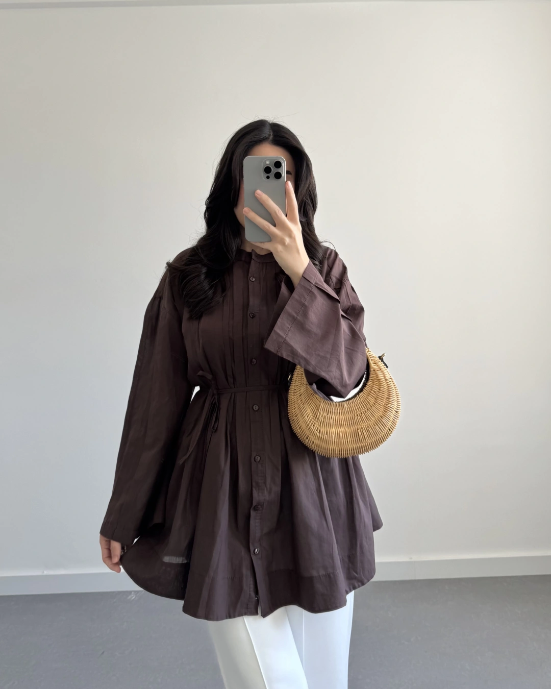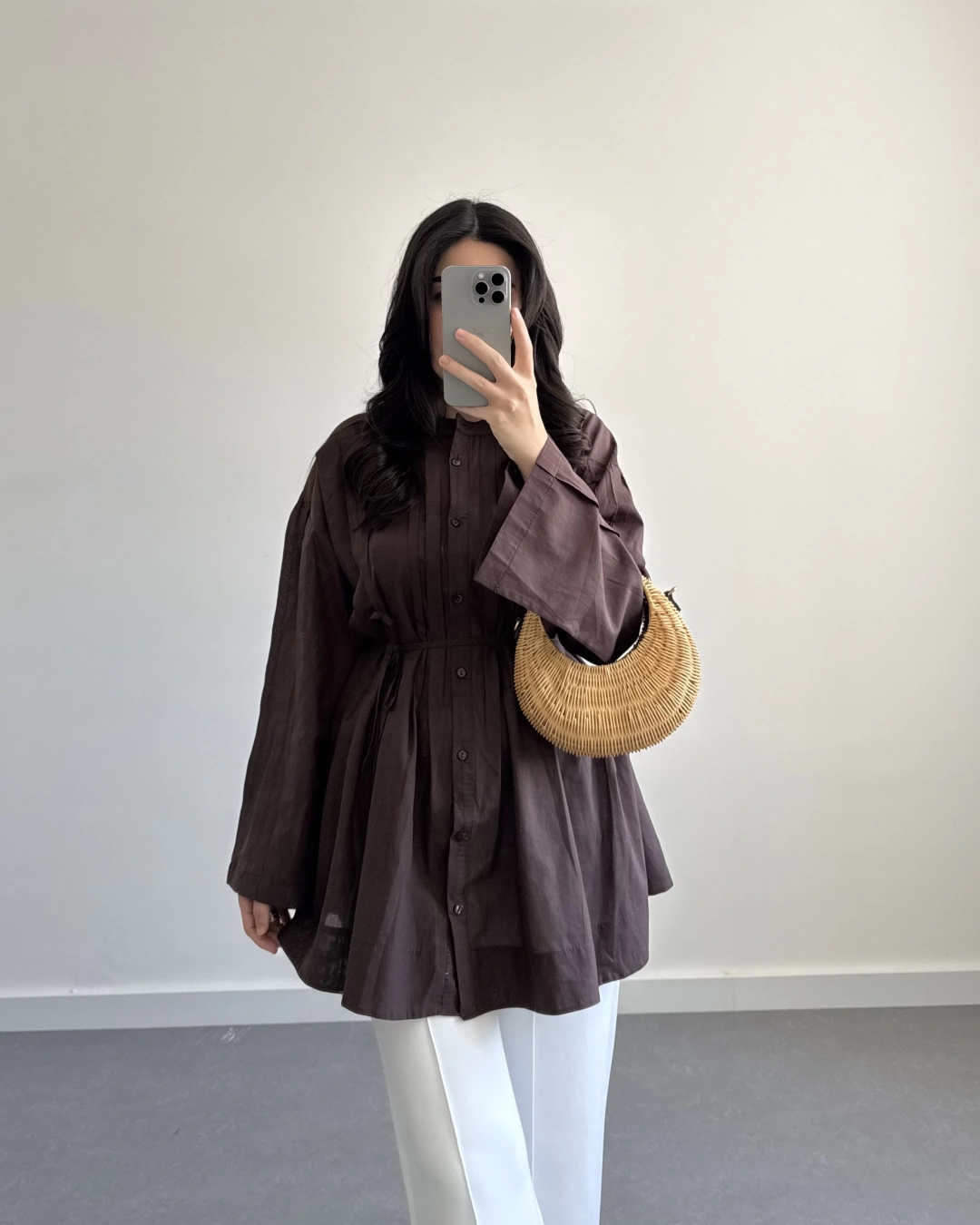 KAHVE PAMUK VUAL KUŞAKLI GÖMLEK