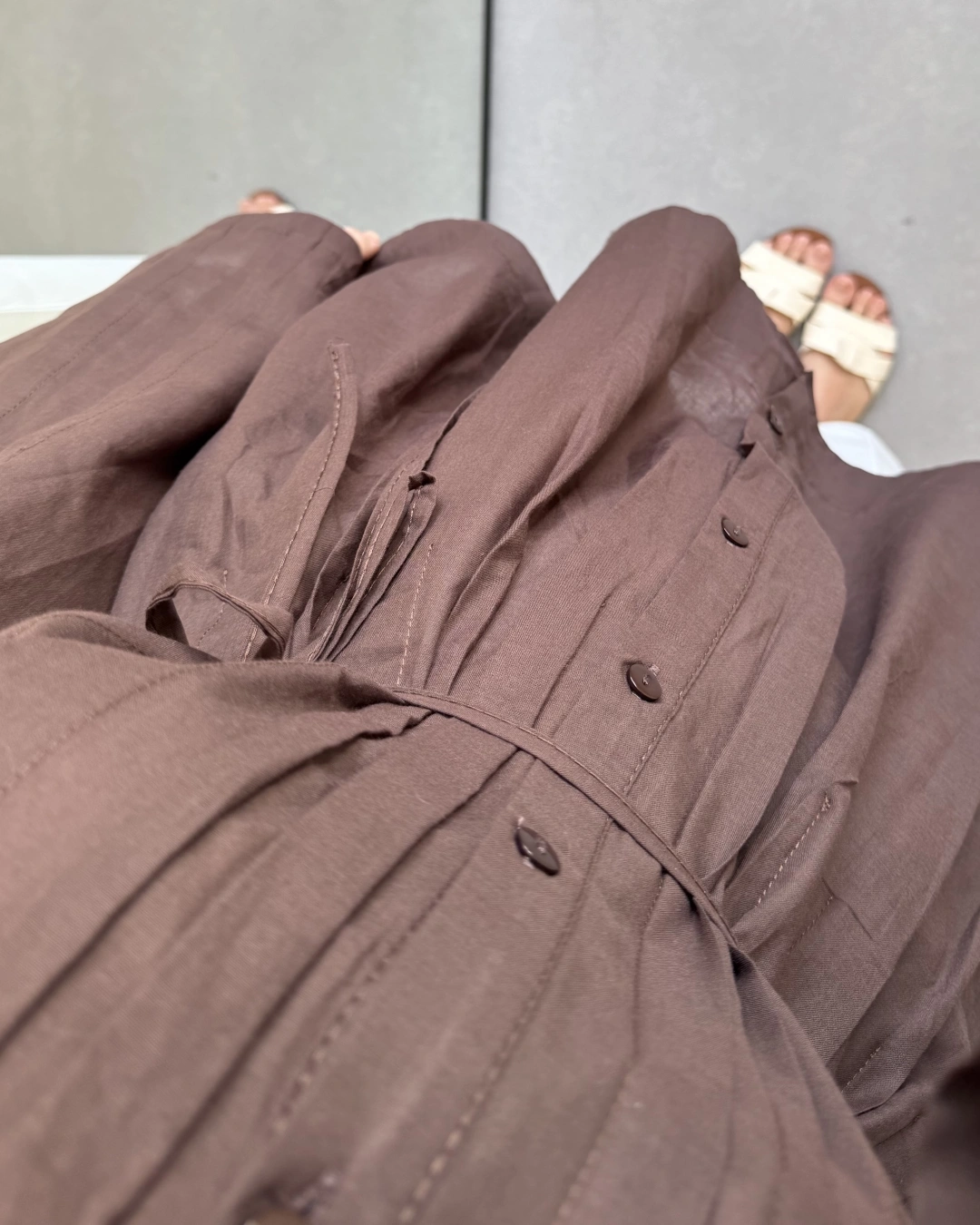 KAHVE BELİ KUŞAKLI PİLELİ MODAL TAKIM