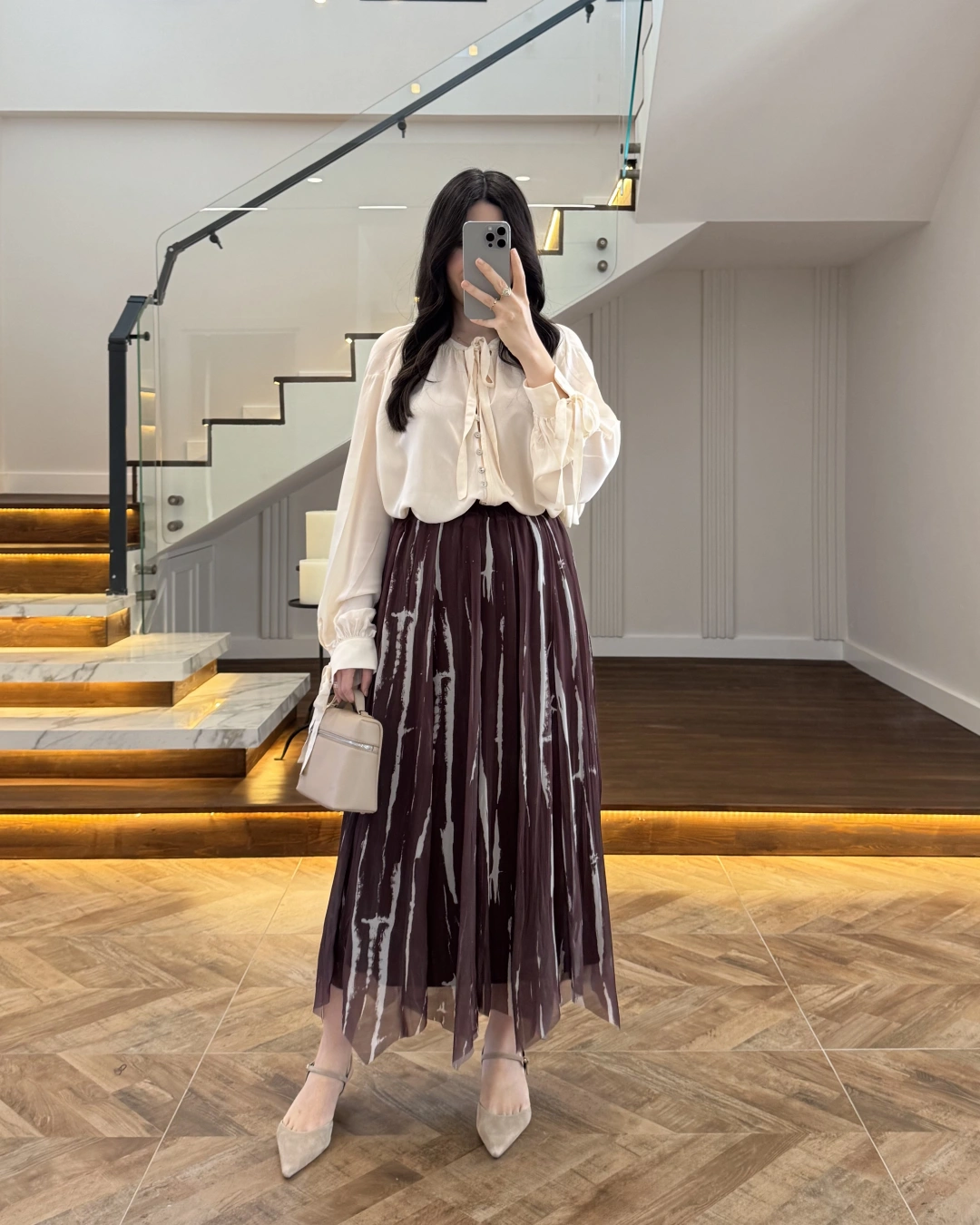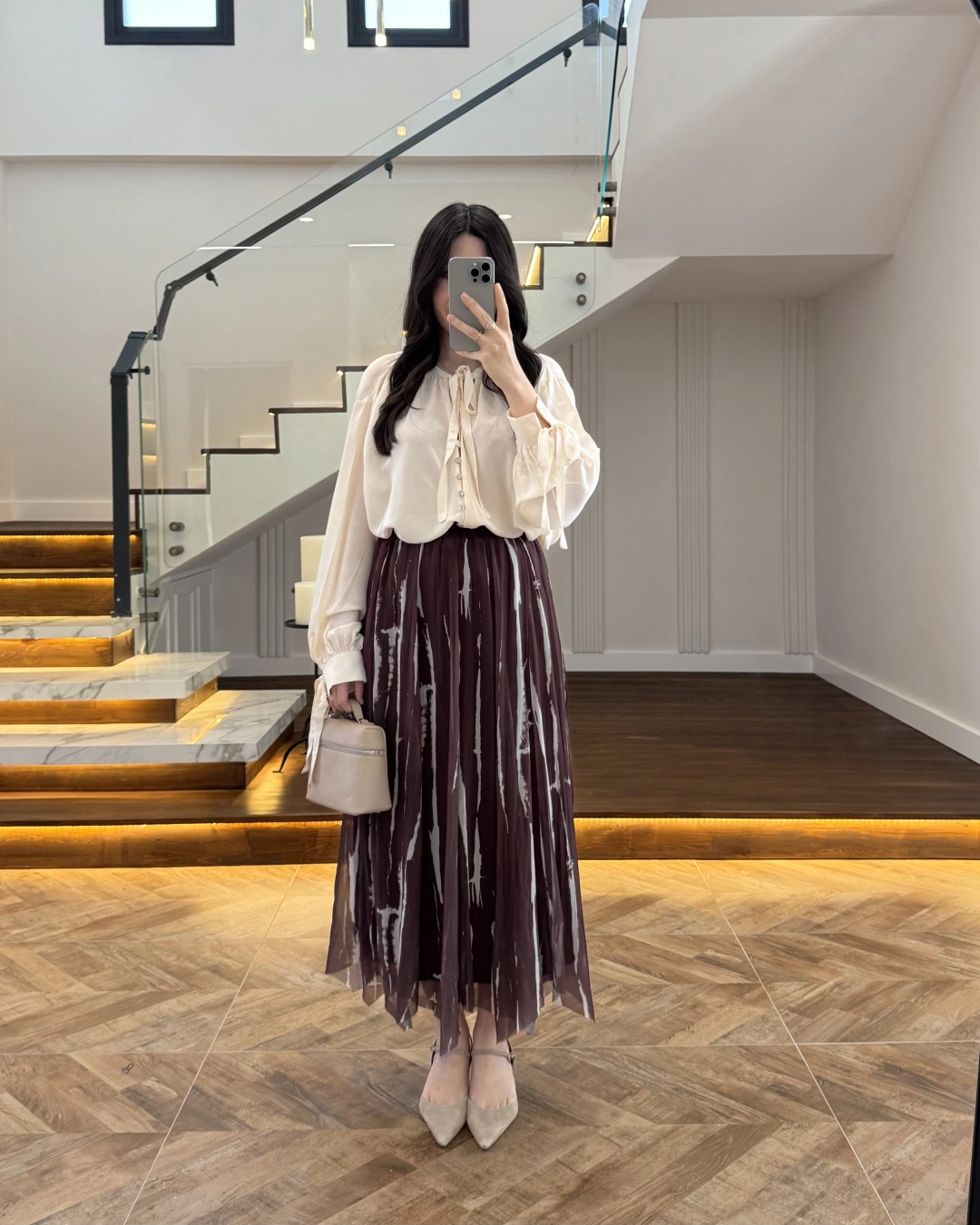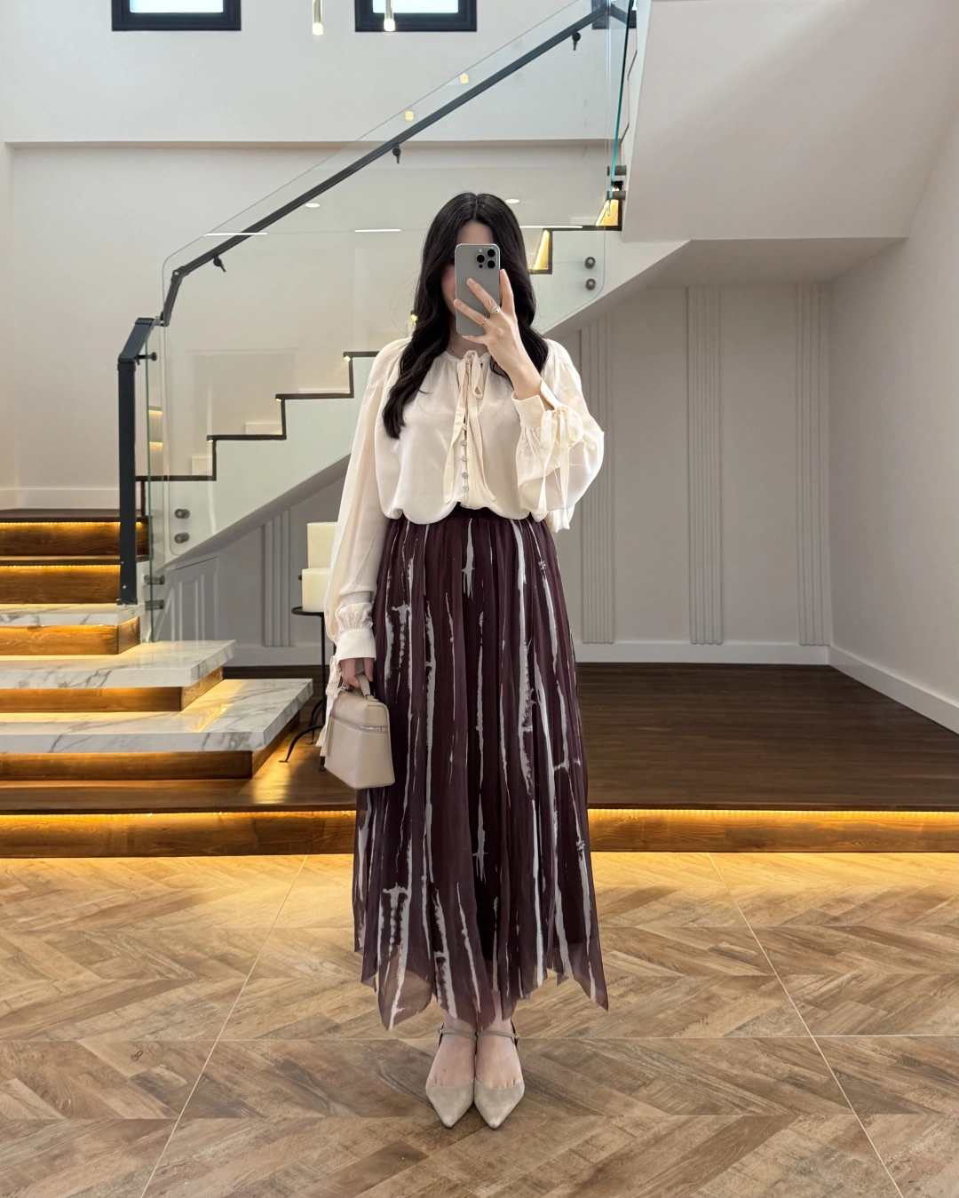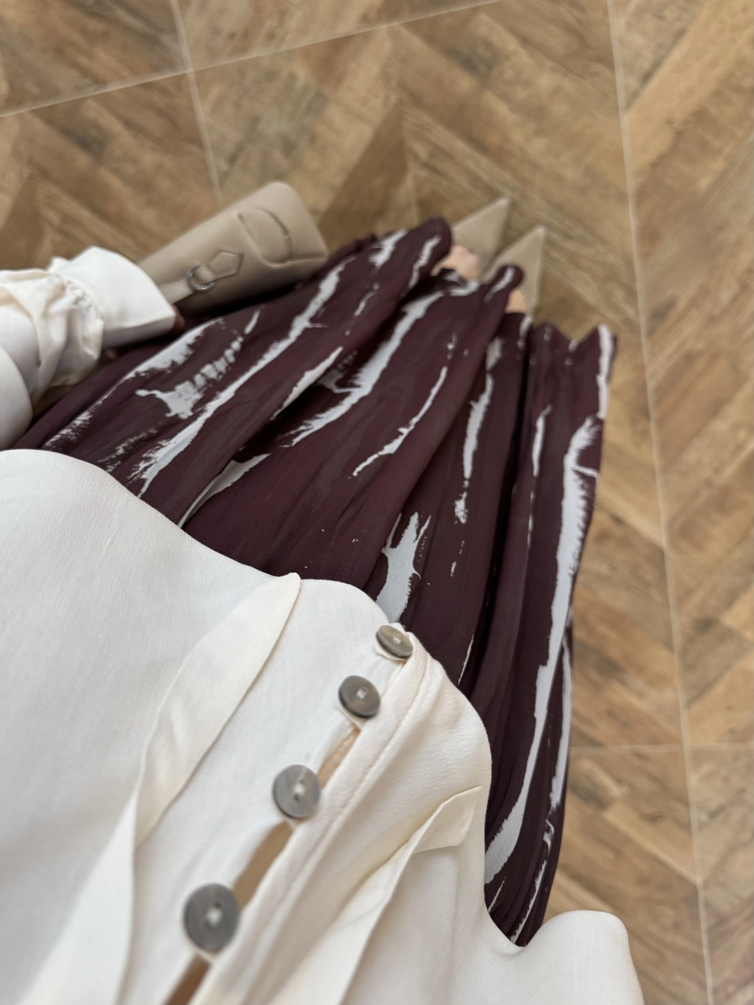 KAHVE PARÇALI ŞİFON ETEK -3369