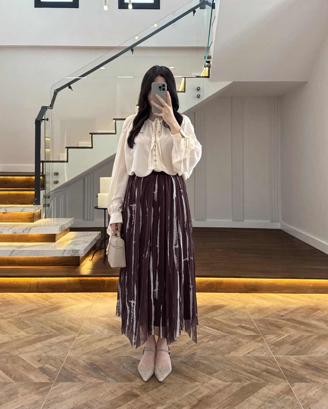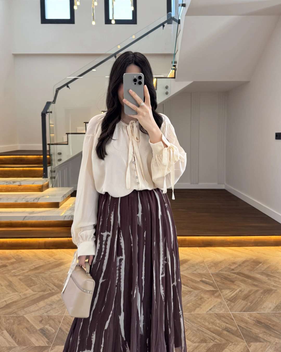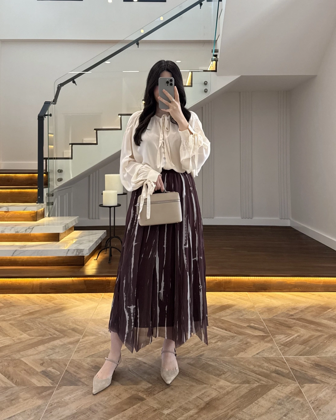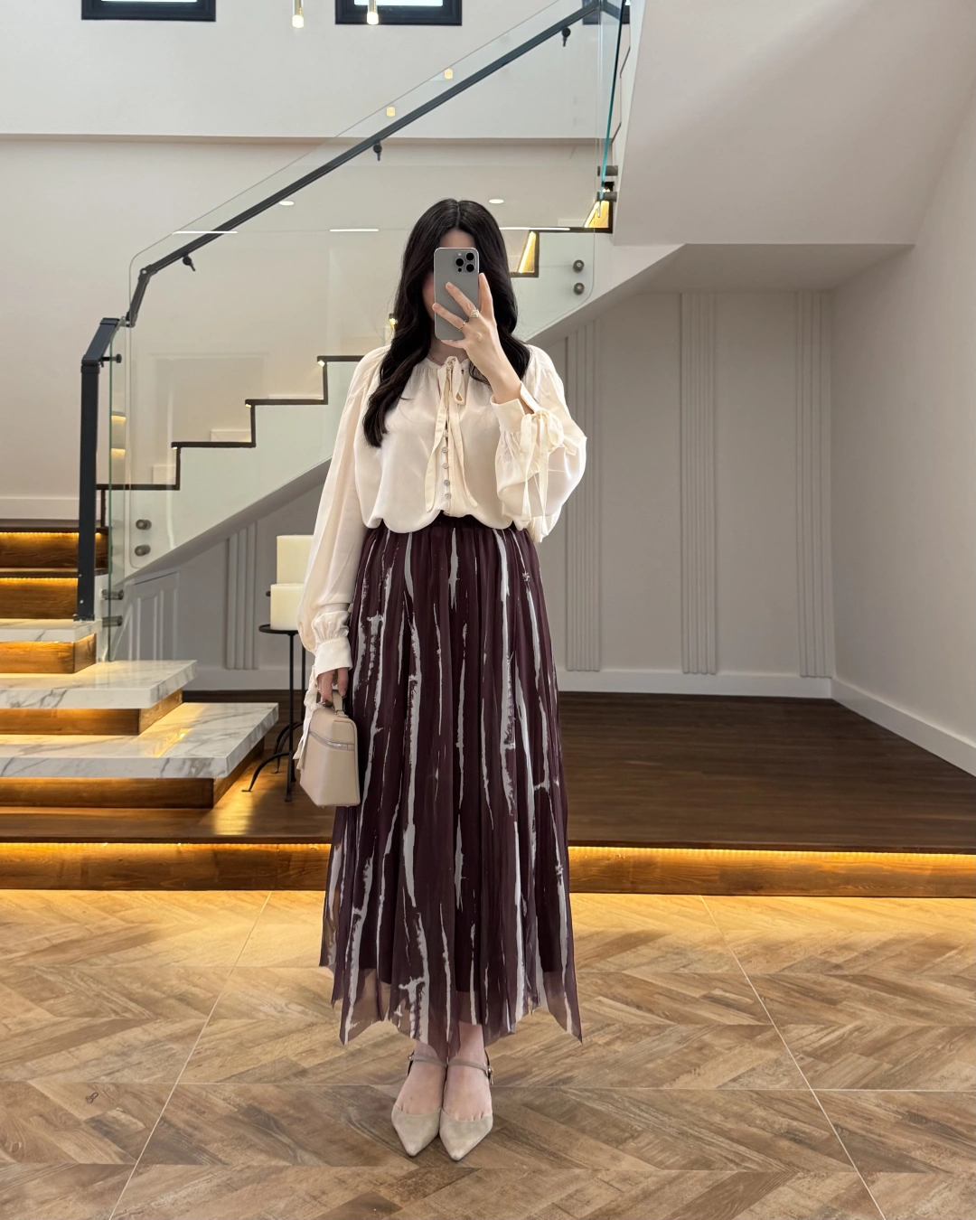 KAHVE PARÇALI ŞİFON ETEK -3369