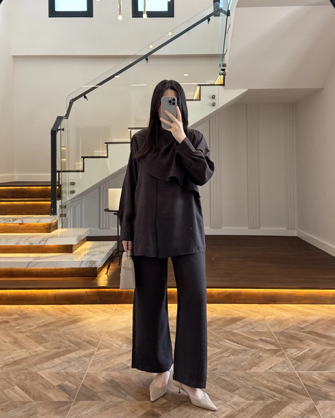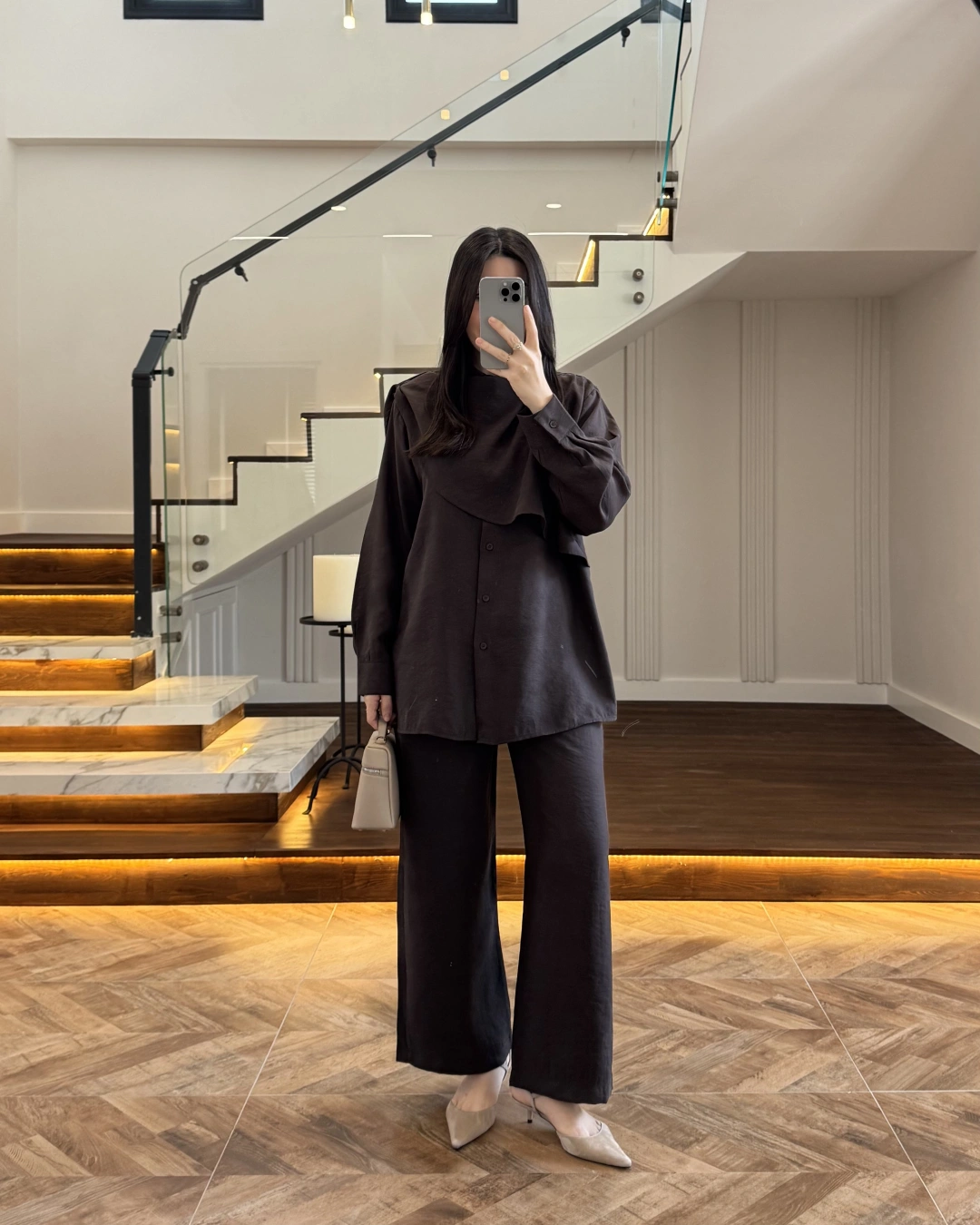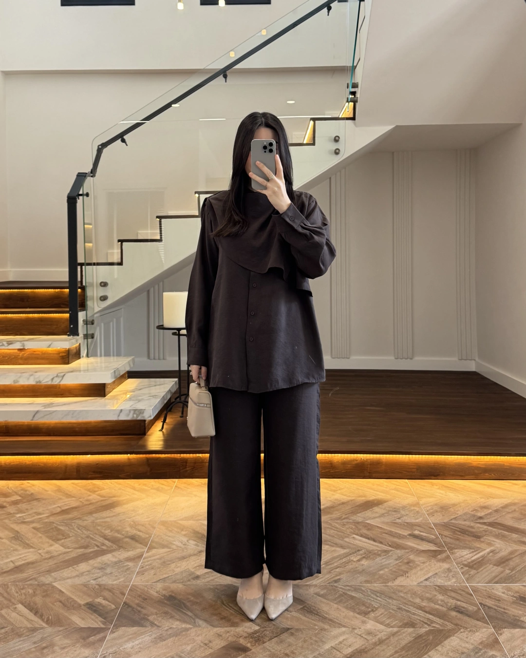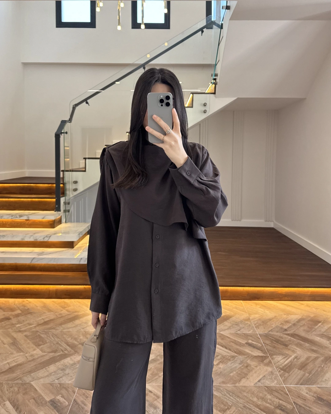 KAHVE VİSKON GÖMLEK TAKIM-9050