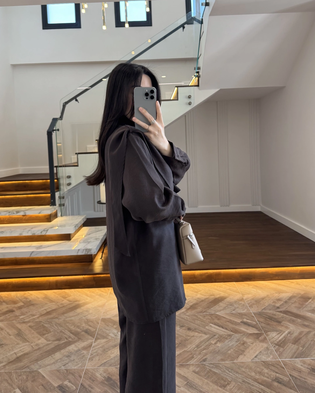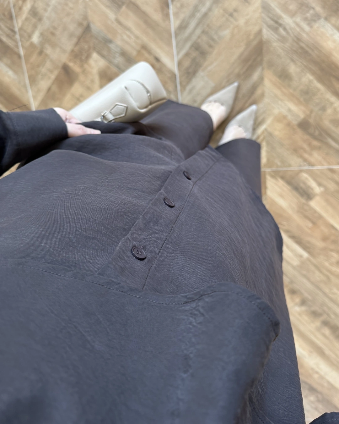 KAHVE PİLE DETAY V YAK GÖMLEK-2222