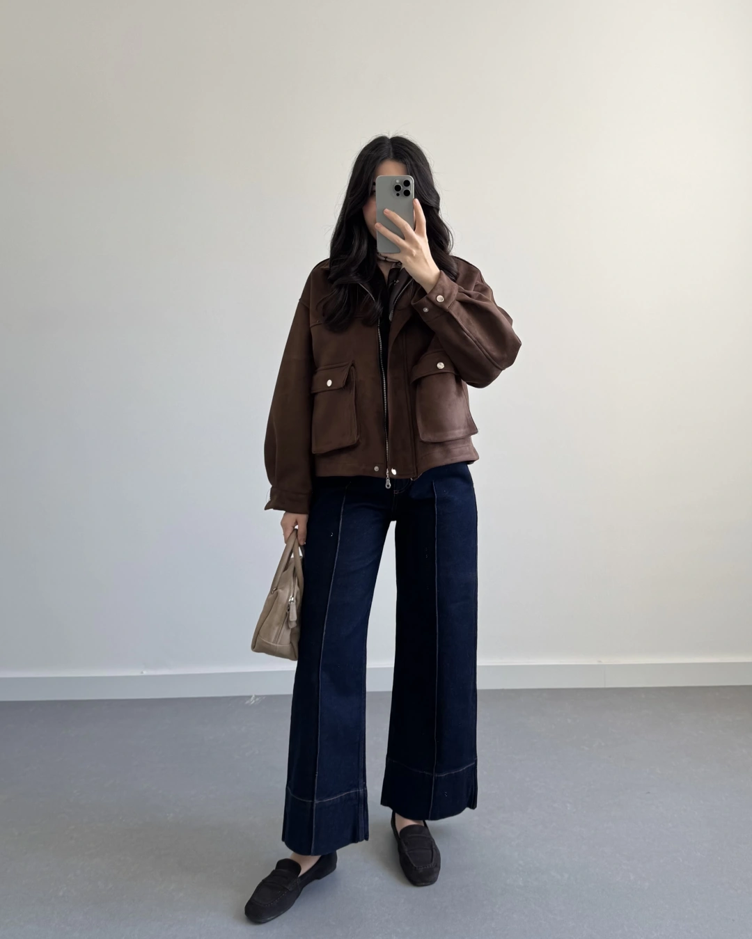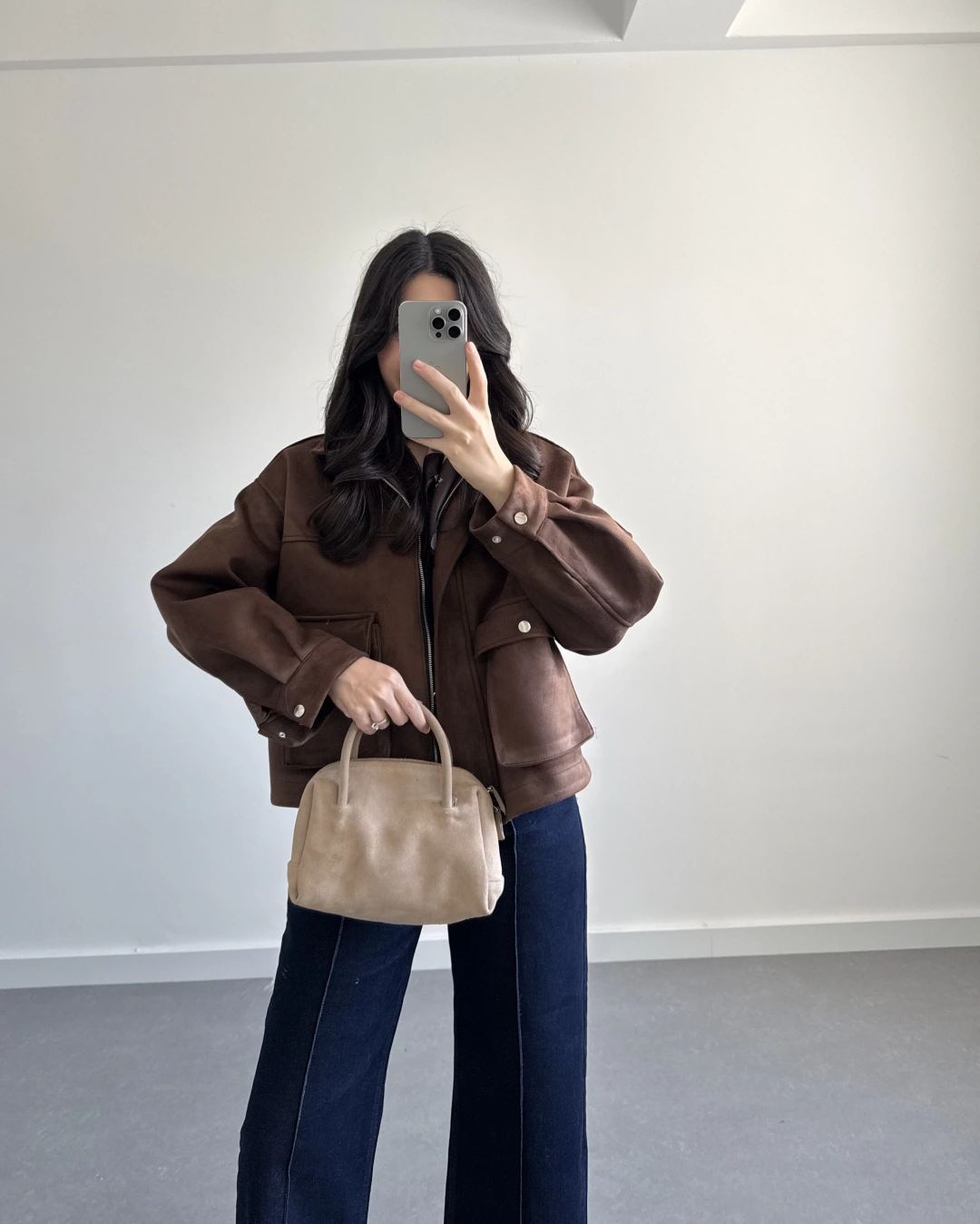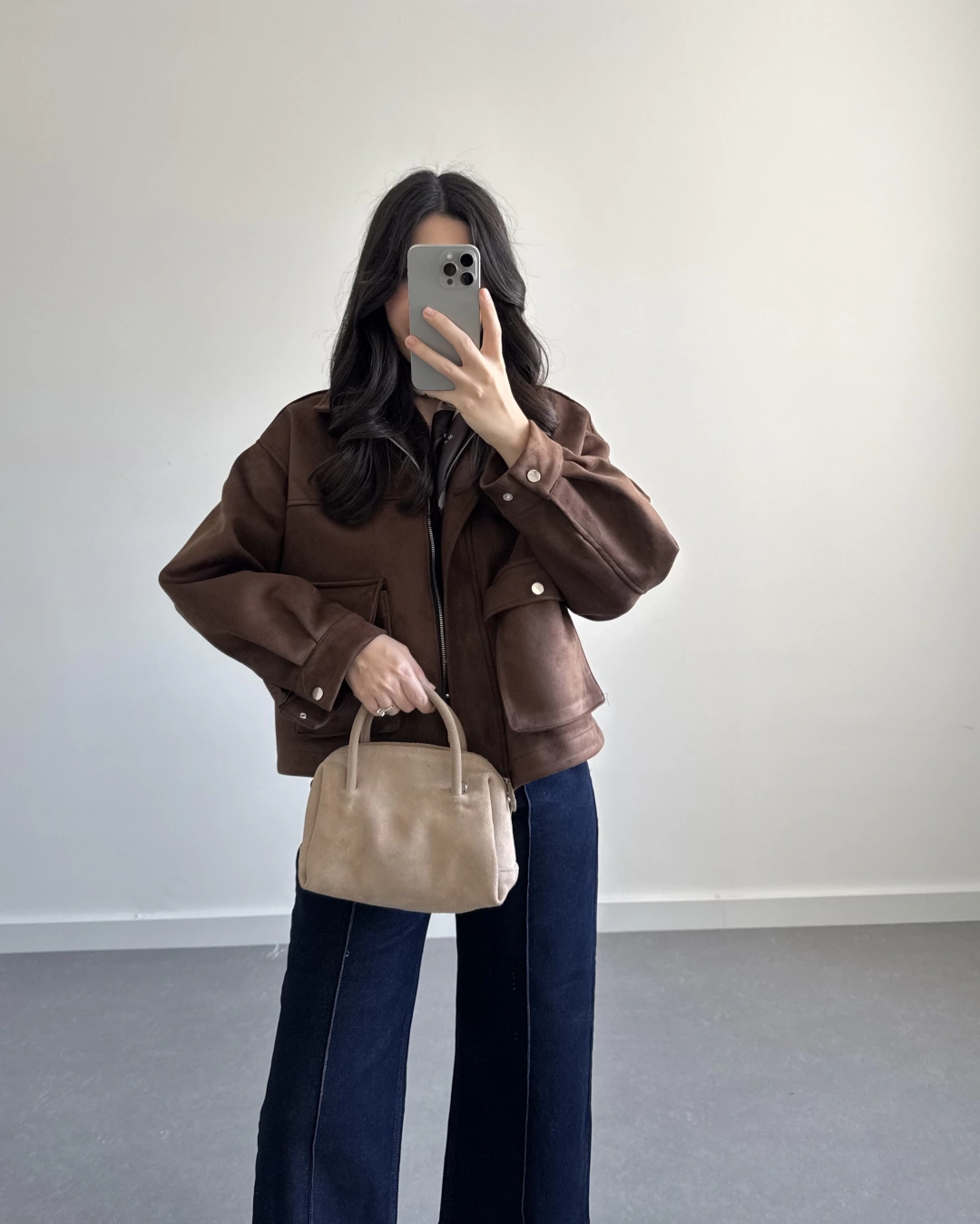 KAHVE SÜET ÖNÜ CEPLİ BOMBER CEKET