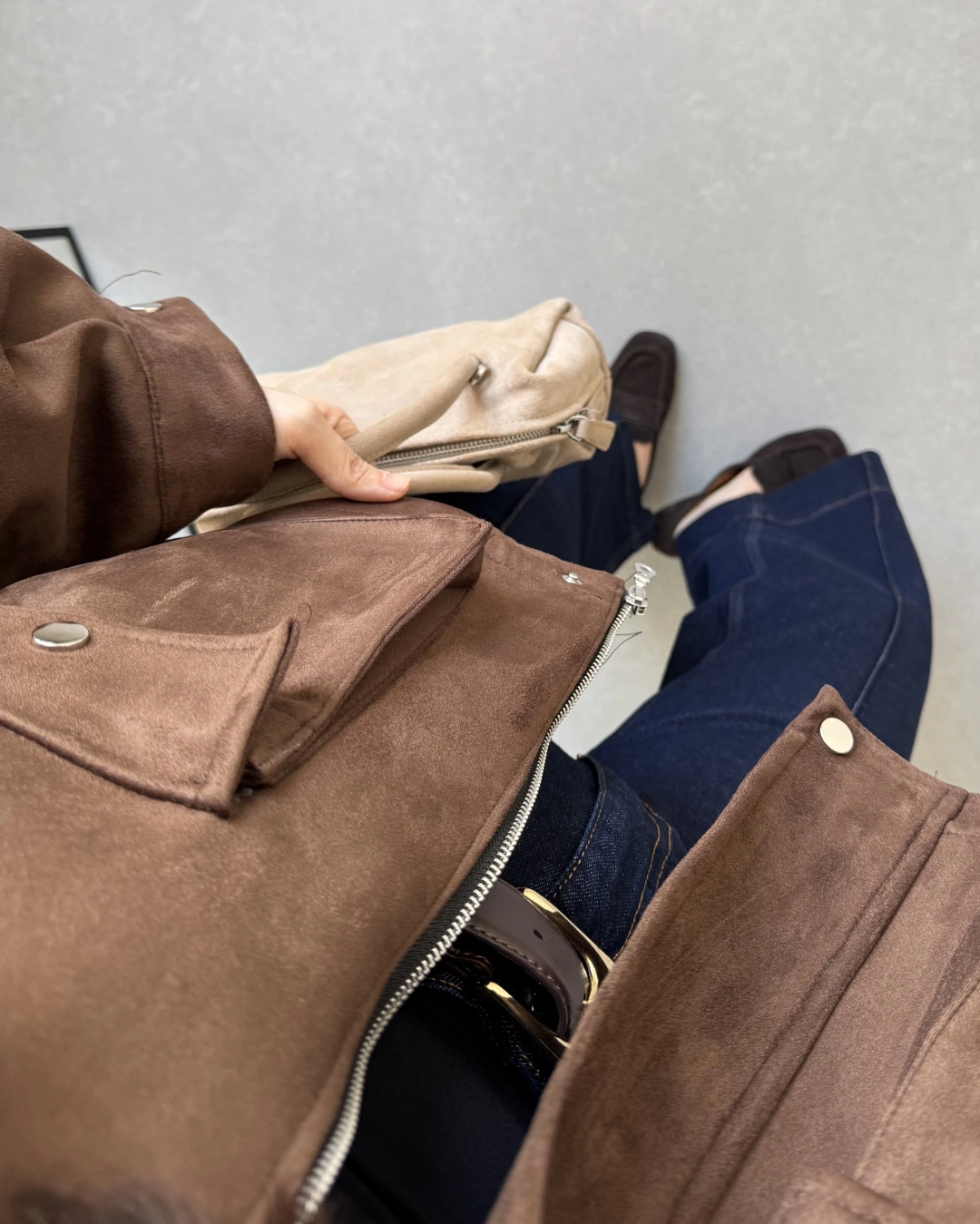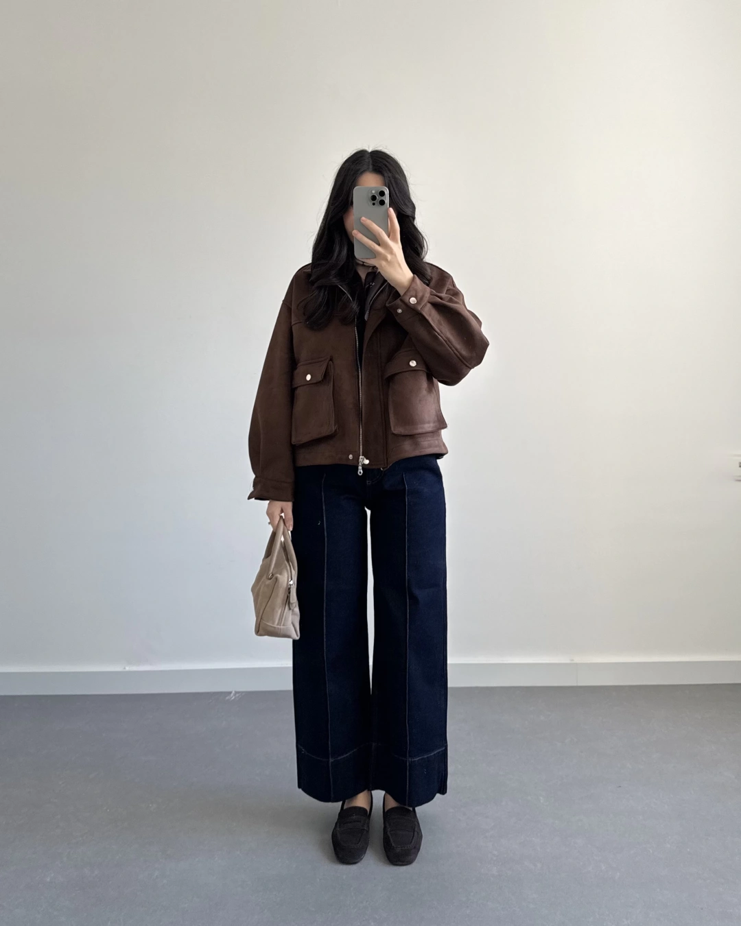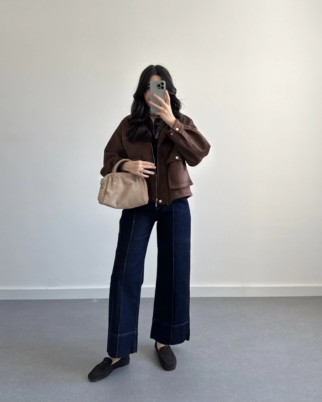 KAHVE SÜET ÖNÜ CEPLİ BOMBER CEKET