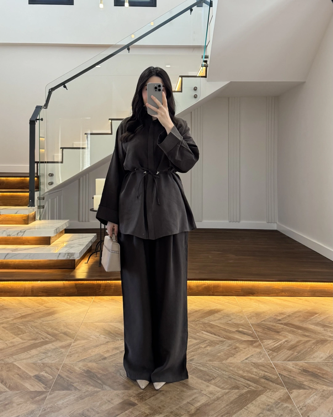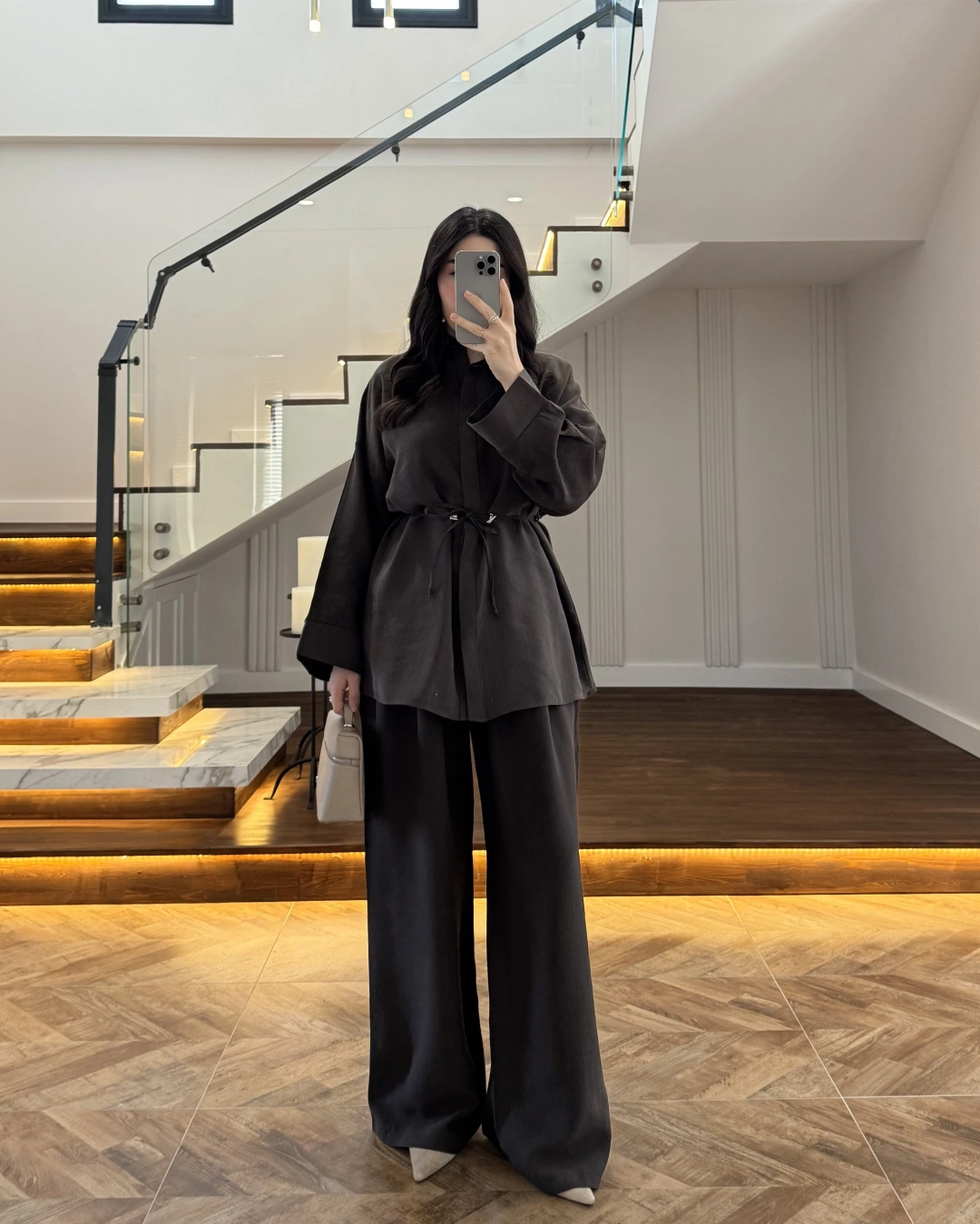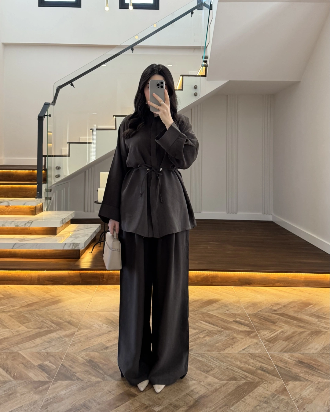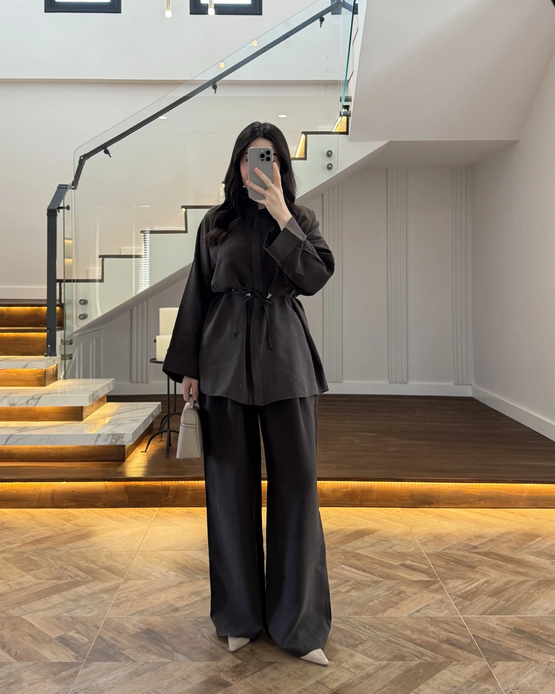 KAHVE TENSEL GÖMLEK PANTOLON TAKIM -51281