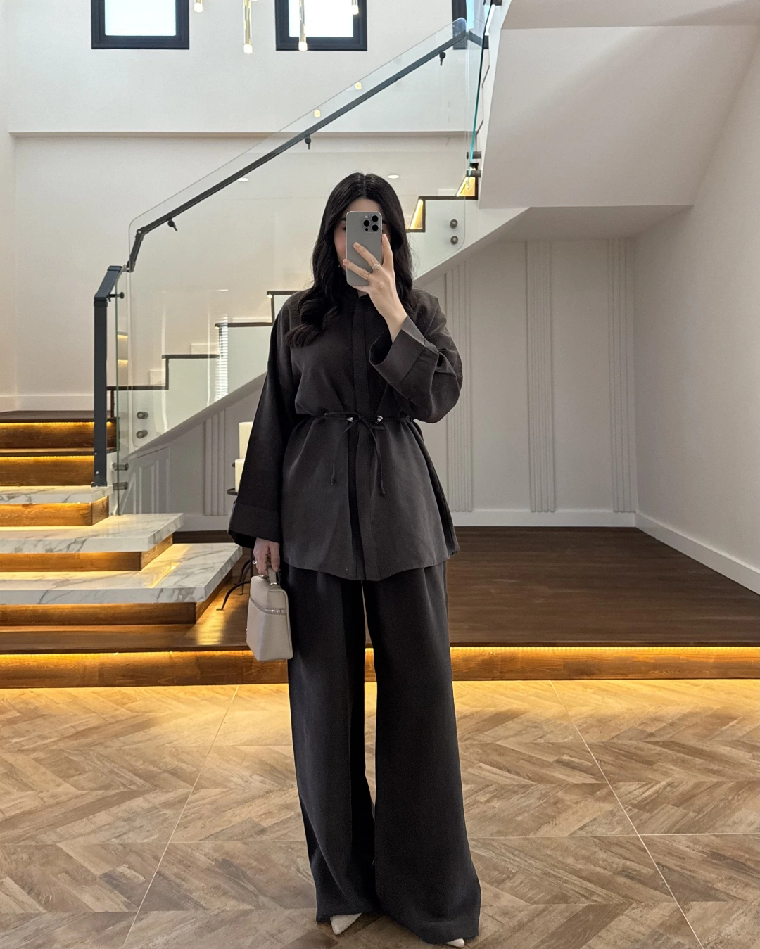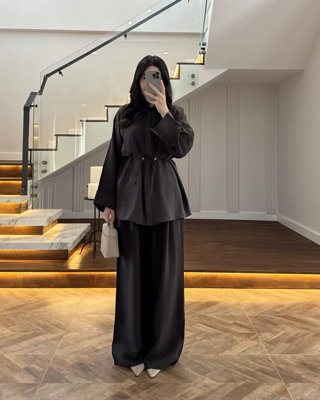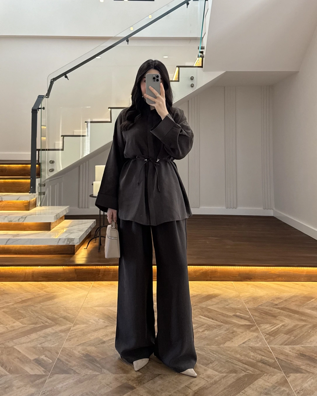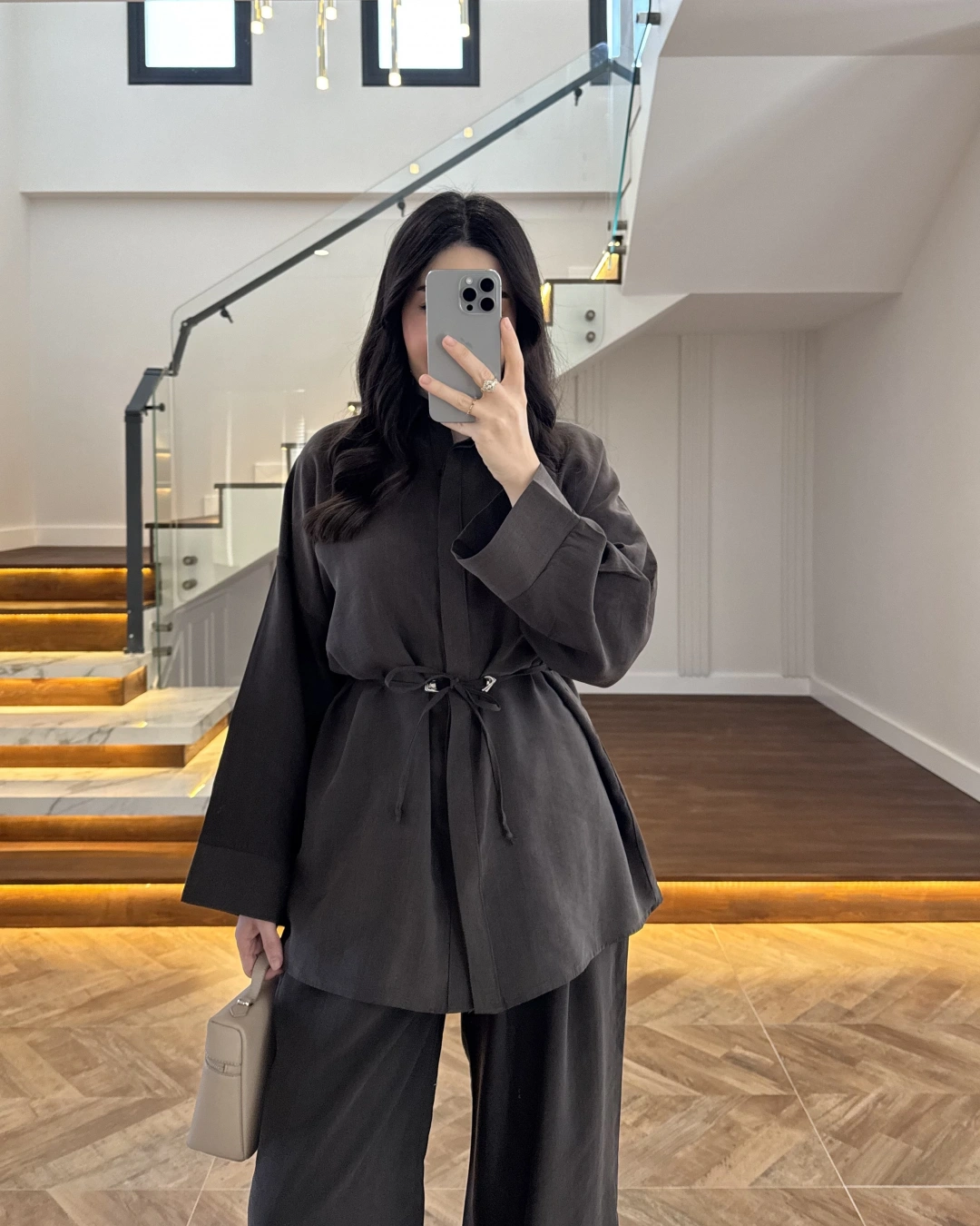 KAHVE TENSEL GÖMLEK PANTOLON TAKIM -51281
