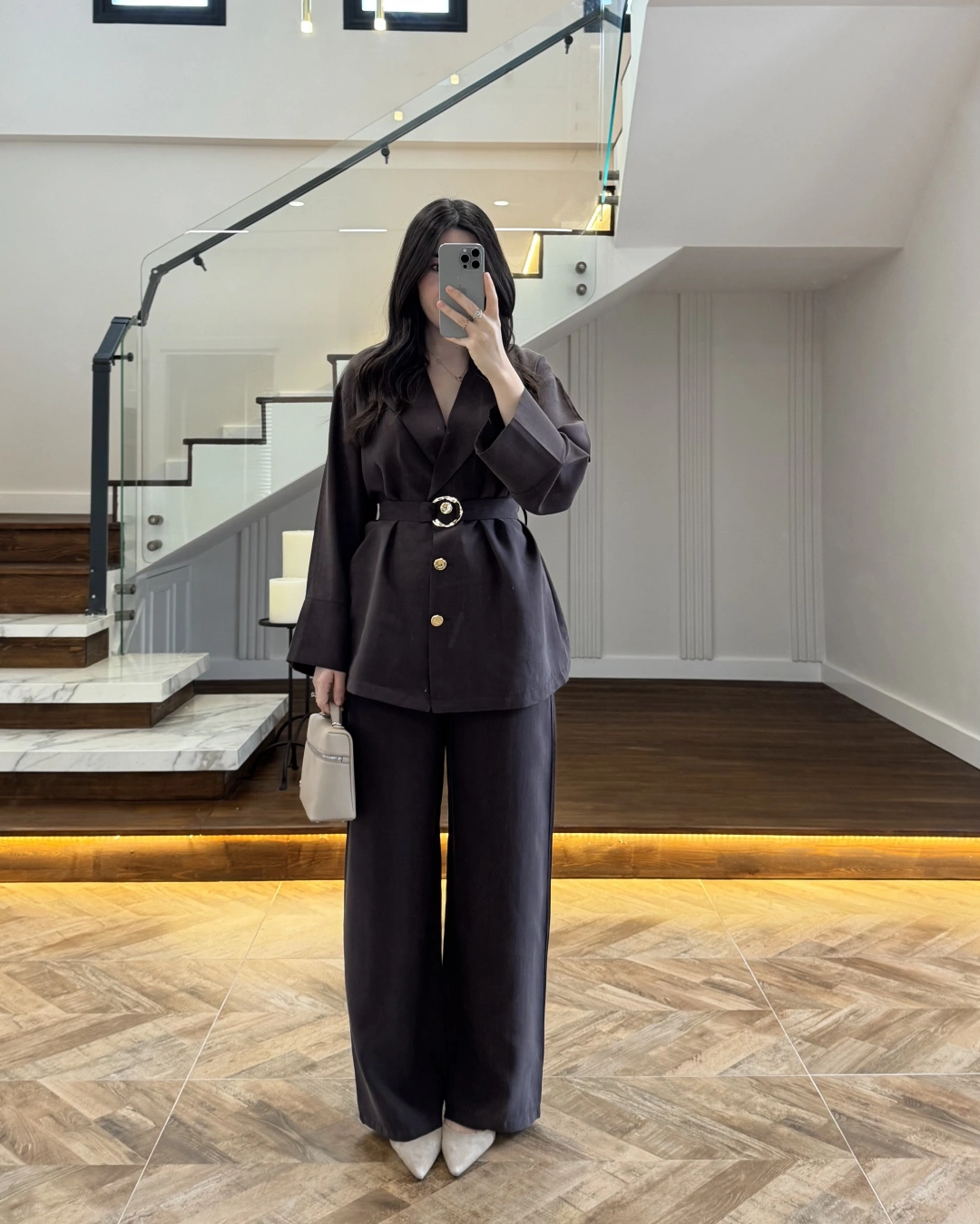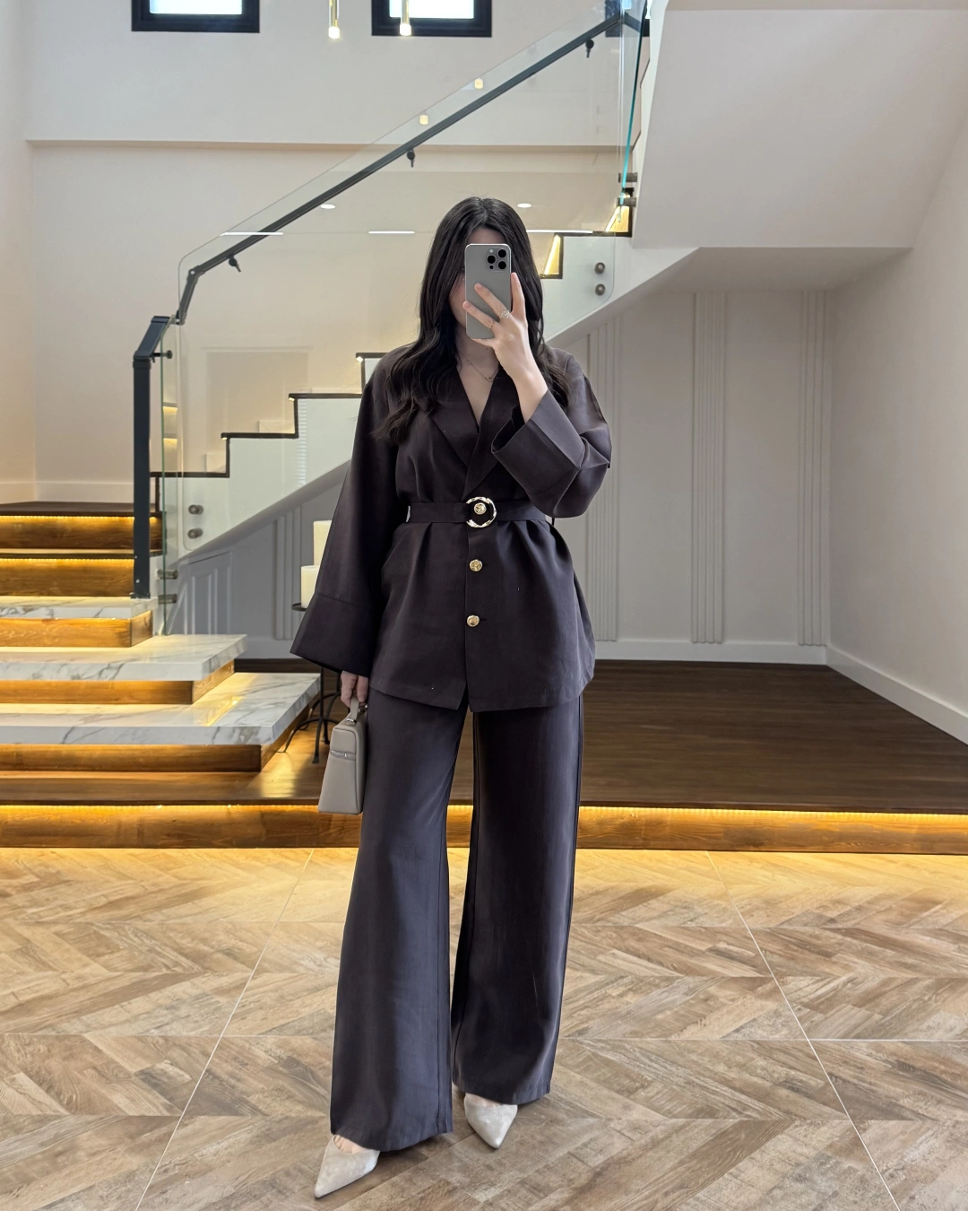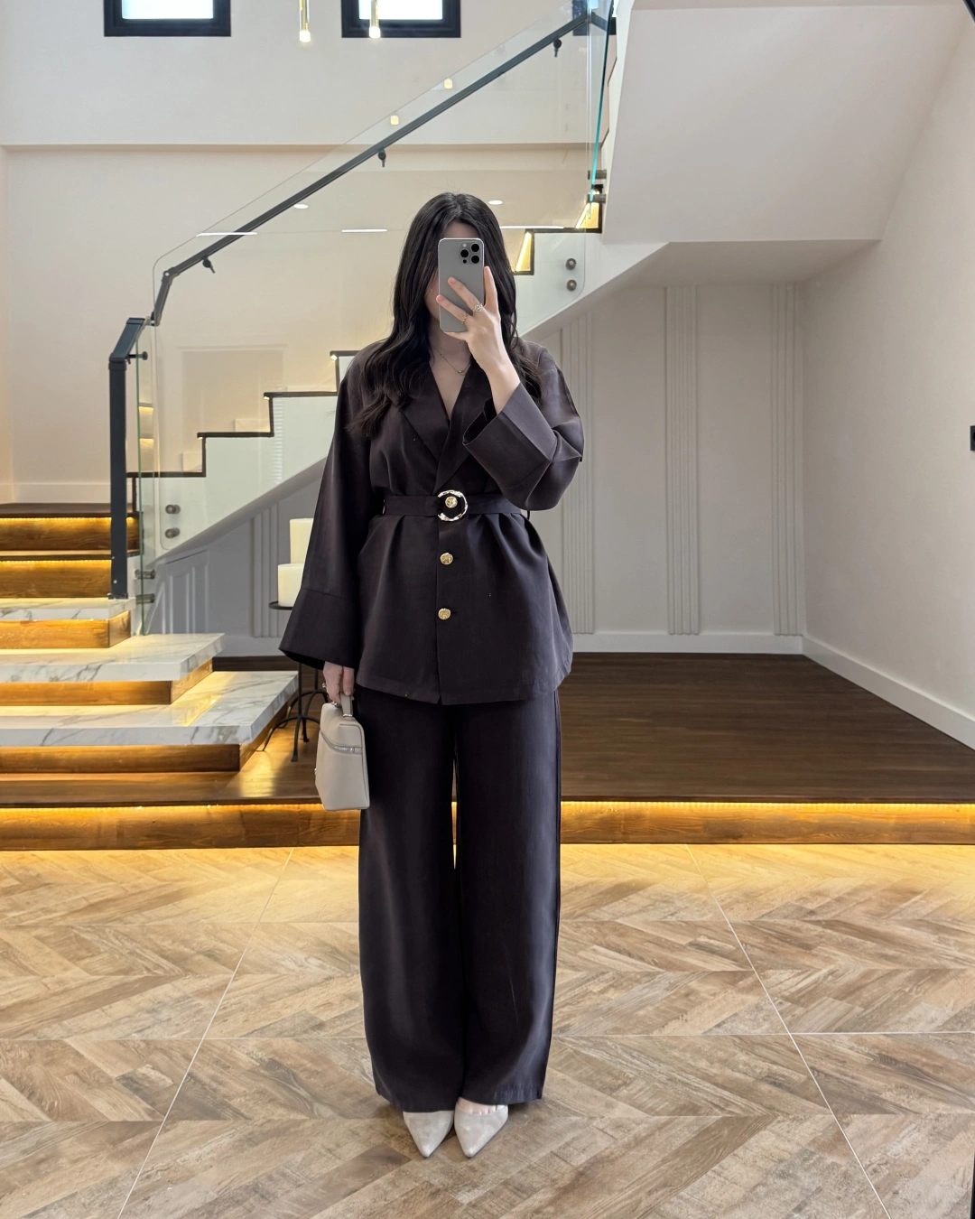 pantolon bel lastikli bağcıklı olup tam kalıp bir üründür