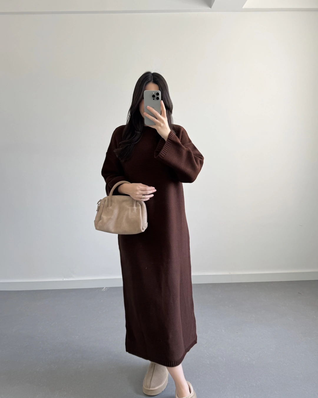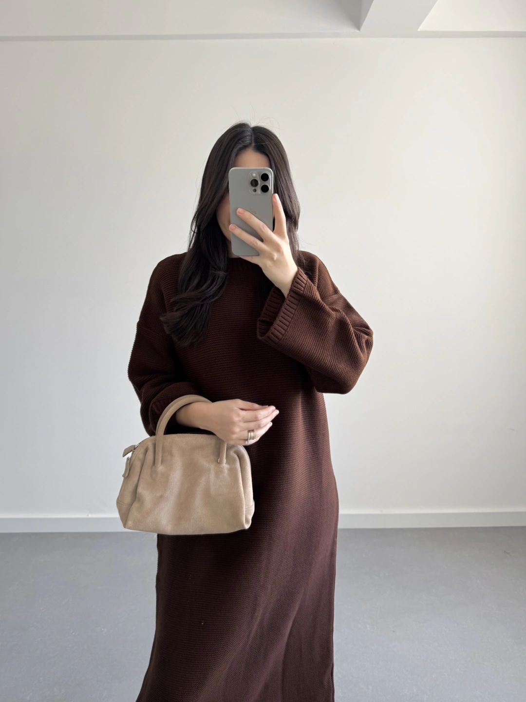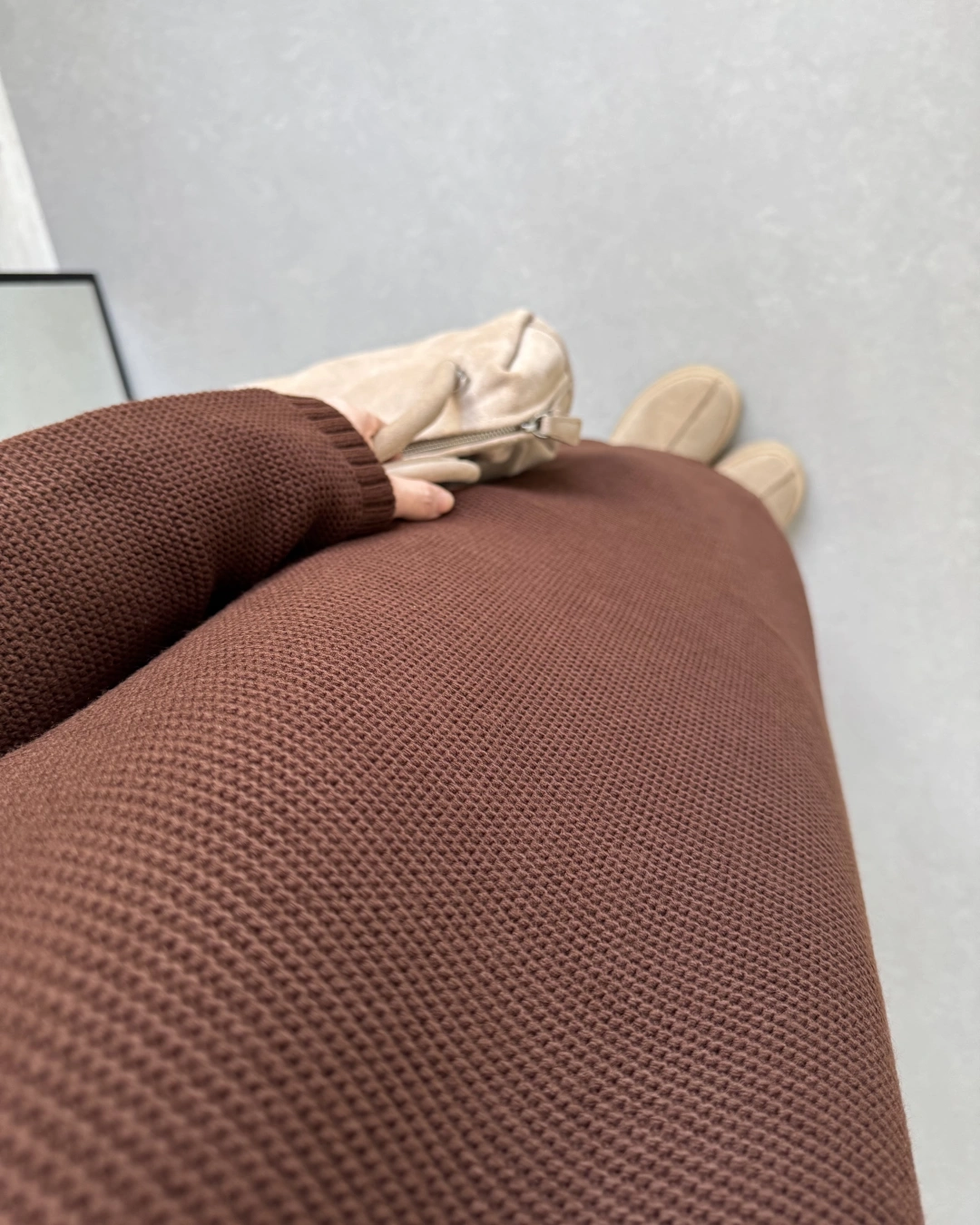 KAHVE BELİ KUŞAKLI PİLELİ MODAL TAKIM