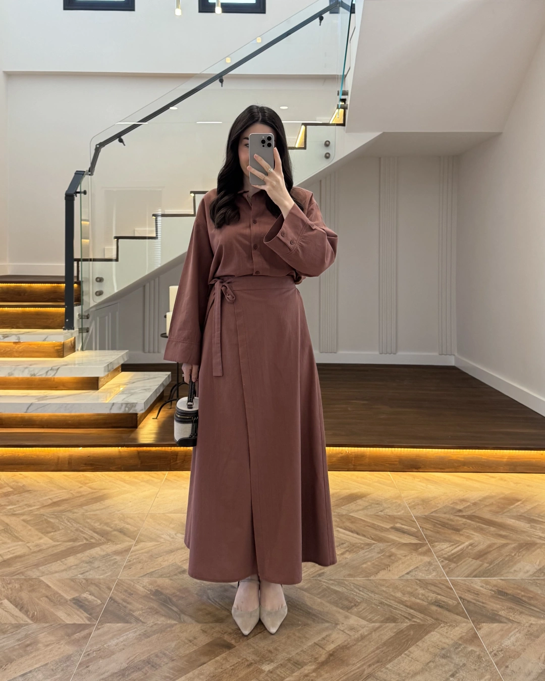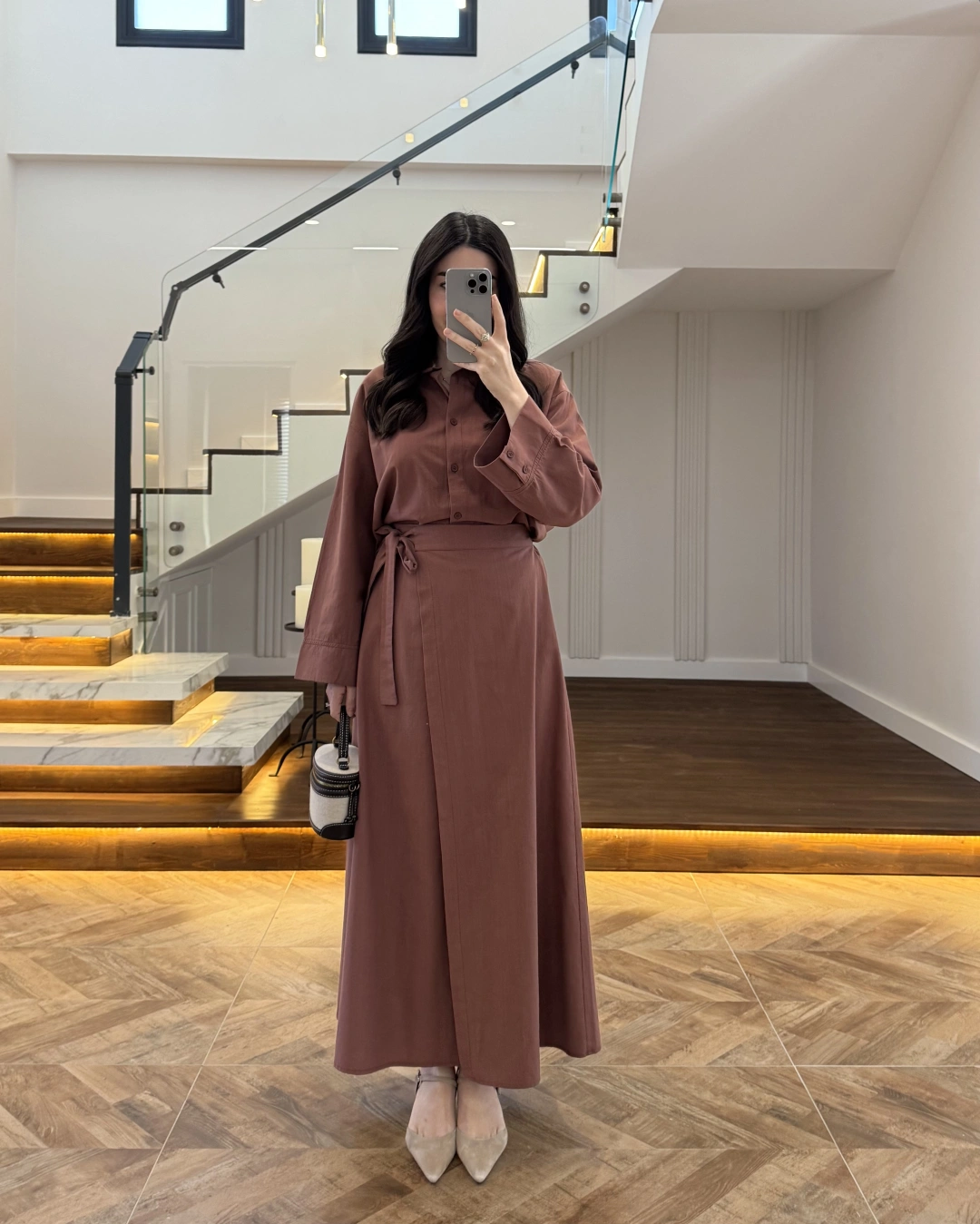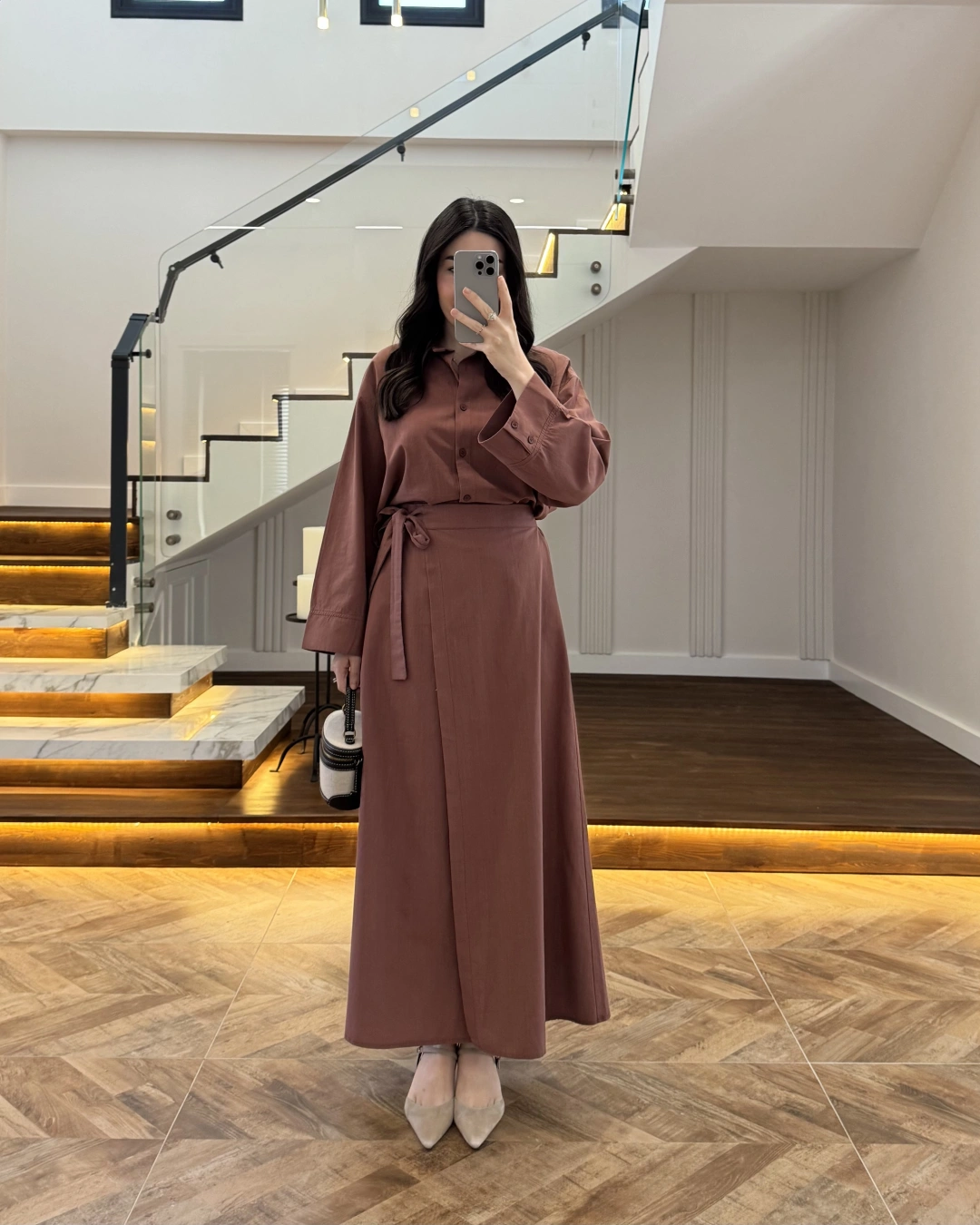 KİREMİT HAM KETEN ETEK GÖMLEK TAKIM-8973