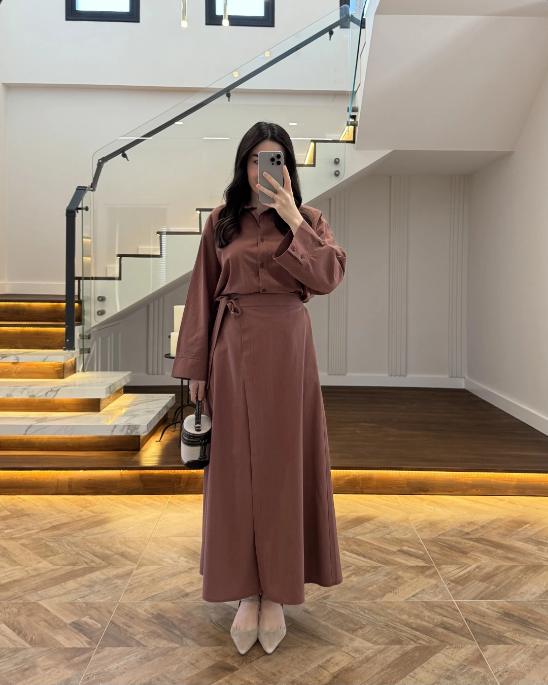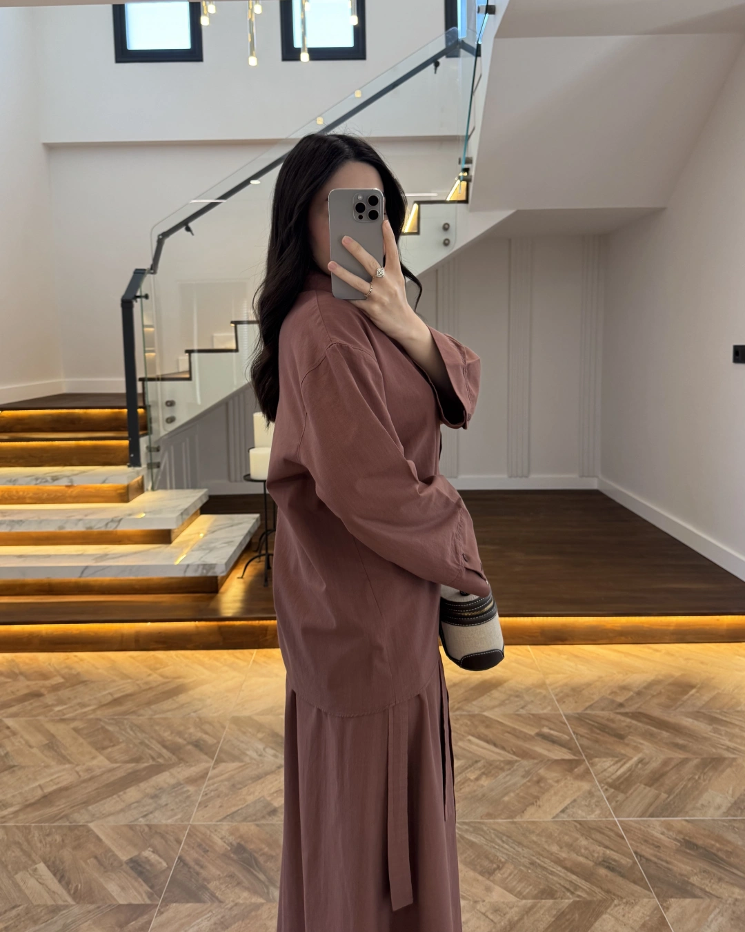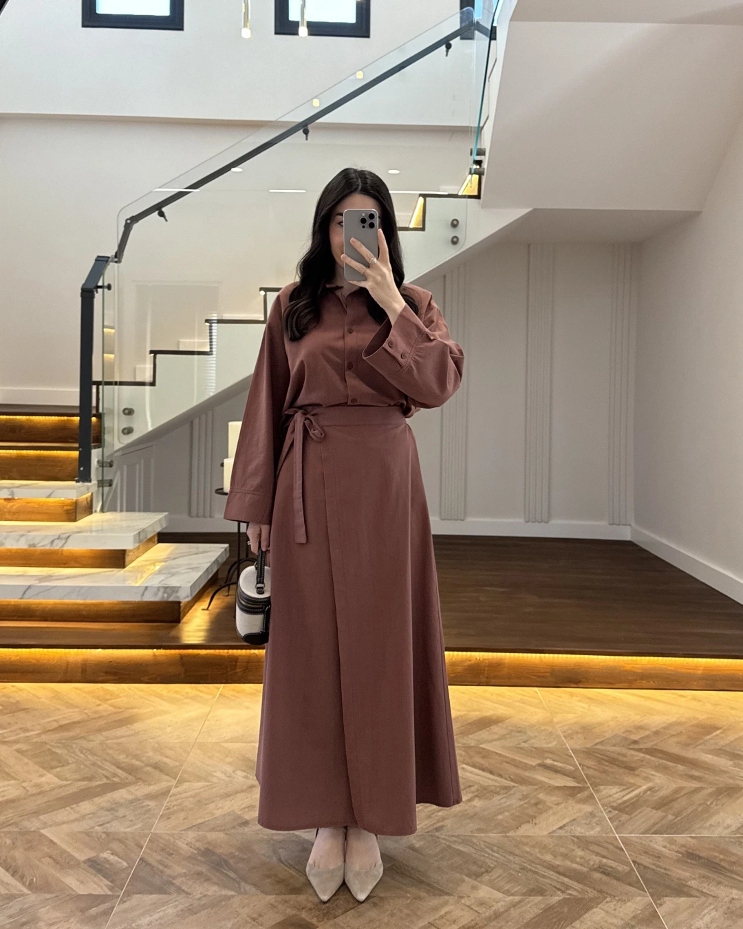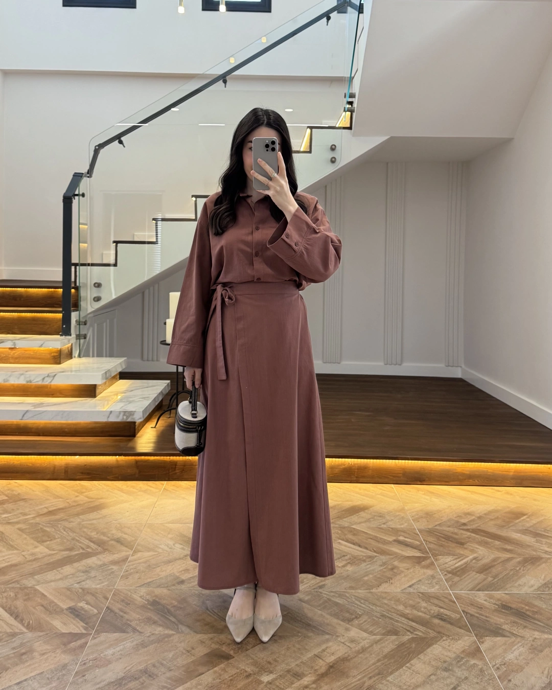 KİREMİT HAM KETEN ETEK GÖMLEK TAKIM-8973