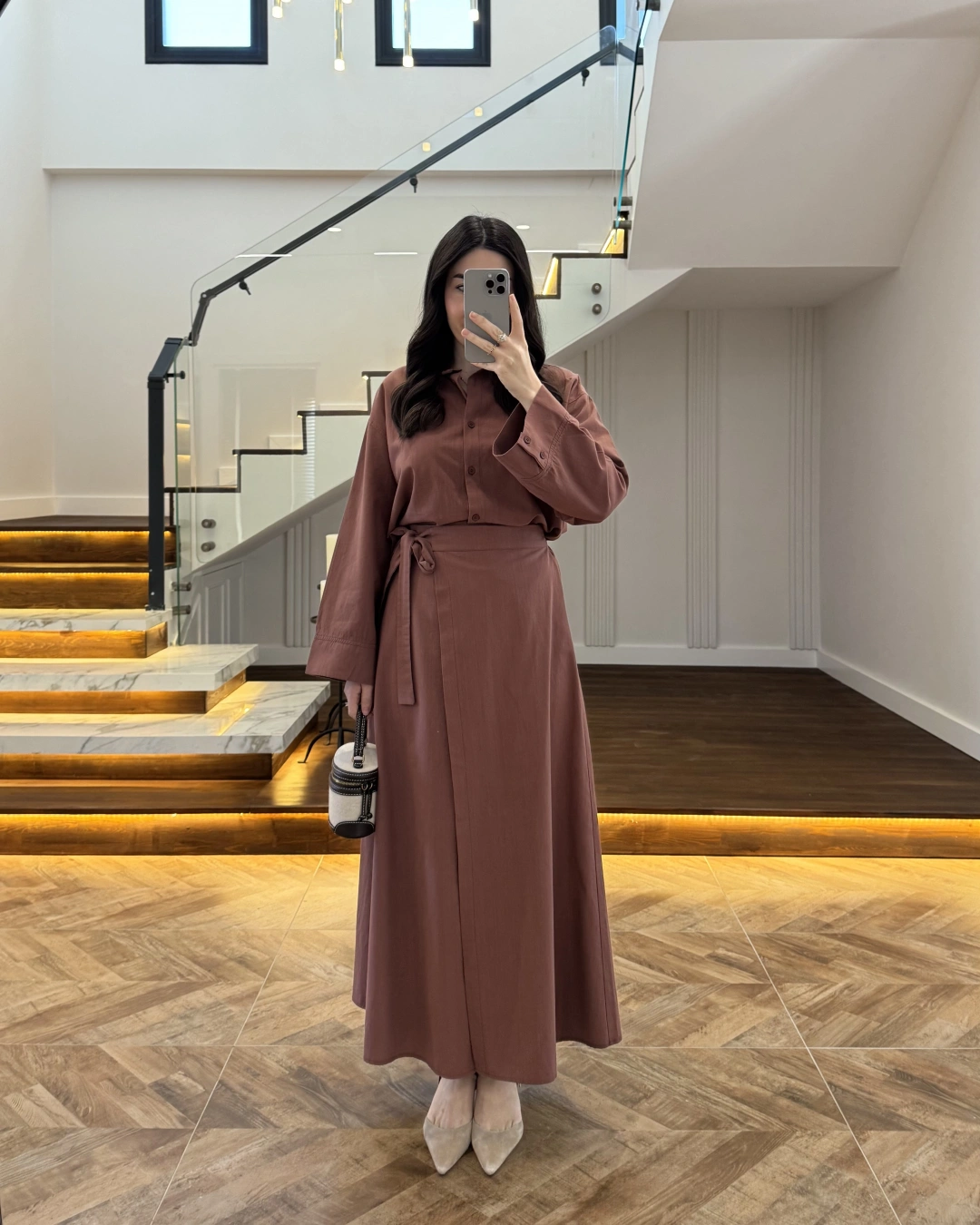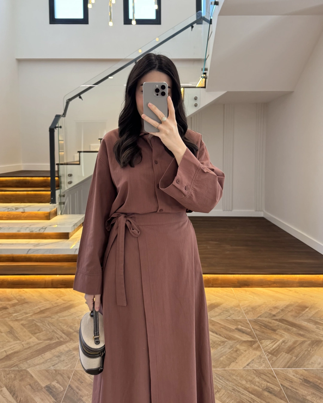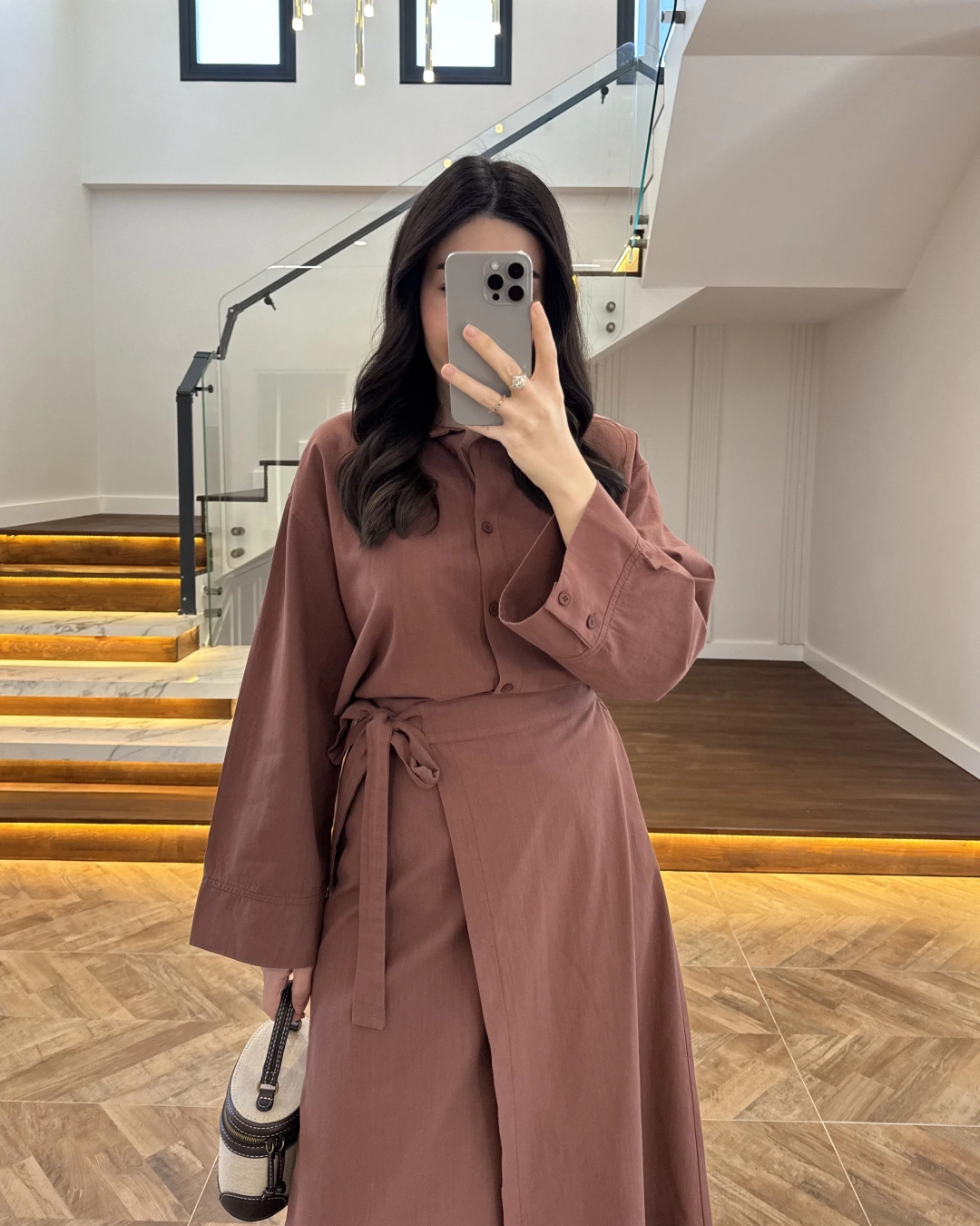 KAHVE PİLE DETAY V YAK GÖMLEK-2222