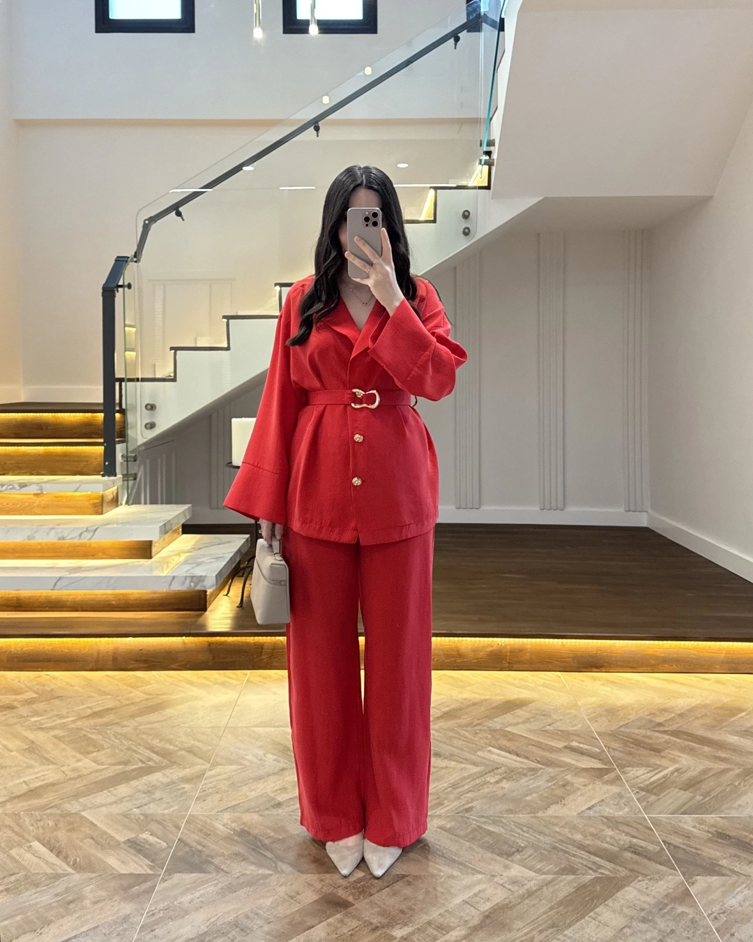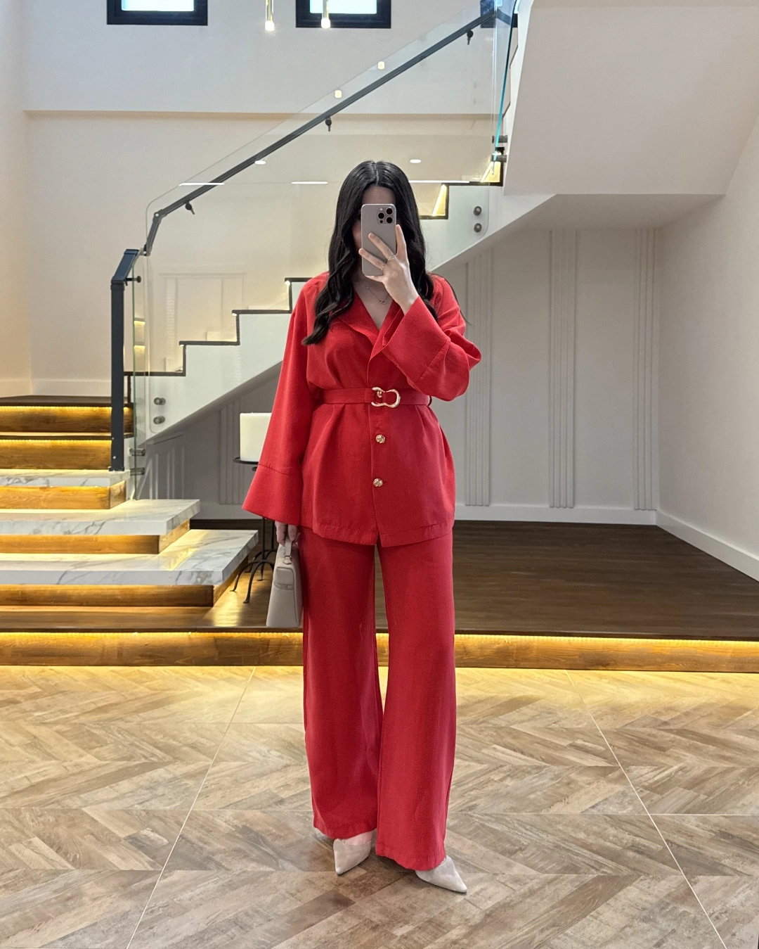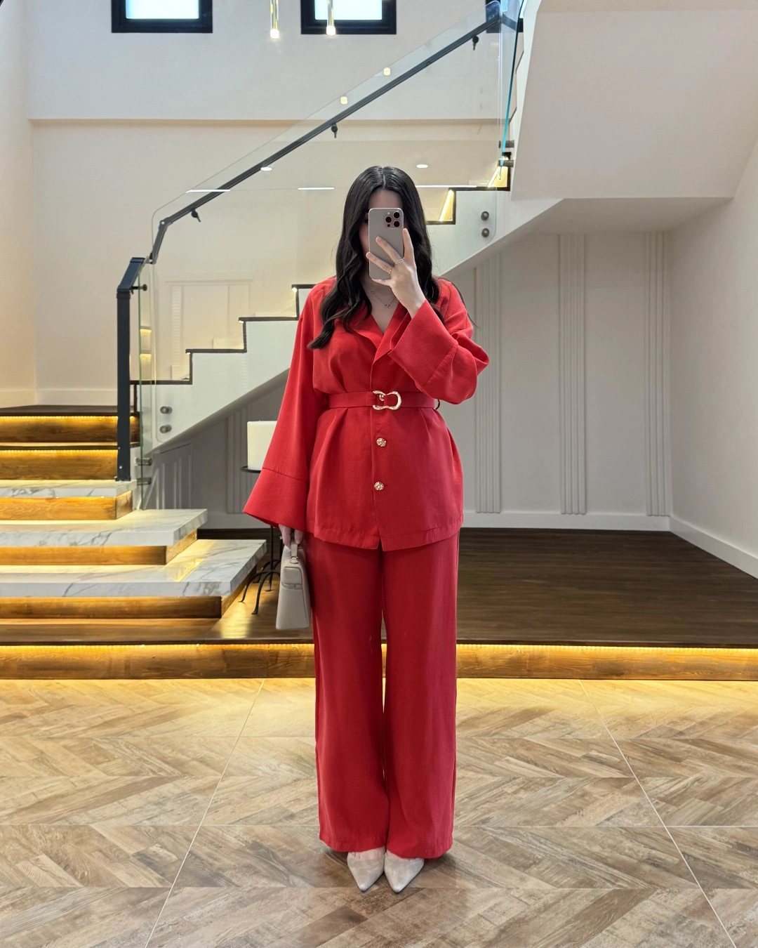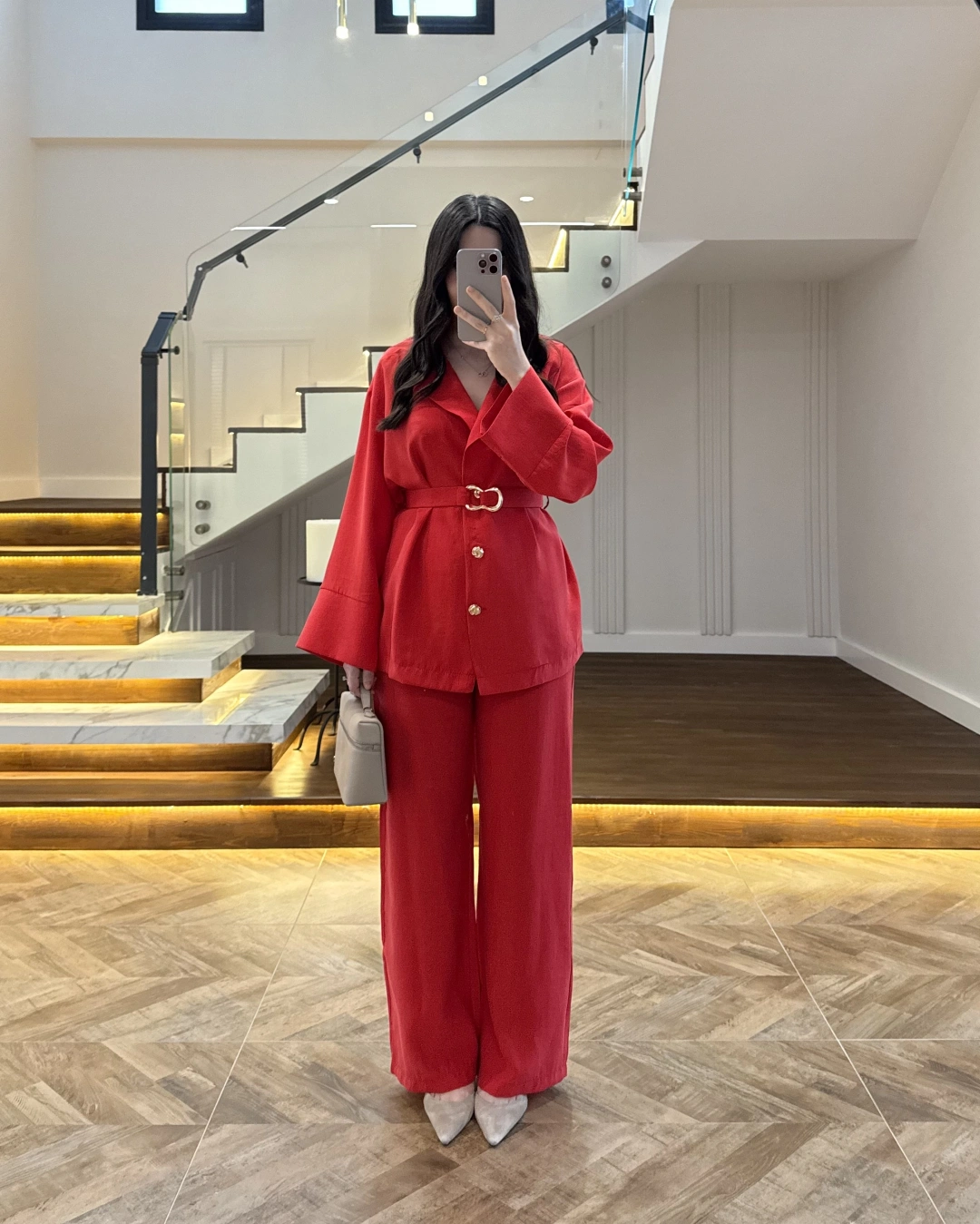 KIRMIZI TOKA DETAYLI TUNİK TAKIM -8927