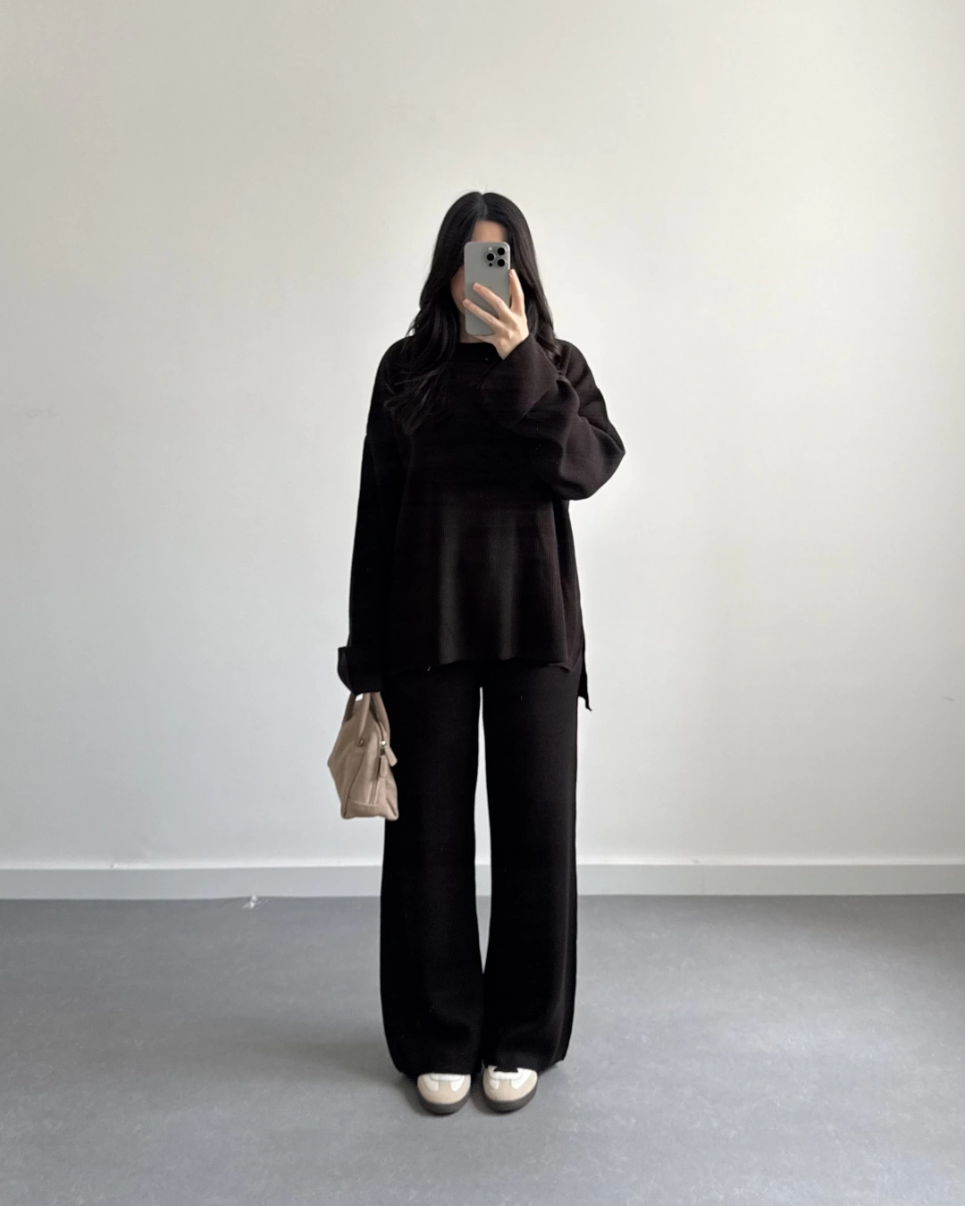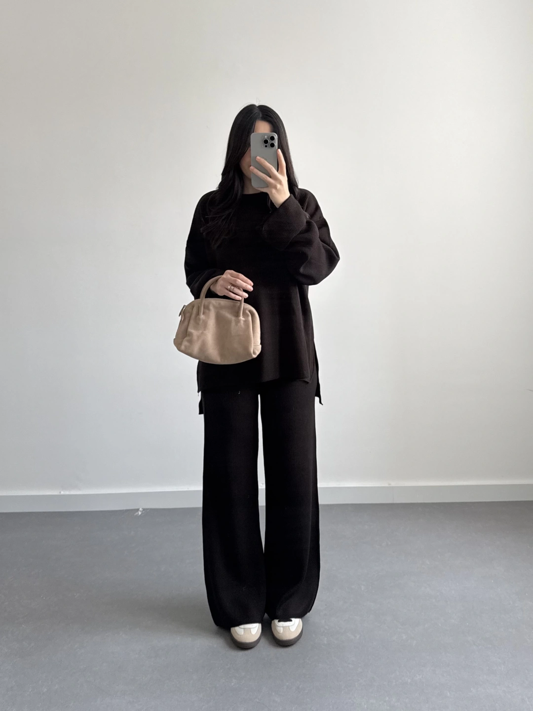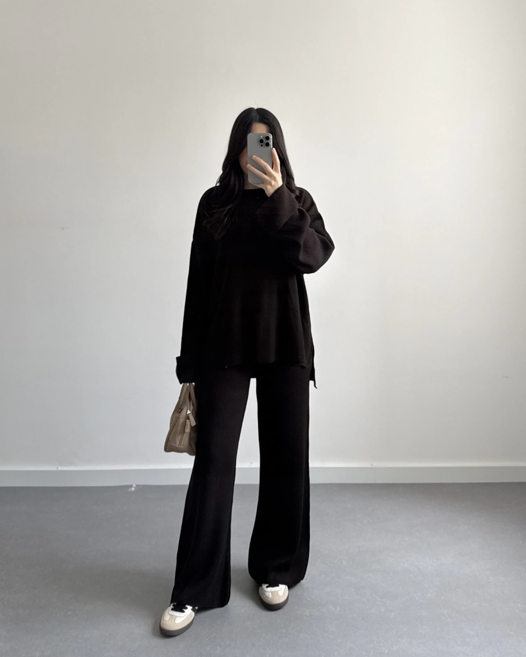 SİYAH KADİFEMSİ DOKULU GÖMLEK TAKIM