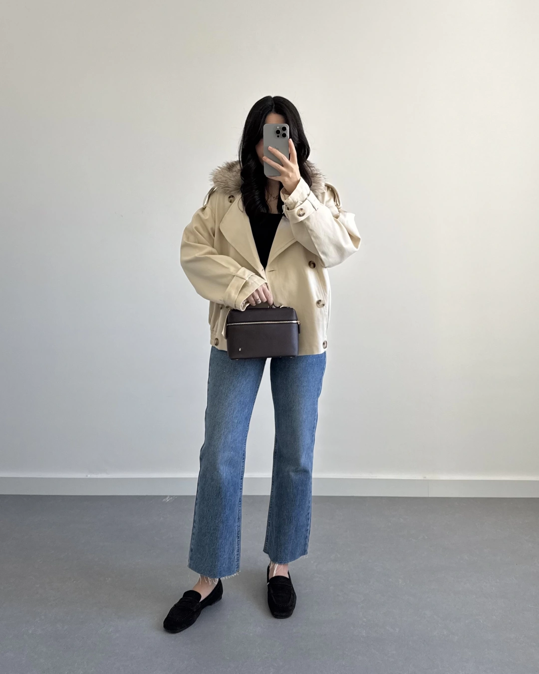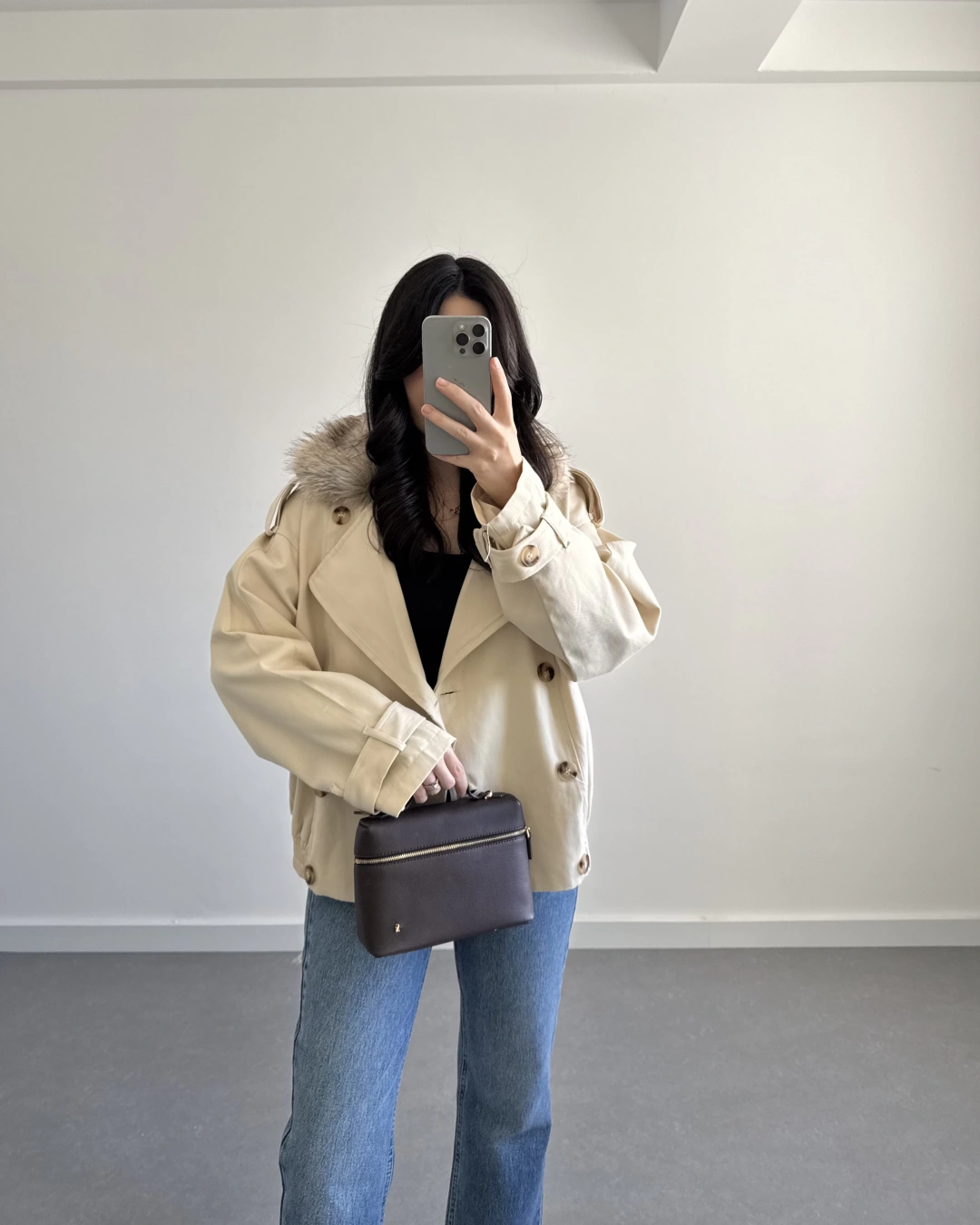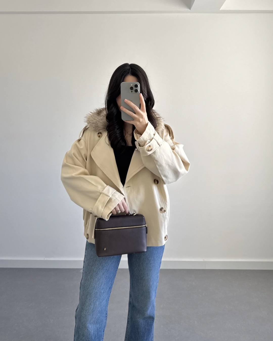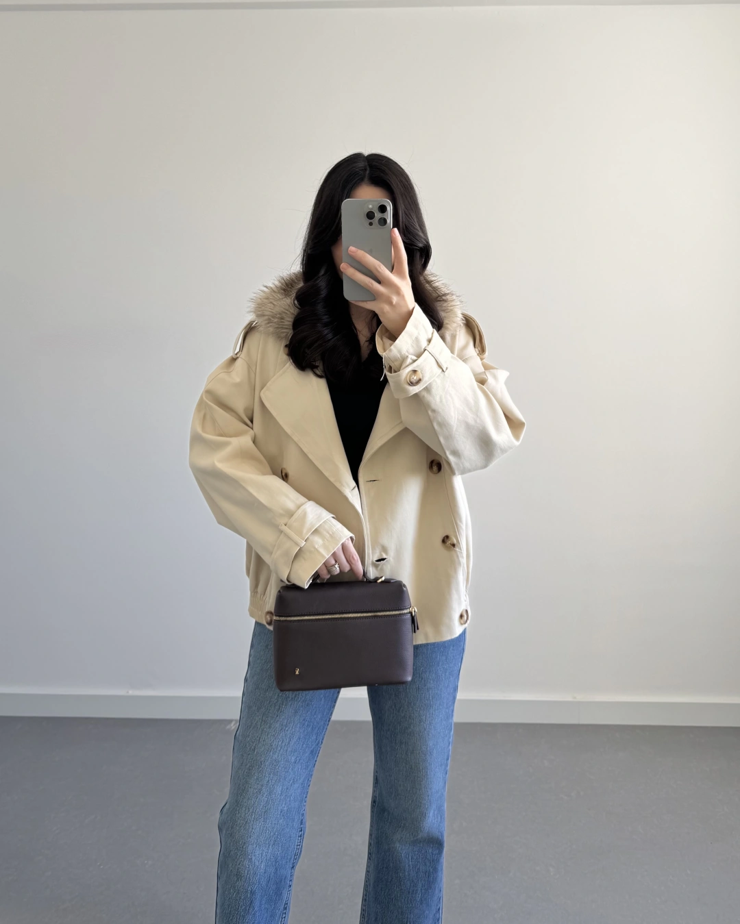 KREM ÇIKARILABİLİR KÜRKLÜ TRENÇKOT
