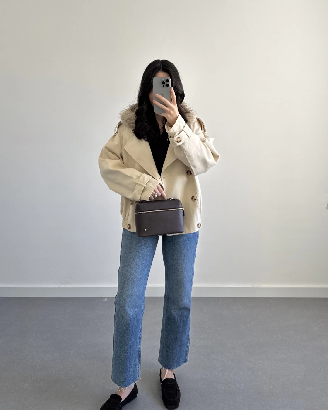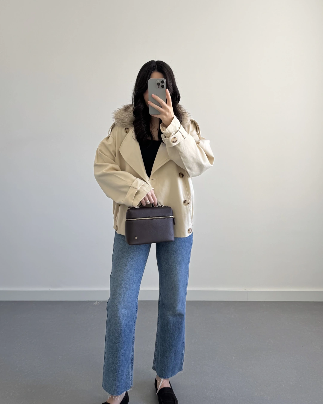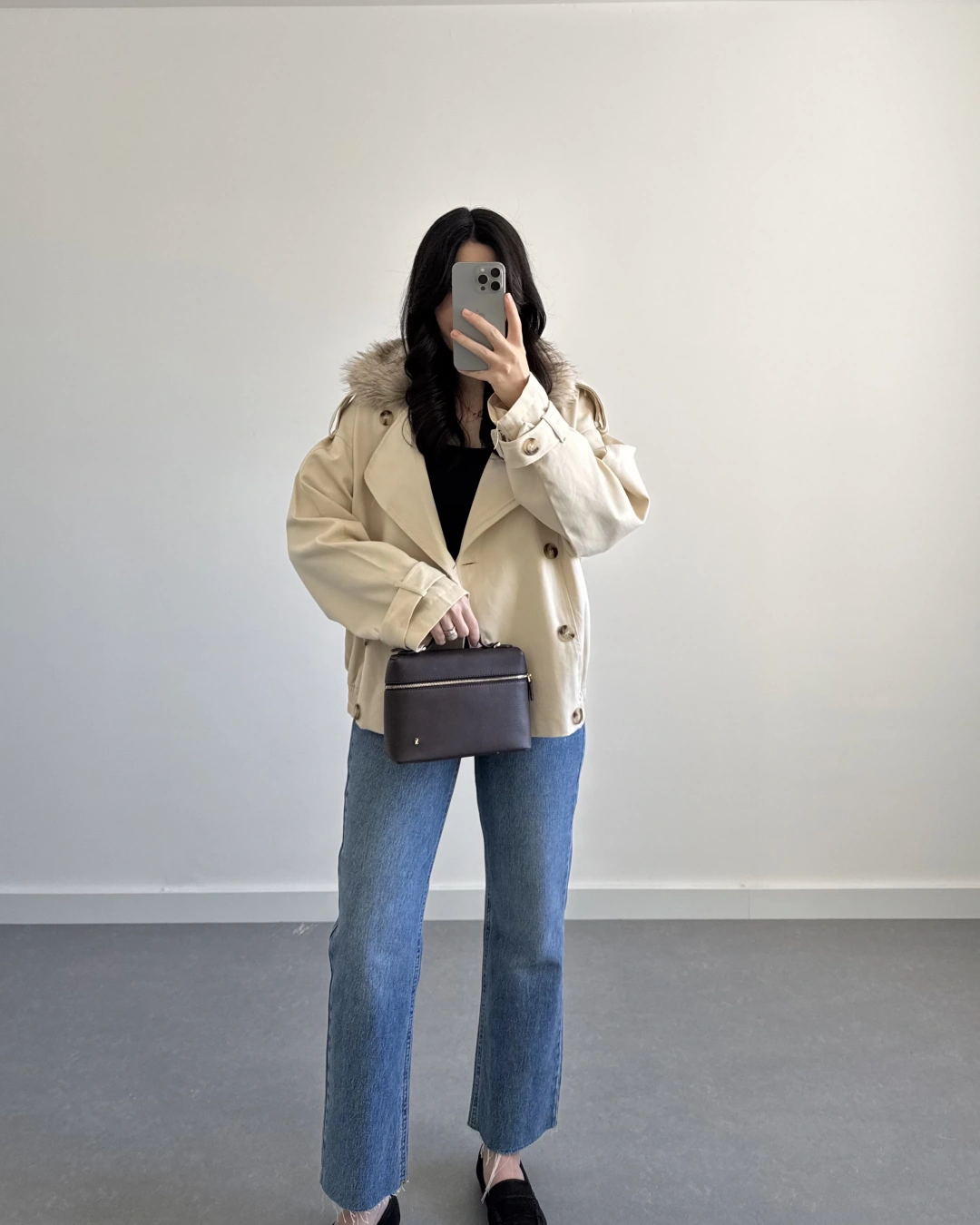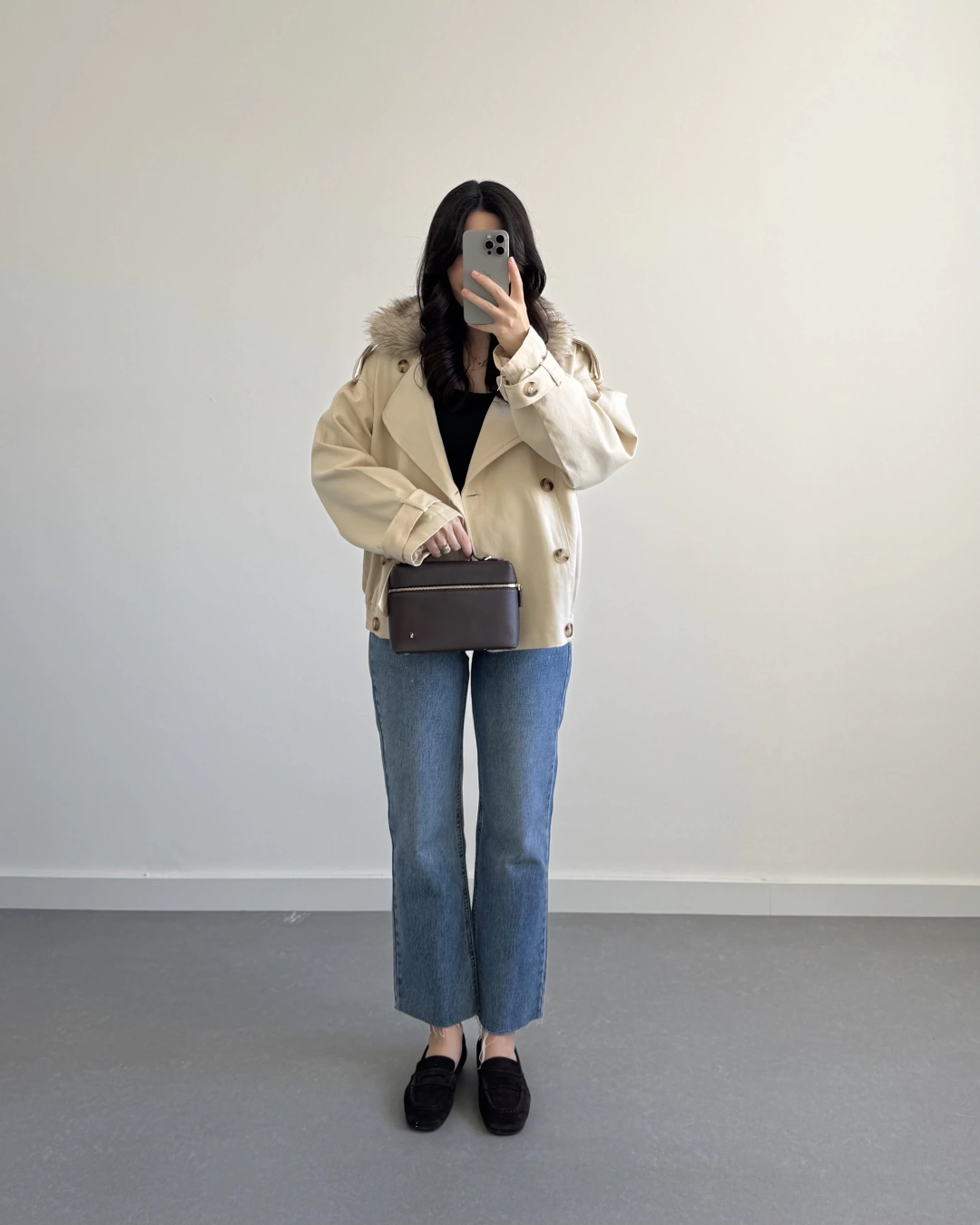 KREM ÇIKARILABİLİR KÜRKLÜ TRENÇKOT