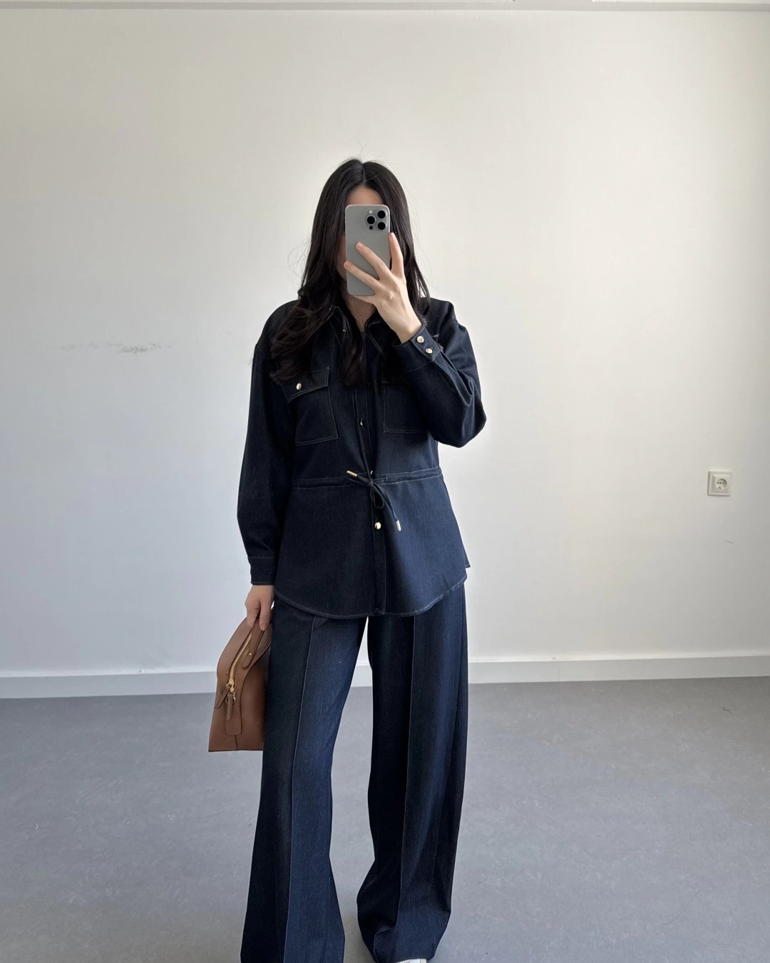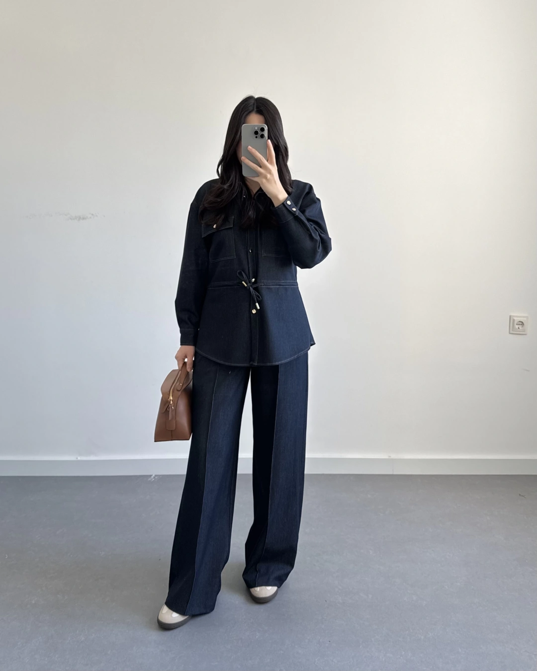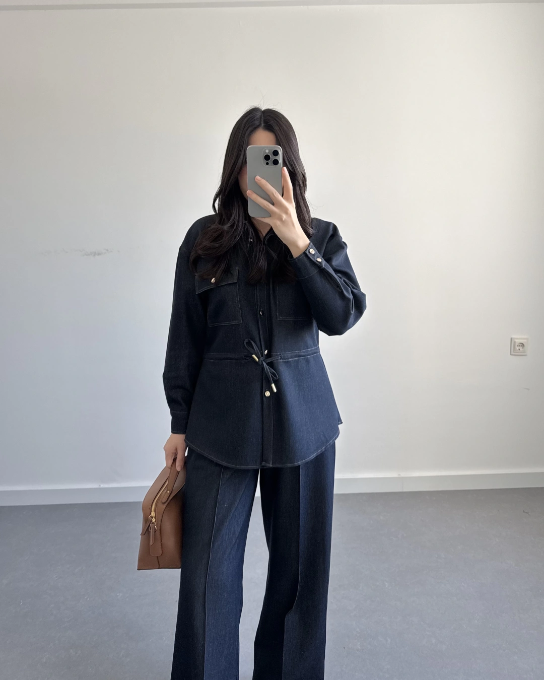 Gömleğin kendi kumaşından bel ipi mevcuttur