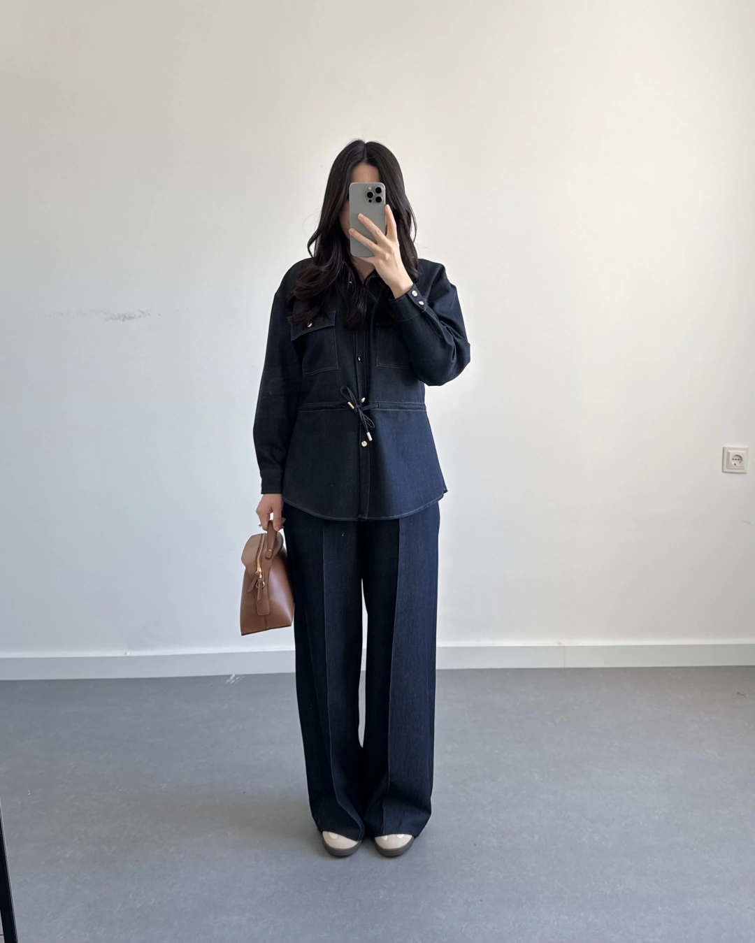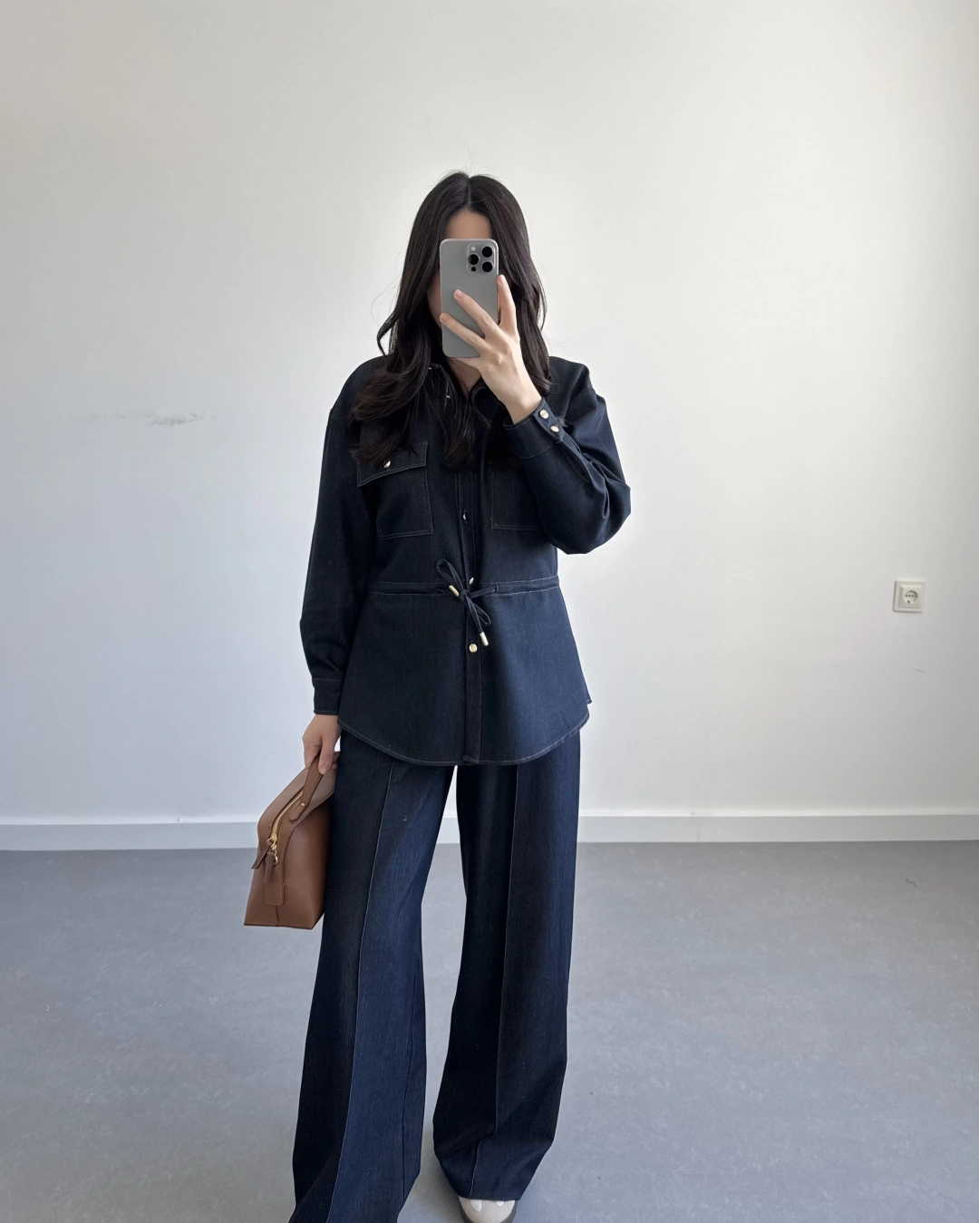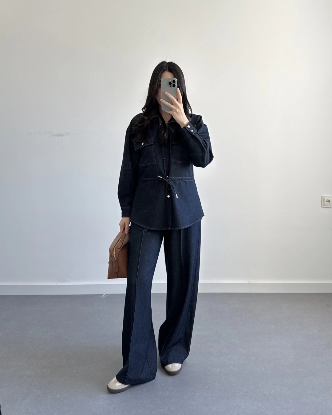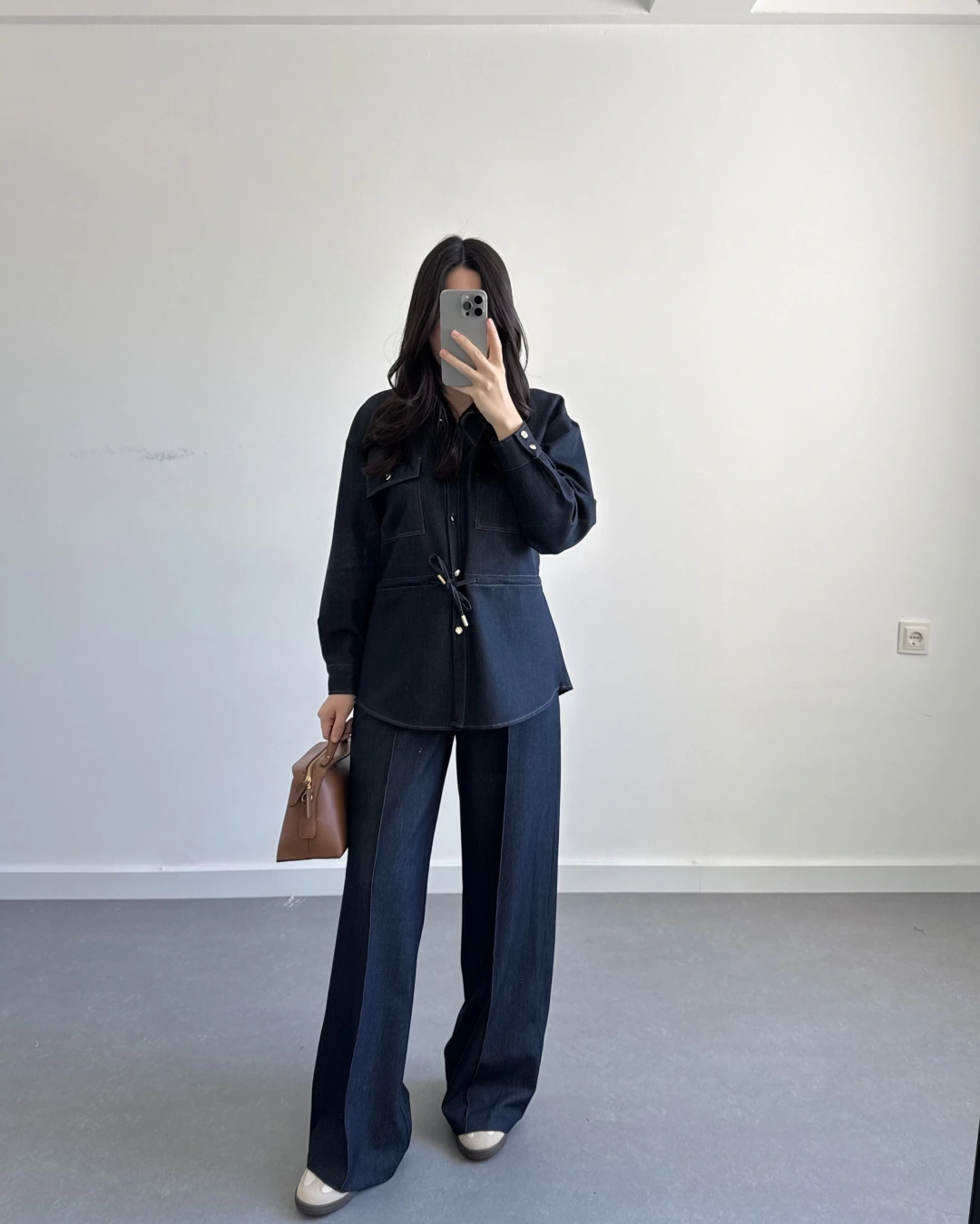 Gömleğin kendi kumaşından bel ipi mevcuttur