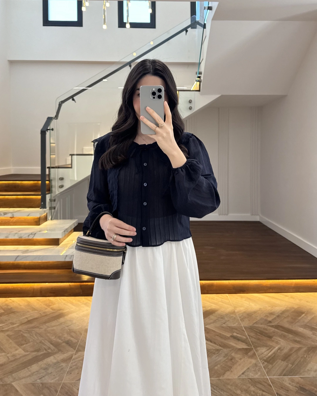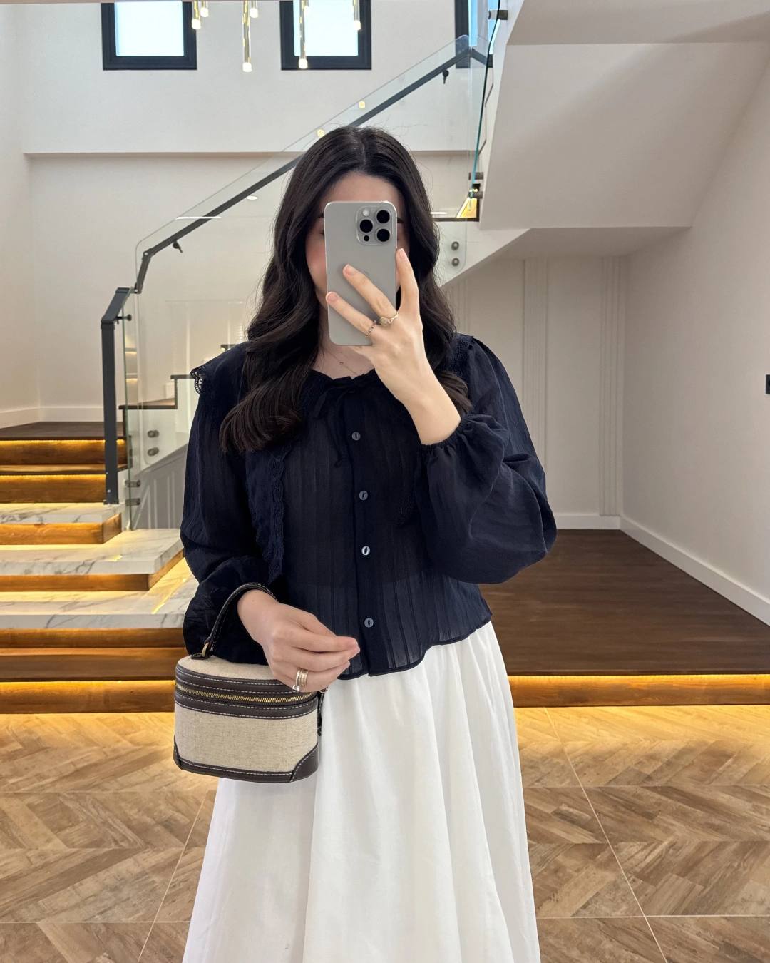 LACİVERT DANTEL YAKA GÖMLEK -2223
