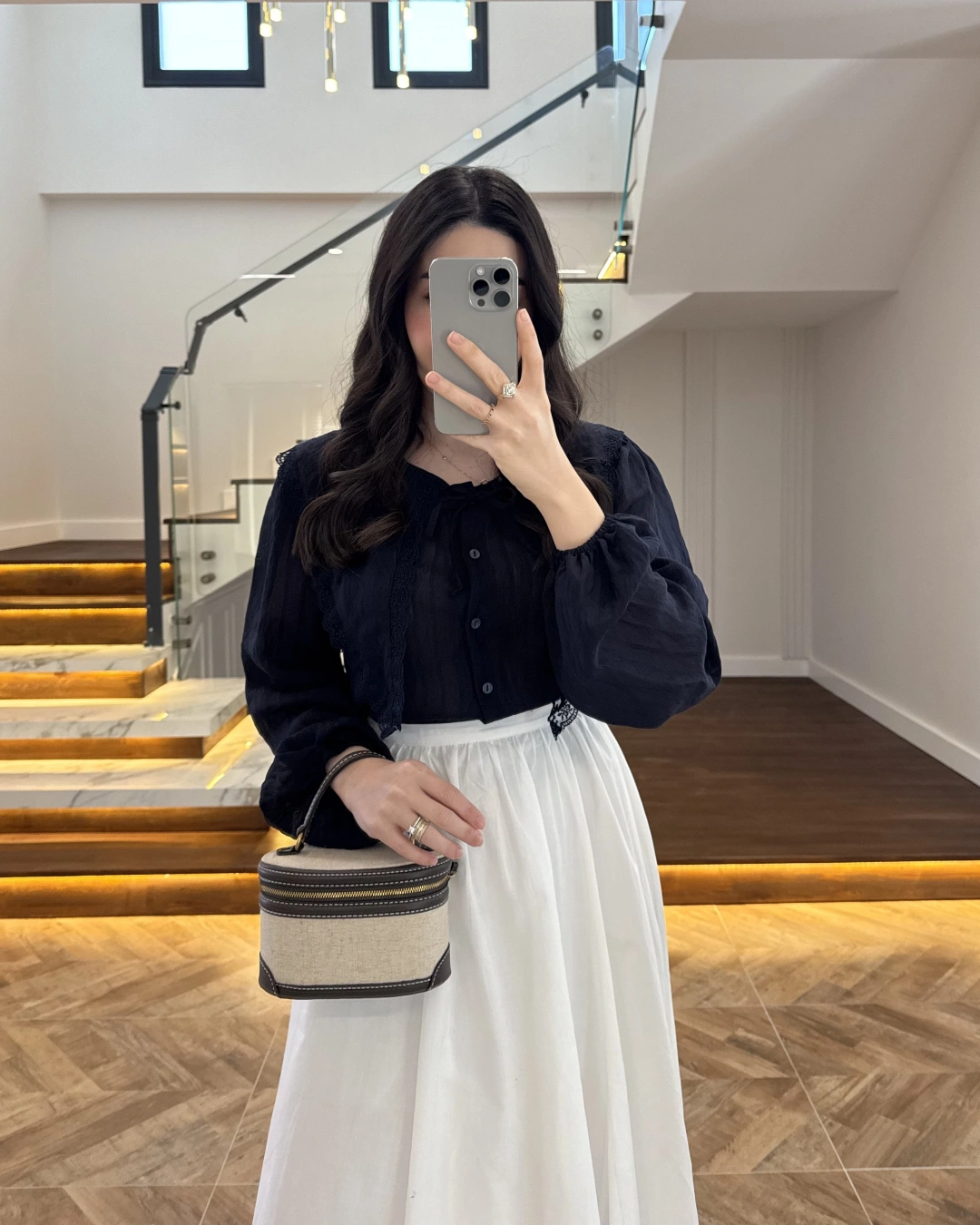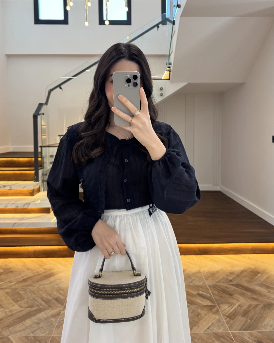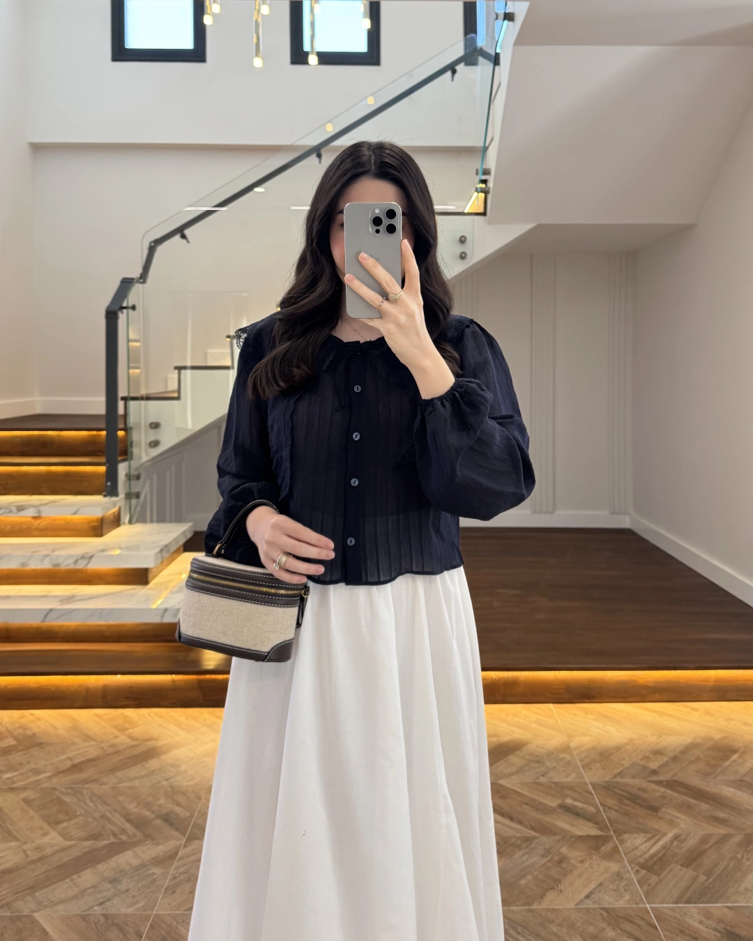 SİYAH KAT KAT PELERİN BLUZ -5044