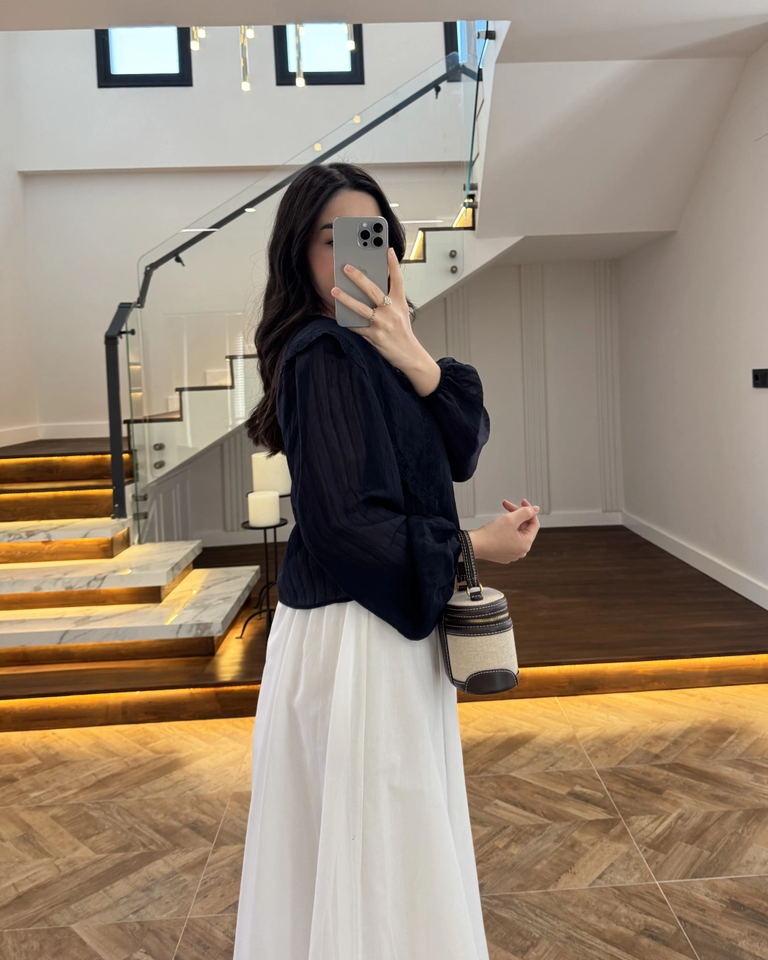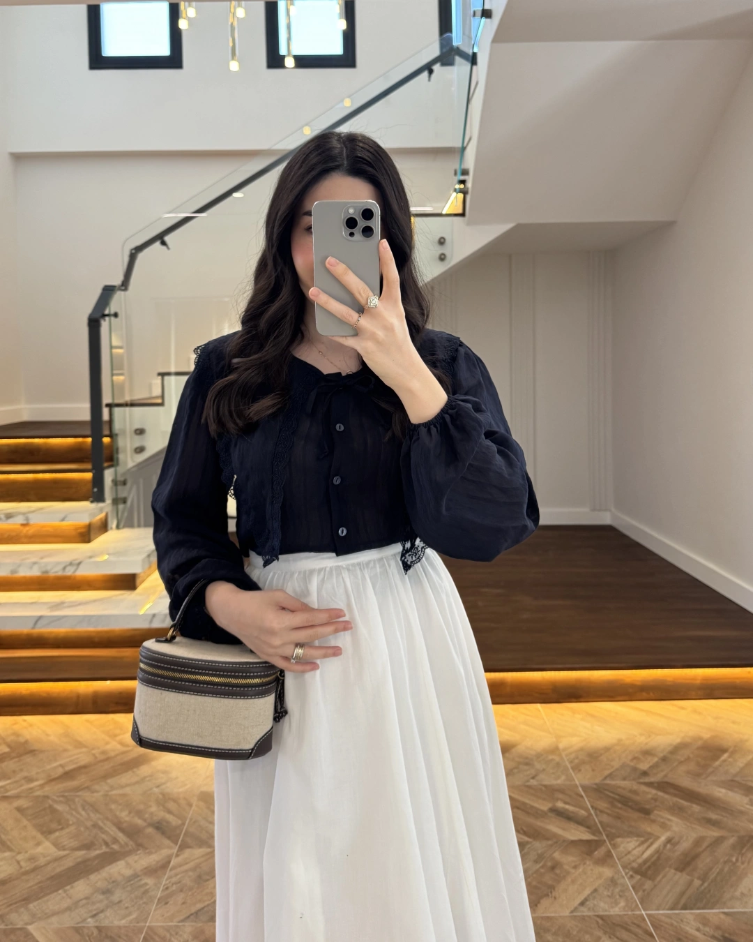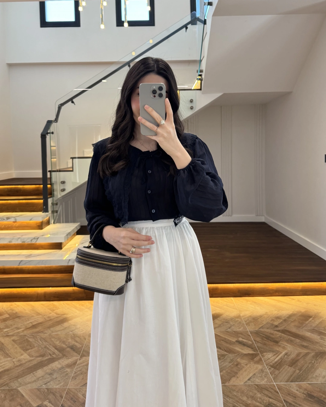 SİYAH KAT KAT PELERİN BLUZ -5044