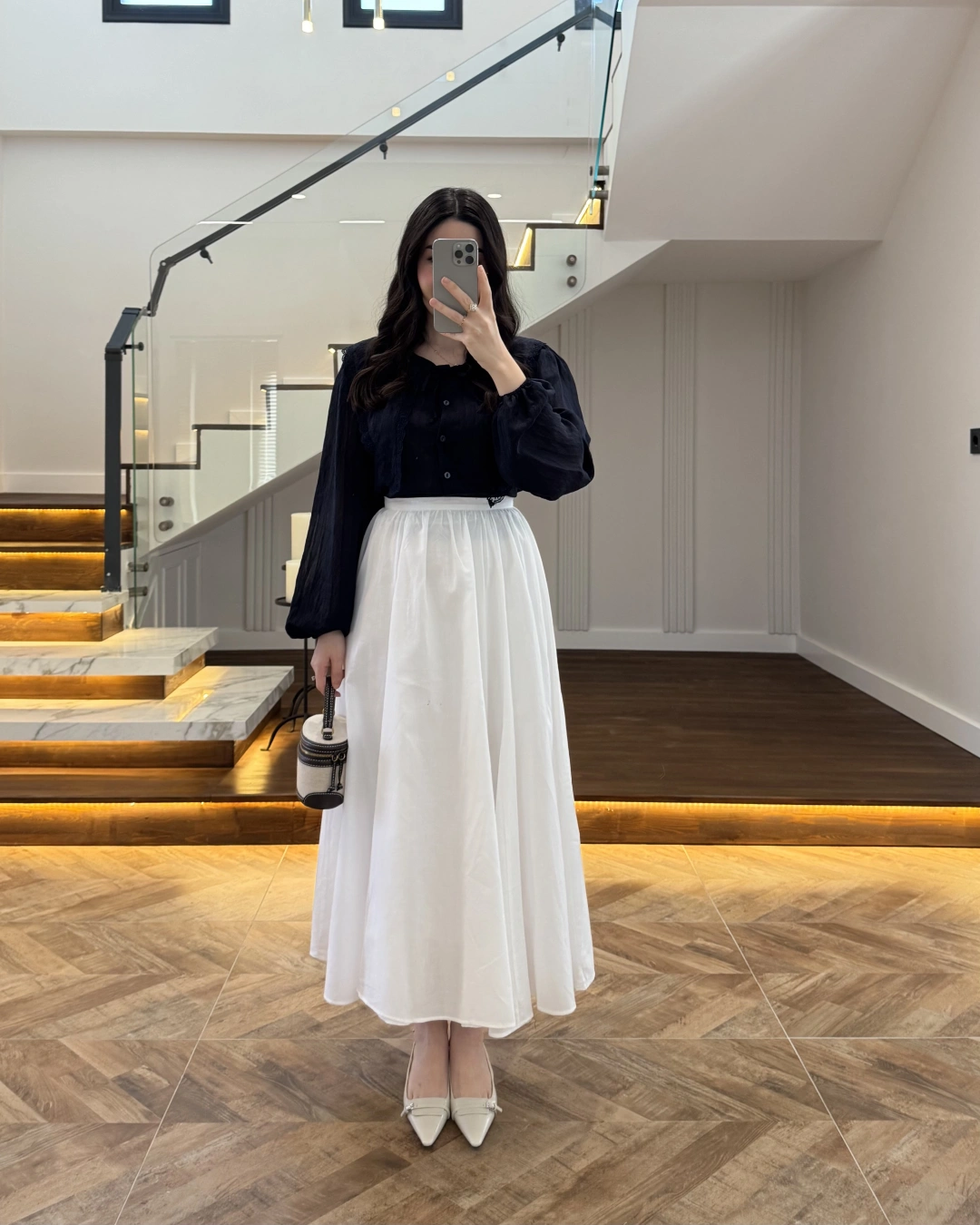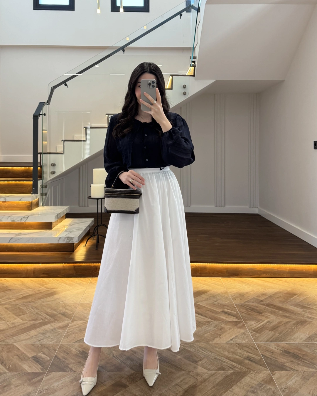 BEYAZ PİLE DETAY V YAK GÖMLEK-2222
