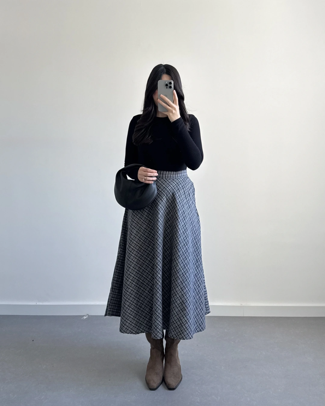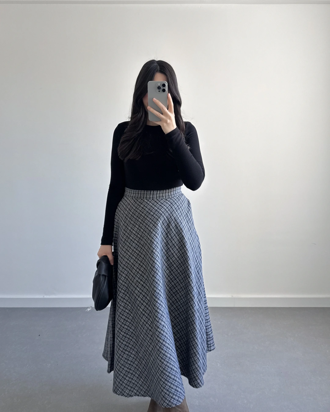 SİYAH ŞİFON EKOSE DESEN KLOŞ ETEK