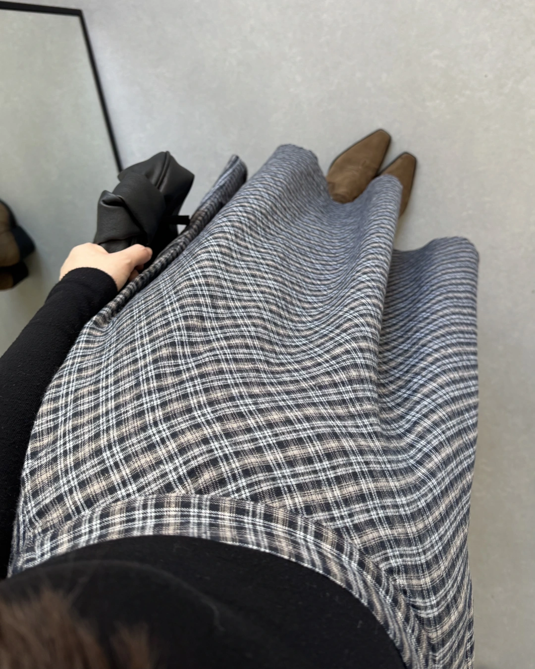 KAHVE ŞİFON EKOSE DESEN KLOŞ ETEK