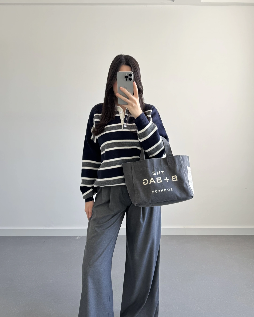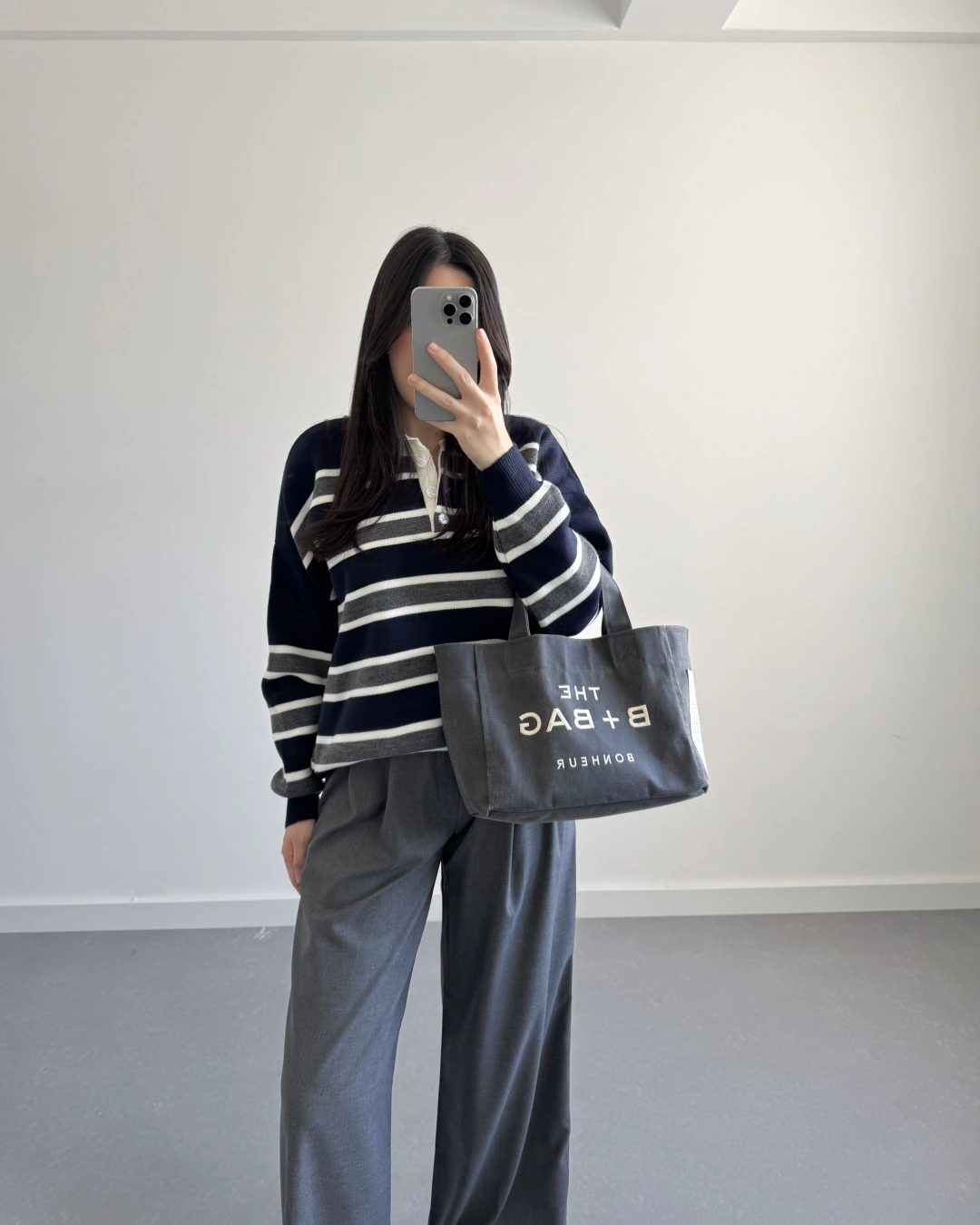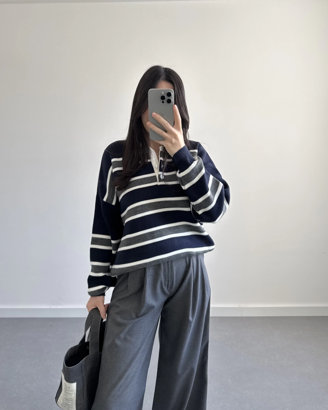 LACİVERT - GRİ ÇİZGİLİ KAZAK
