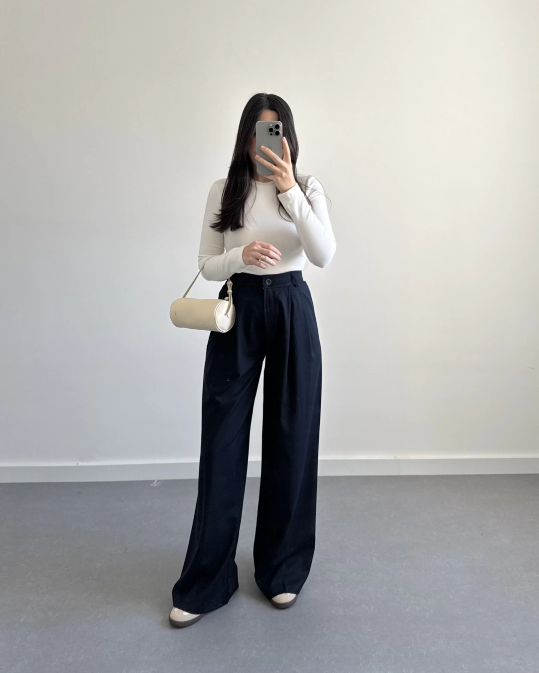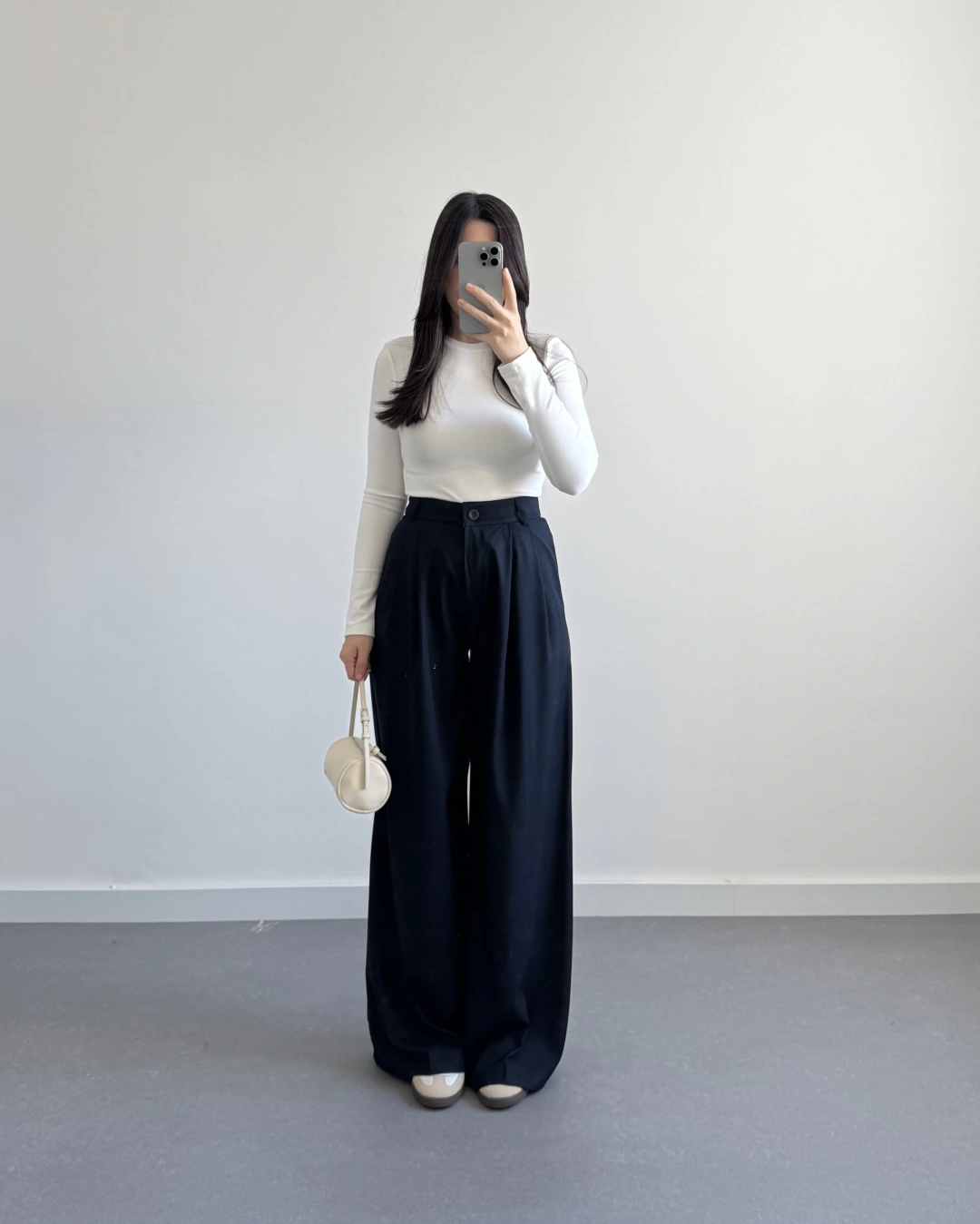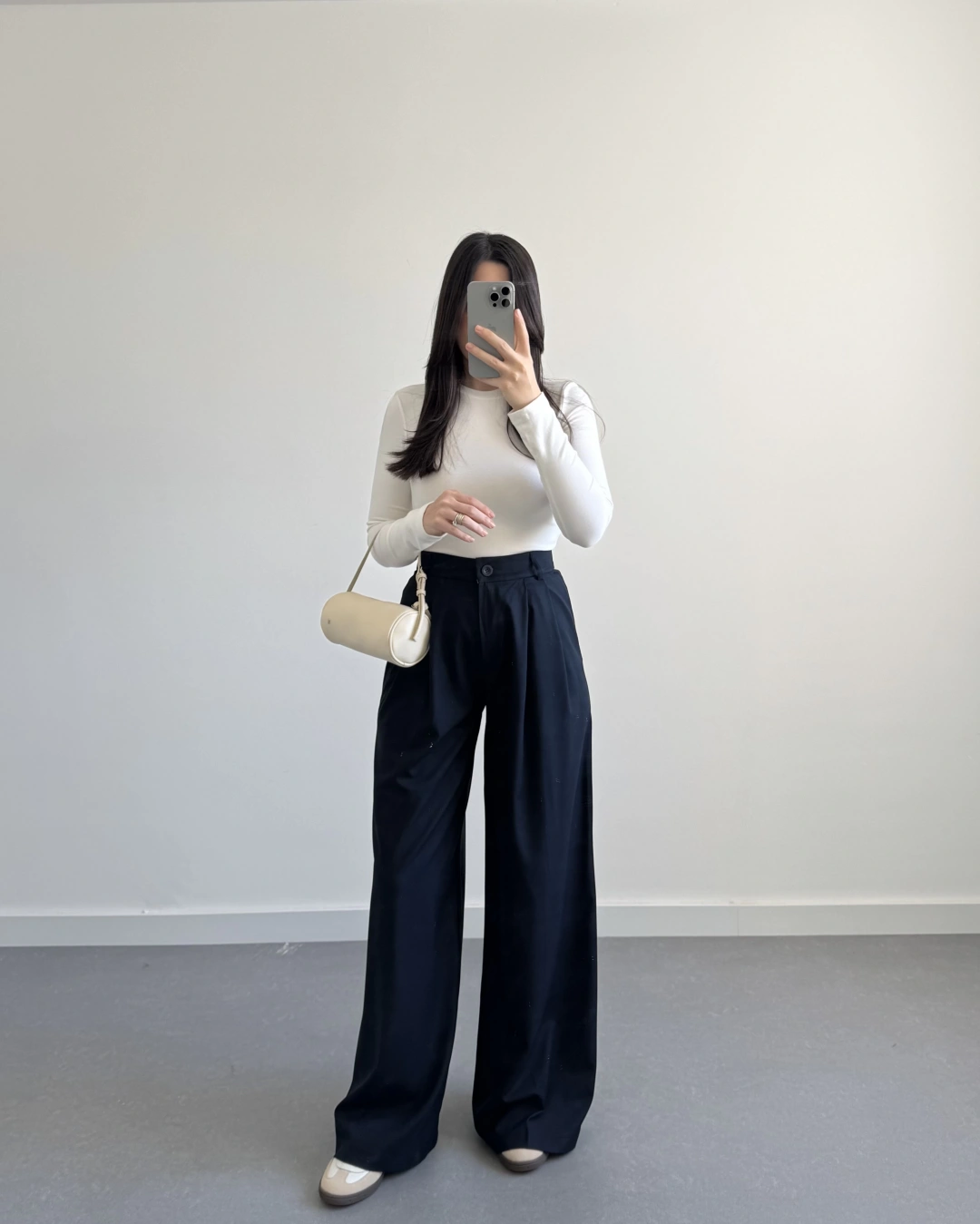SİYAH BELİ KUŞAKLI PİLELİ MODAL TAKIM