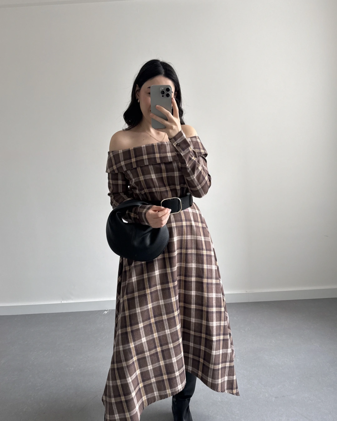 MADONNA YAKA EKOSE KEMERLİ ELBİSE