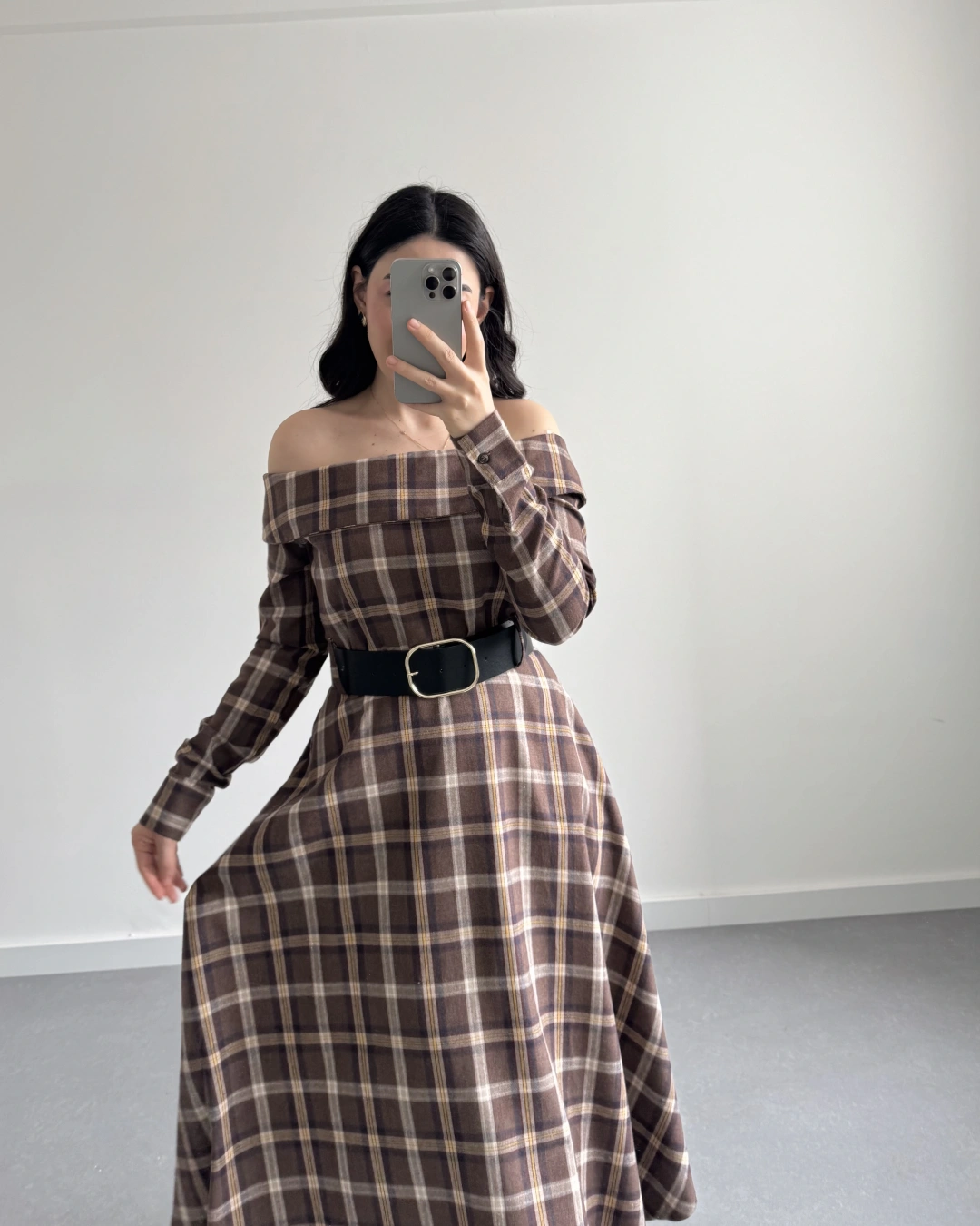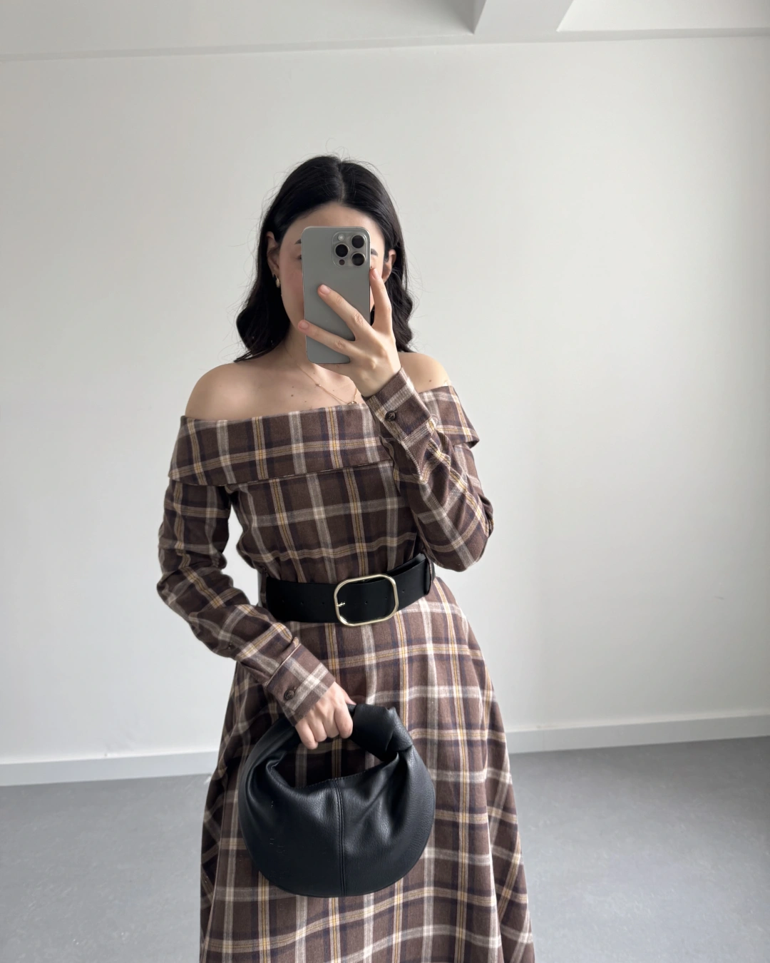 KAHVE ÖNÜ DÜĞMELİ KUŞAKLI ELBİSE