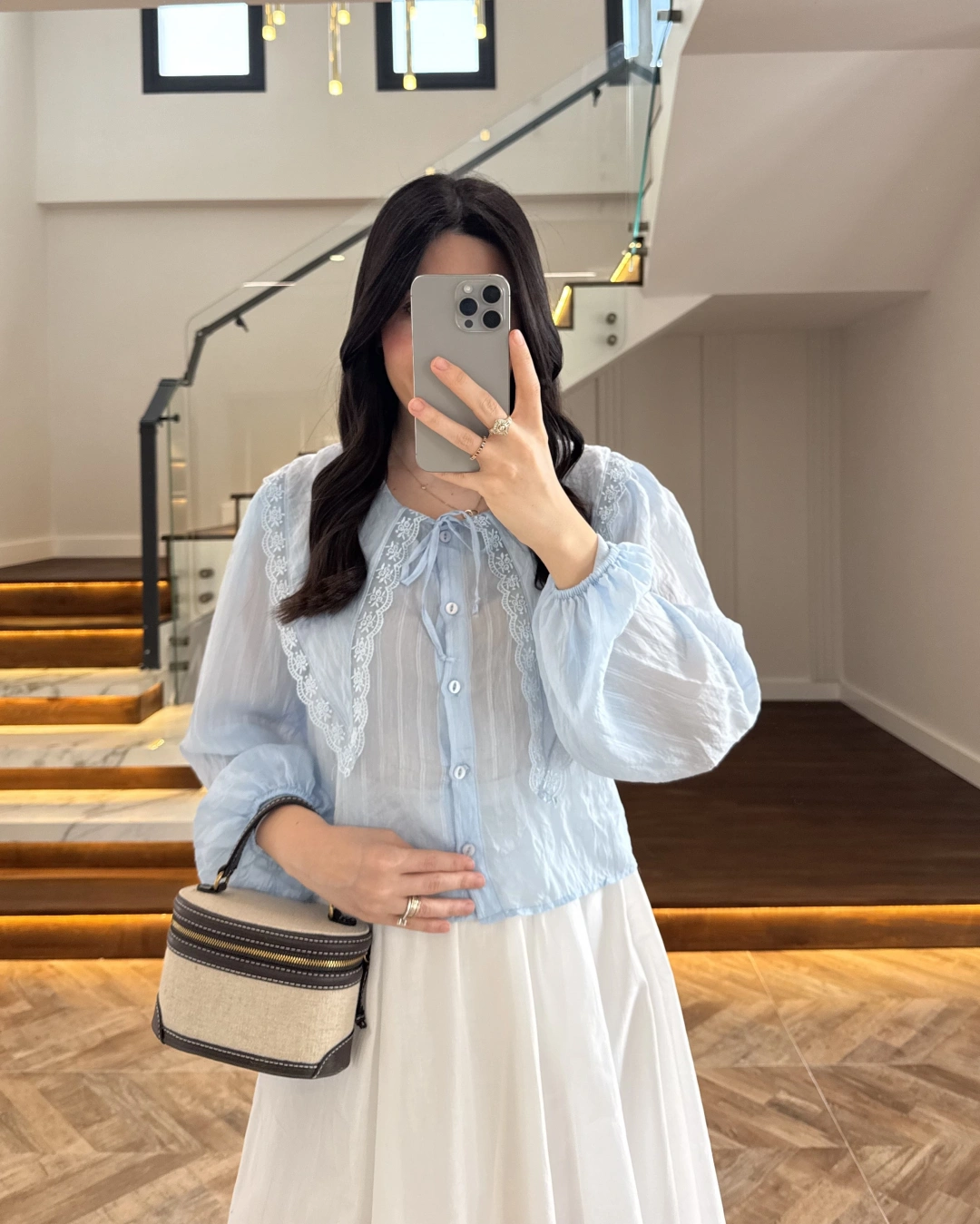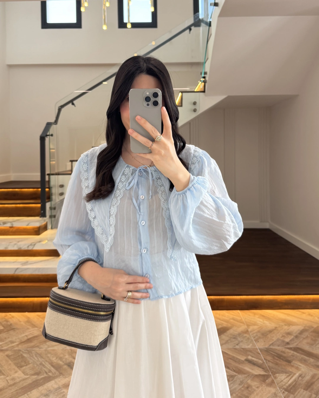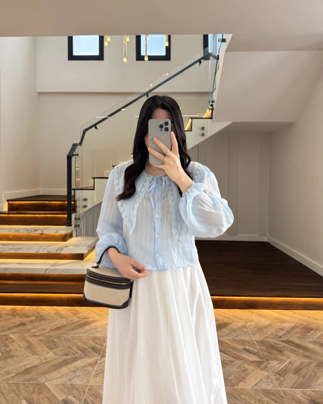 MAVİ DANTEL YAKA GÖMLEK -2223