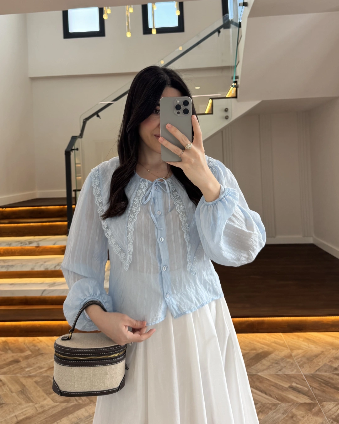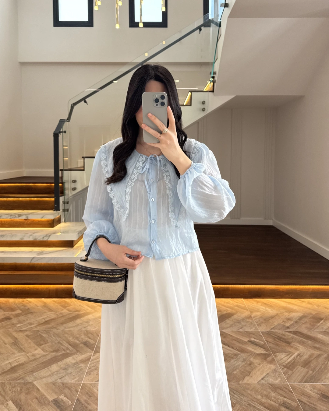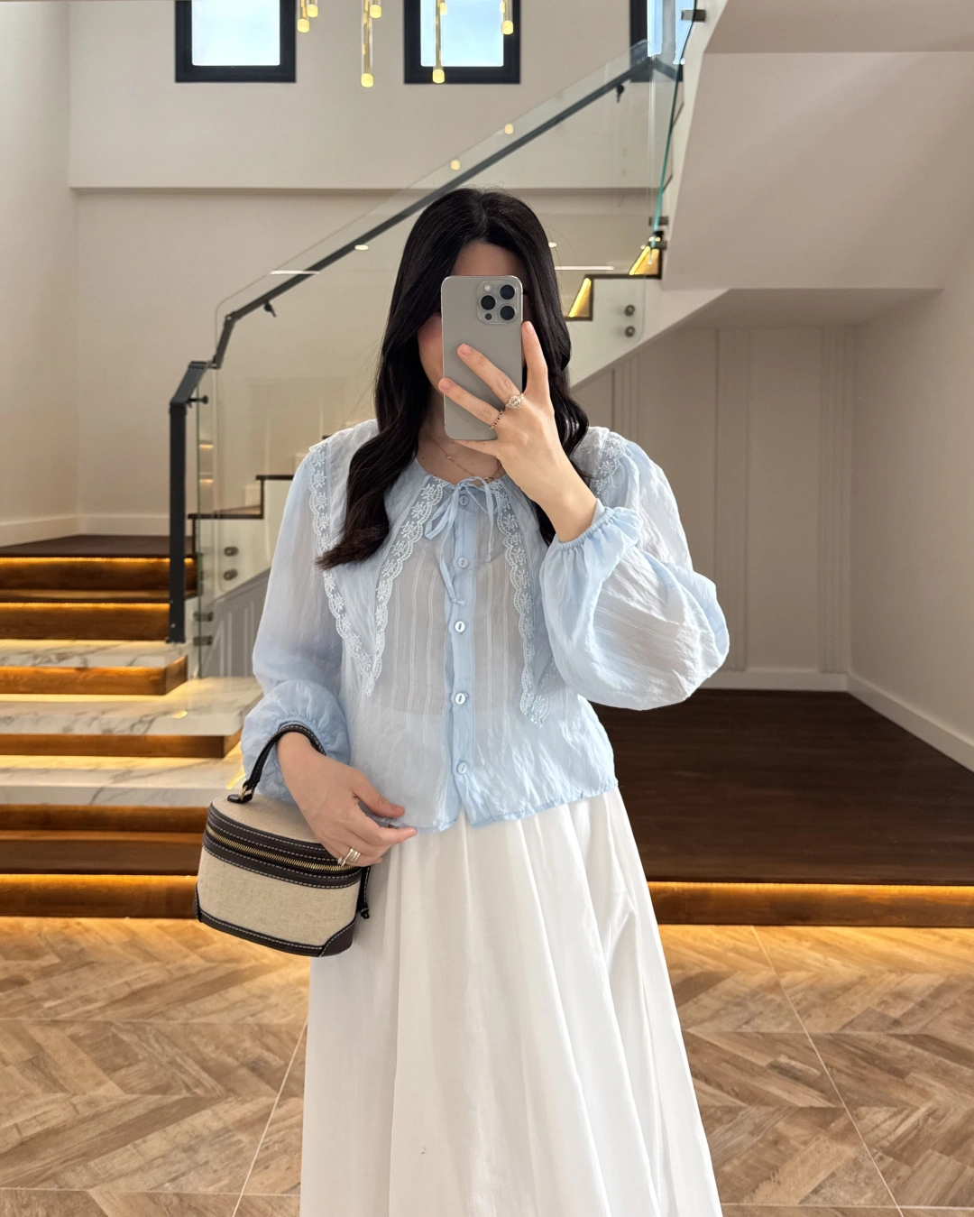MAVİ DANTEL YAKA GÖMLEK -2223