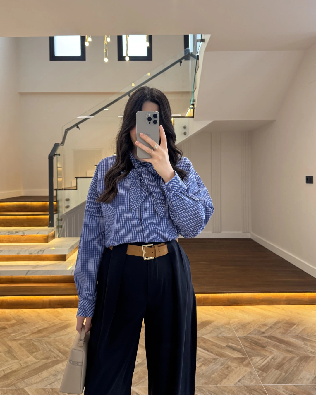 (ÖN SİPARİŞ) LACİVERT KÖPRÜ DETAYLI PALAZZO PANTOLON-3855